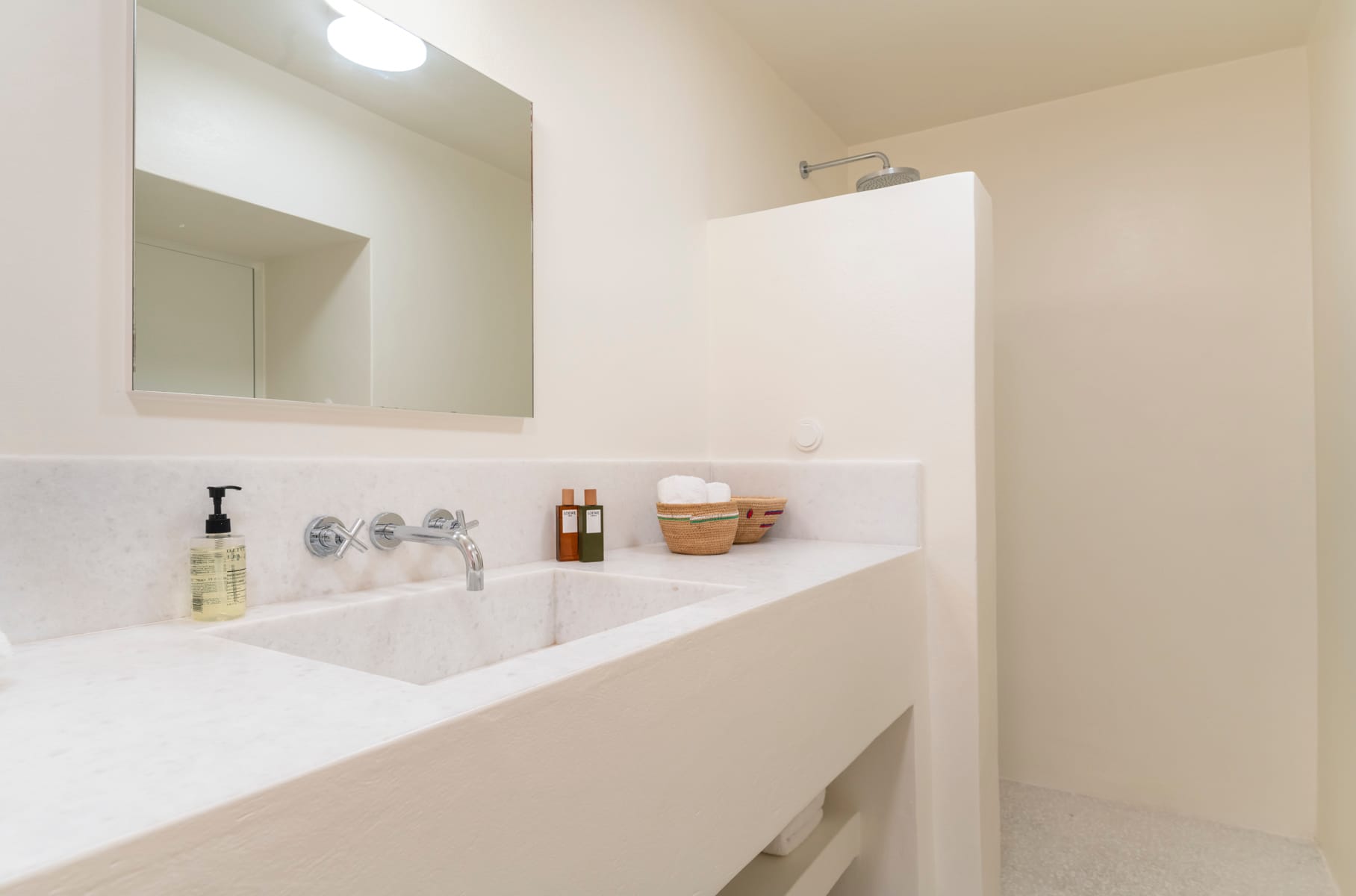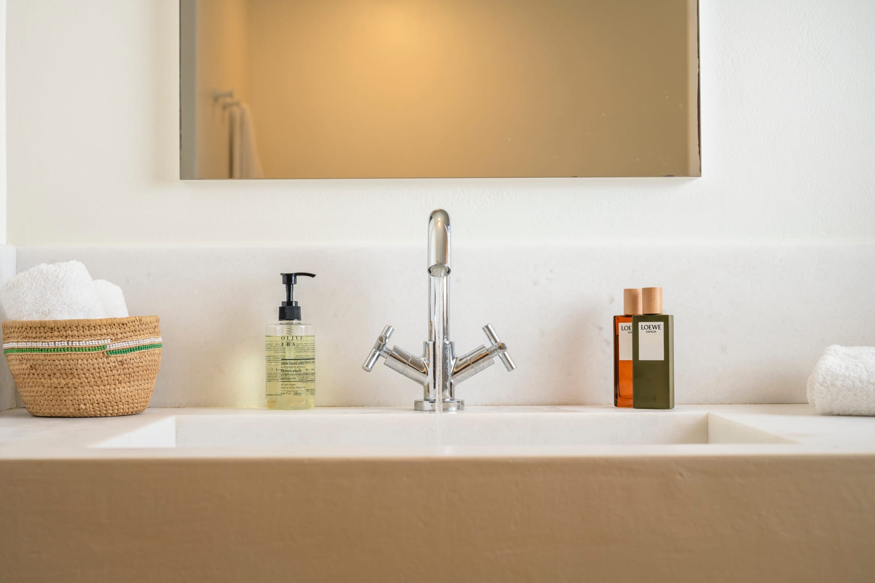 - 2 Guest bedrooms with double beds, en-suite bathrooms, A/C, safe box, Sonos speakers, "Apivita" bath amenities, sea view.