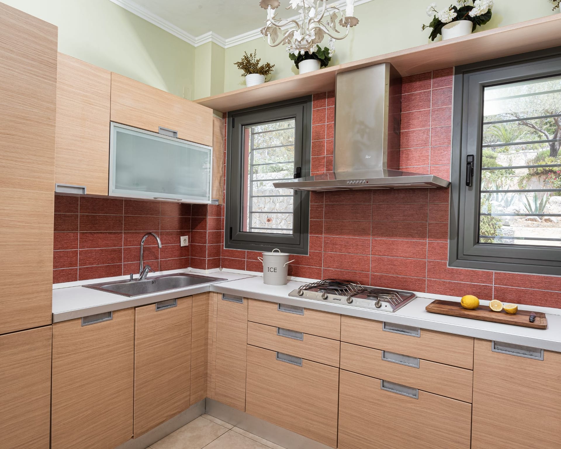 Spend your days exactly as you wish with your family or loved ones in this 390 sqm holiday home. Early birds will find the nearby beach a great spot for a morning swim, while the young ones will have plenty of space to use as their playground – as they play, lie back and enjoy the summertime. Come evening, enjoy an aperitive at one of the two indoor living areas before heading to unwind. With its eight lovely double bedrooms, (five of the bedrooms have their own ensuite bathrooms), Villa Elianna is well suited to families or groups of friends seeking a peaceful sea view retreat.