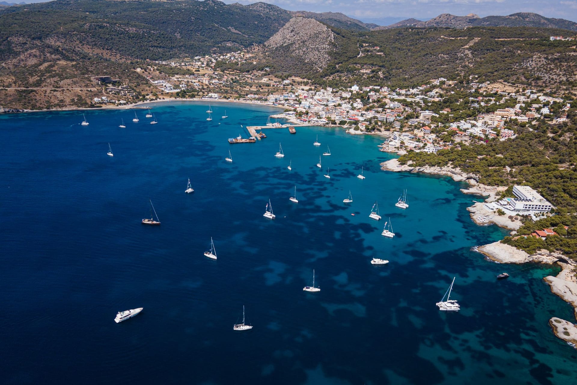 Aegina is only an hour's ferry (or 45' hydrofoil) ride from the port of Piraeus (the main port of Athens). Bursting with delicious local produce, the island is a dreamland for foodies in search of authentic farm-to-table dining. The island is also the home of an ancient wonder standing gloriously through centuries: the Temple of Aphaia (c. 500 BC) - a mere 8min drive from the villa. Lastly, a stone's throw from Aegina lies a small heavenly uninhabited islet, Moni, which belongs to a monastery and is home to a divine secluded beach with glistening turquoise waters.