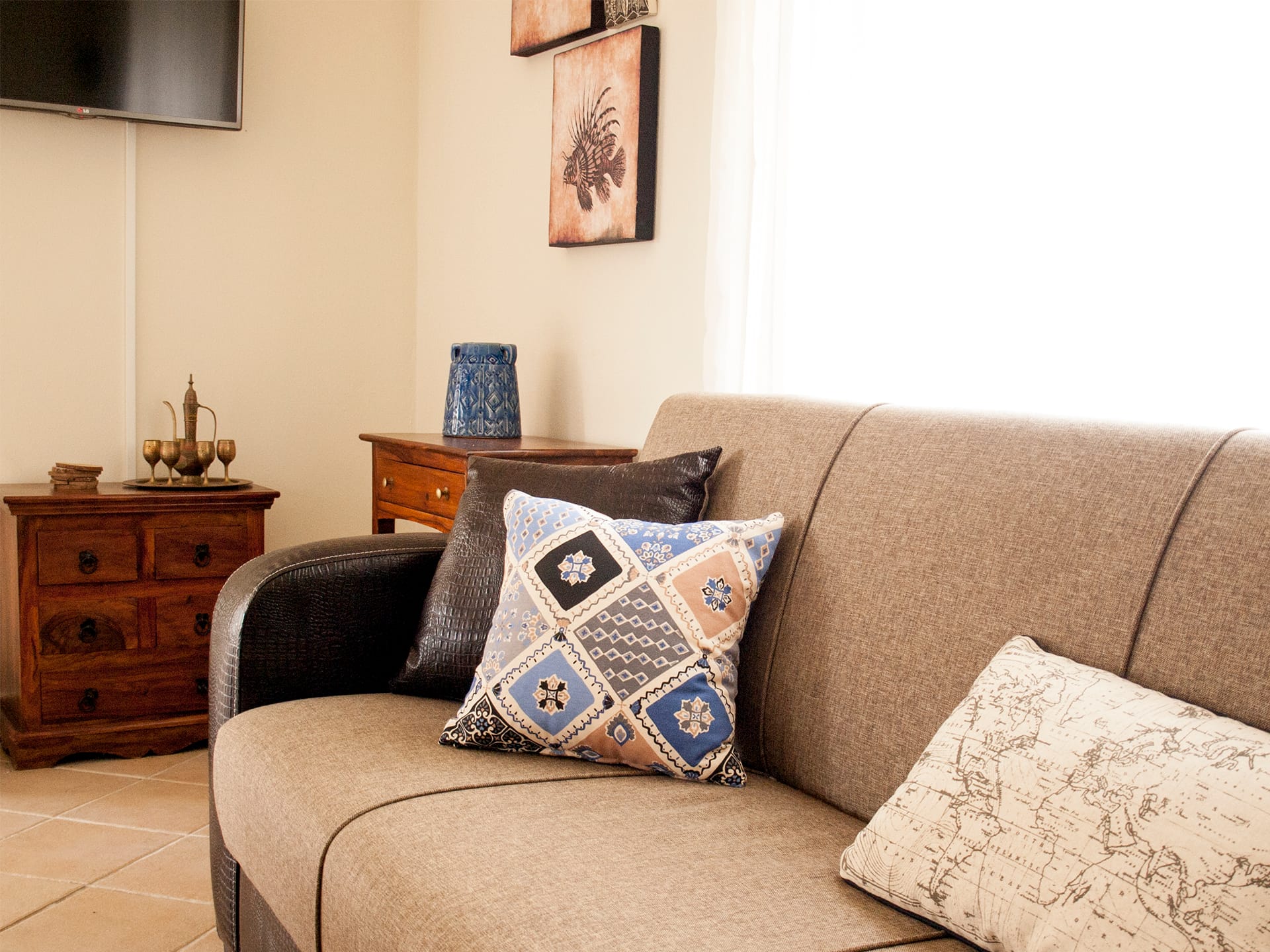 Unwind in the spacious living room, where plush sofas and a flat-screen TV offer a perfect retreat after a day of exploration.