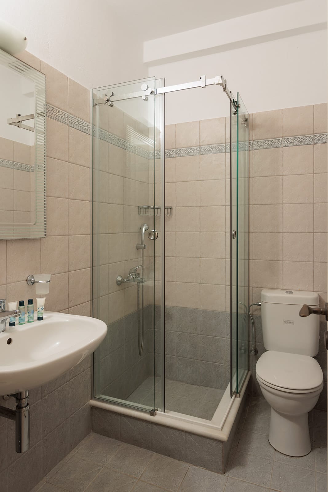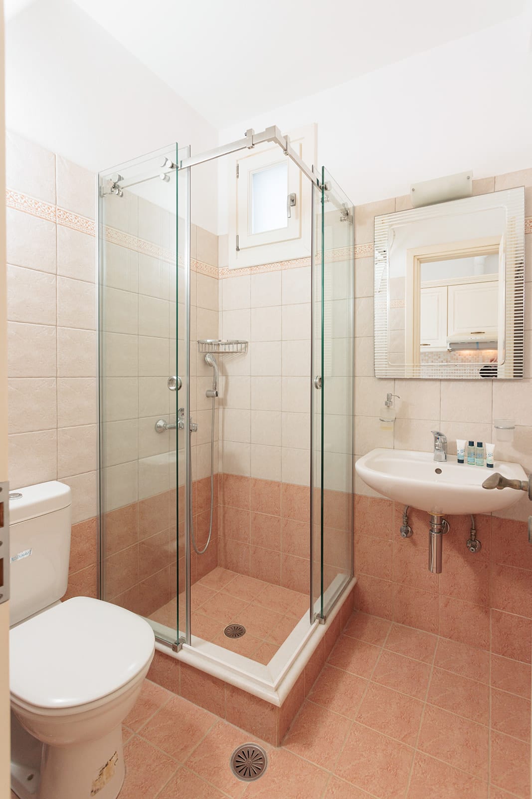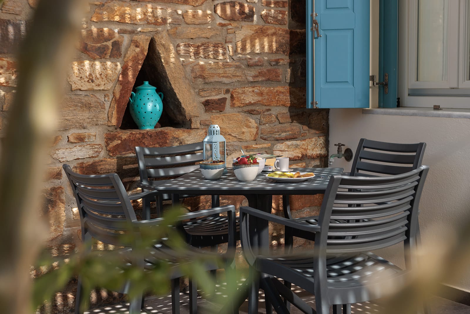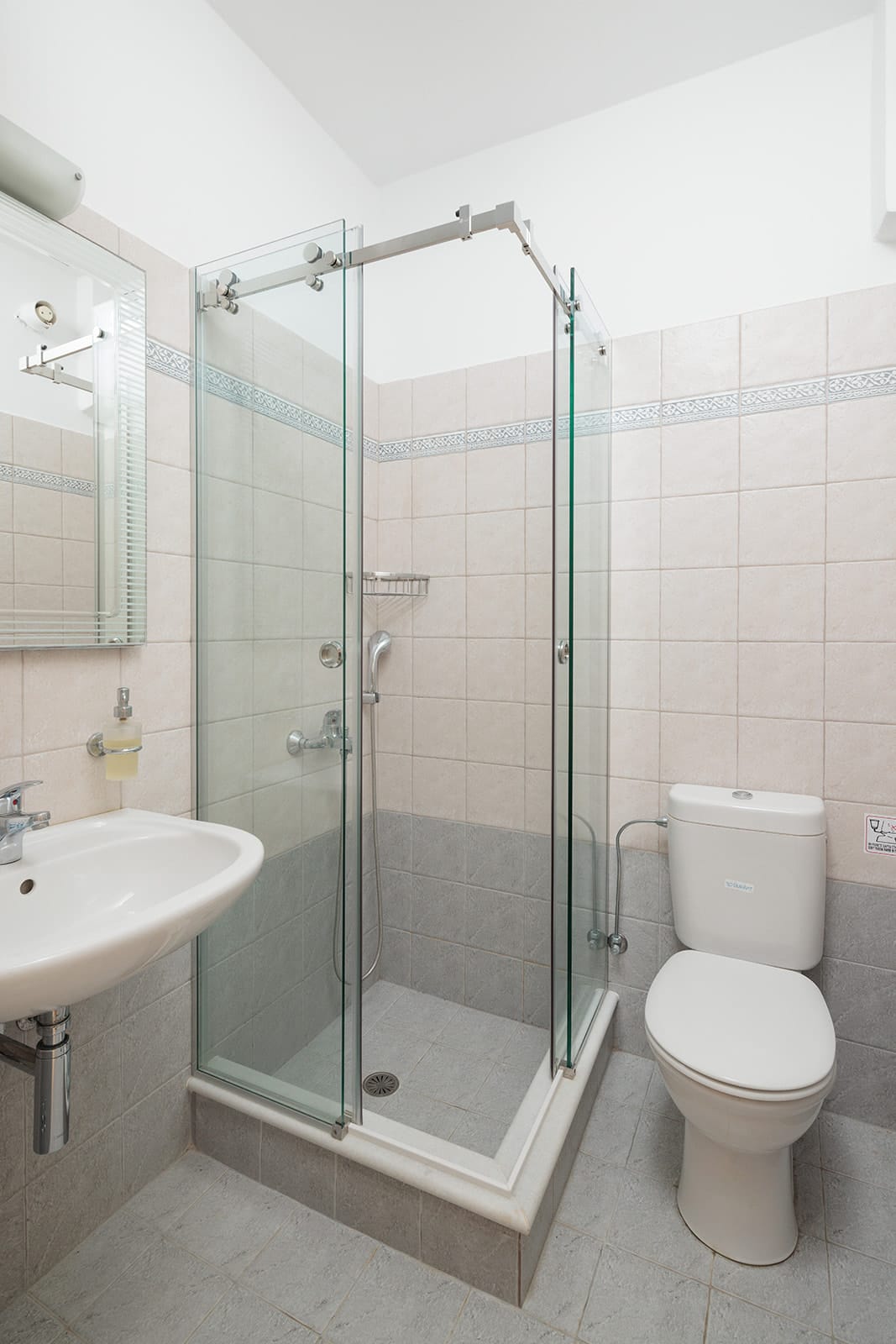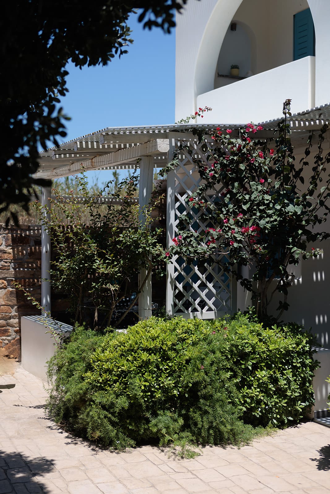 The apartment features one bedroom with a double bed, a living room with two single sofa beds, a fully equipped kitchen, a bathroom with shower, and a private veranda. The apartment also offers a shared courtyard with a barbeque area and shared tables and seating, ideal for enjoying the evening with friends. It is also sunny and airy, providing stunning views of the garden and sunlight.