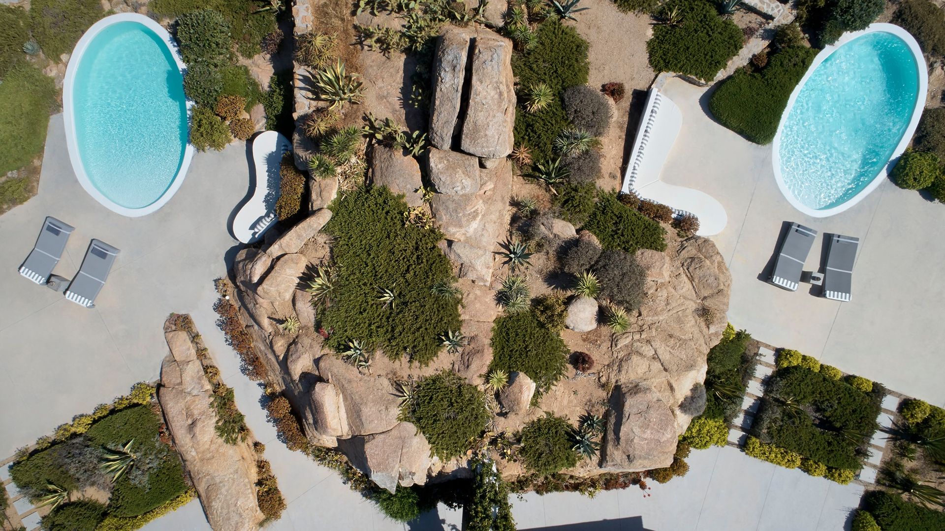 The extensive grounds with their walkways, surrounding the villas, have been landscaped in such a way as to allow privacy and seclusion either in the two "infinity pools" with magnificent sea views or to the two mini pools which are ideal relaxation spots for the grownups or playgrounds for the little ones. The spacious outdoor facilities, including its two barbeques, can form a unified surrounding ideal for partying, weddings or other similar activities demanding large gatherings.