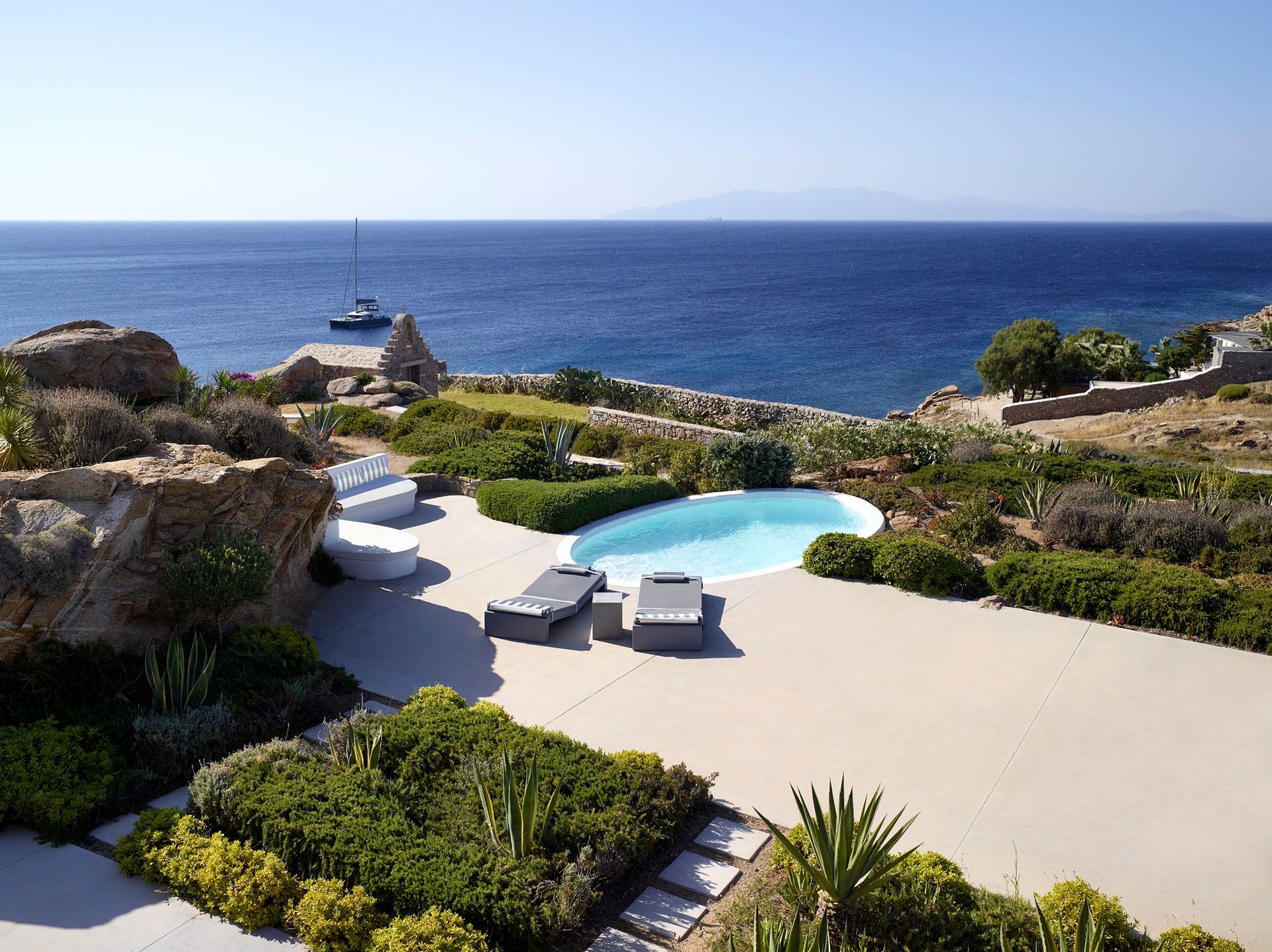 Villa Kallisti is an exceptionally unique property located at the Southern part of Mykonos, overlooking the islands of Paros and Naxos with stunning views over the Aegean sea and its secluded PRIVATE BAY.