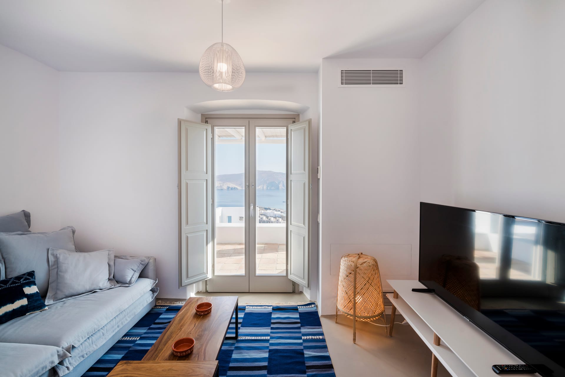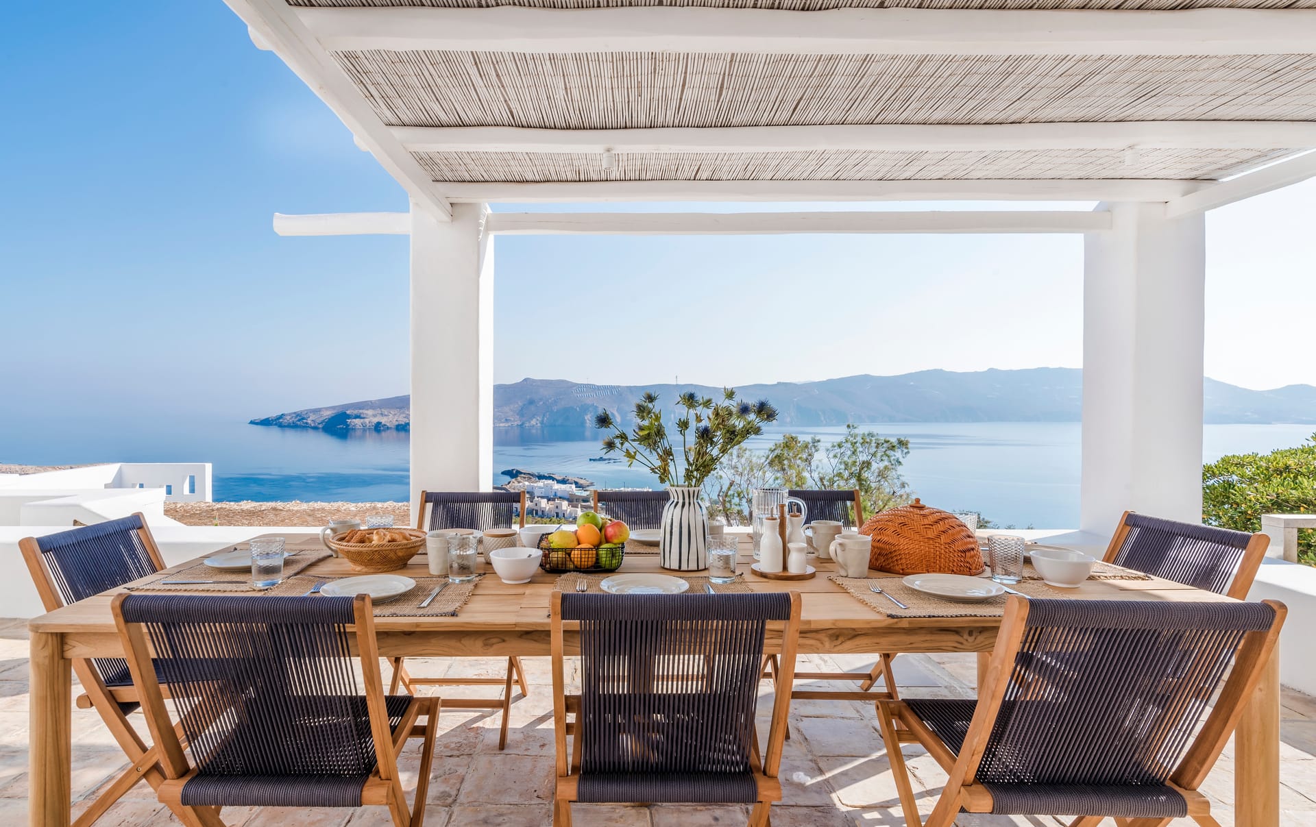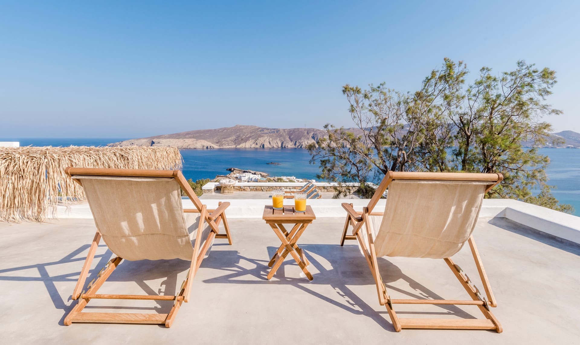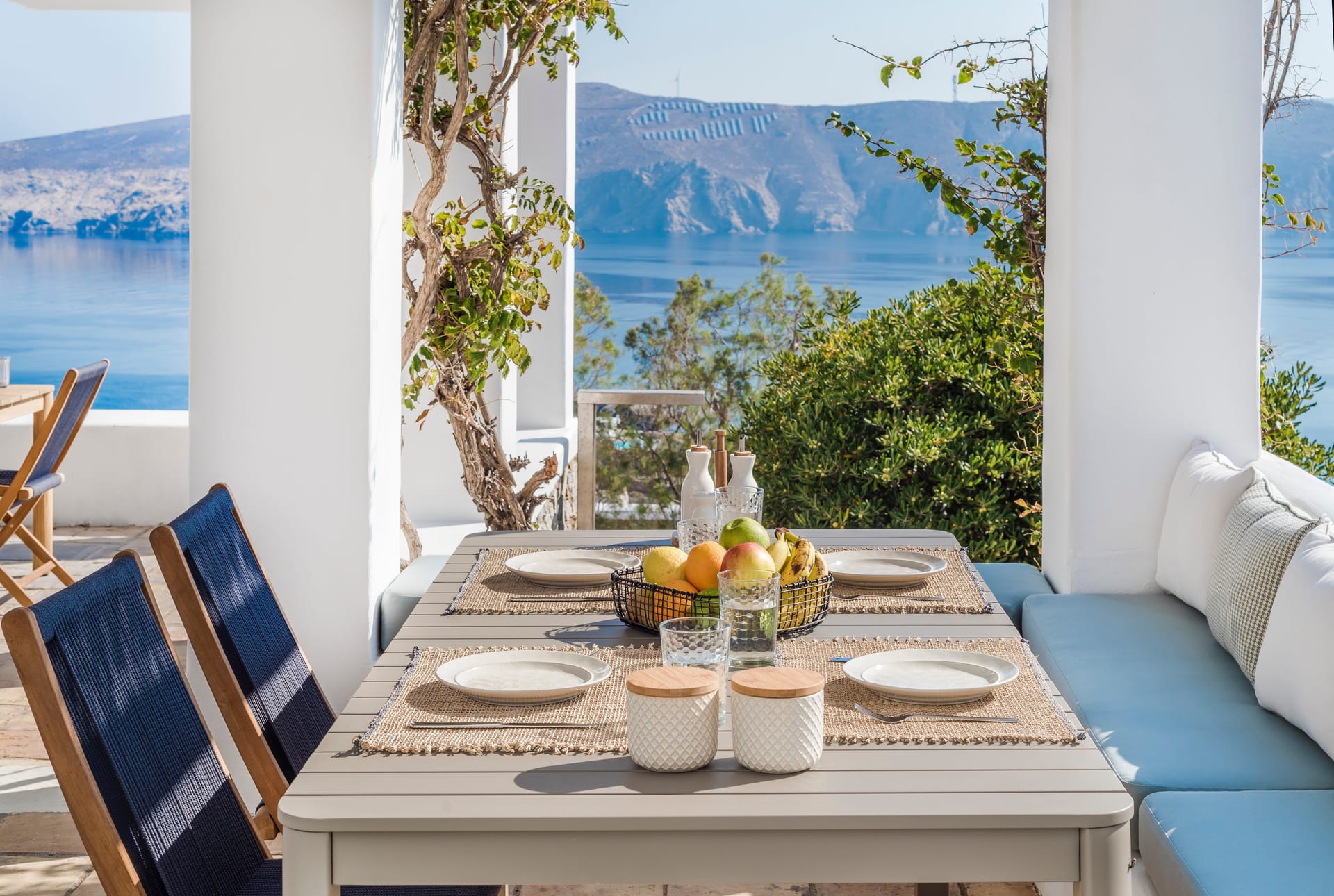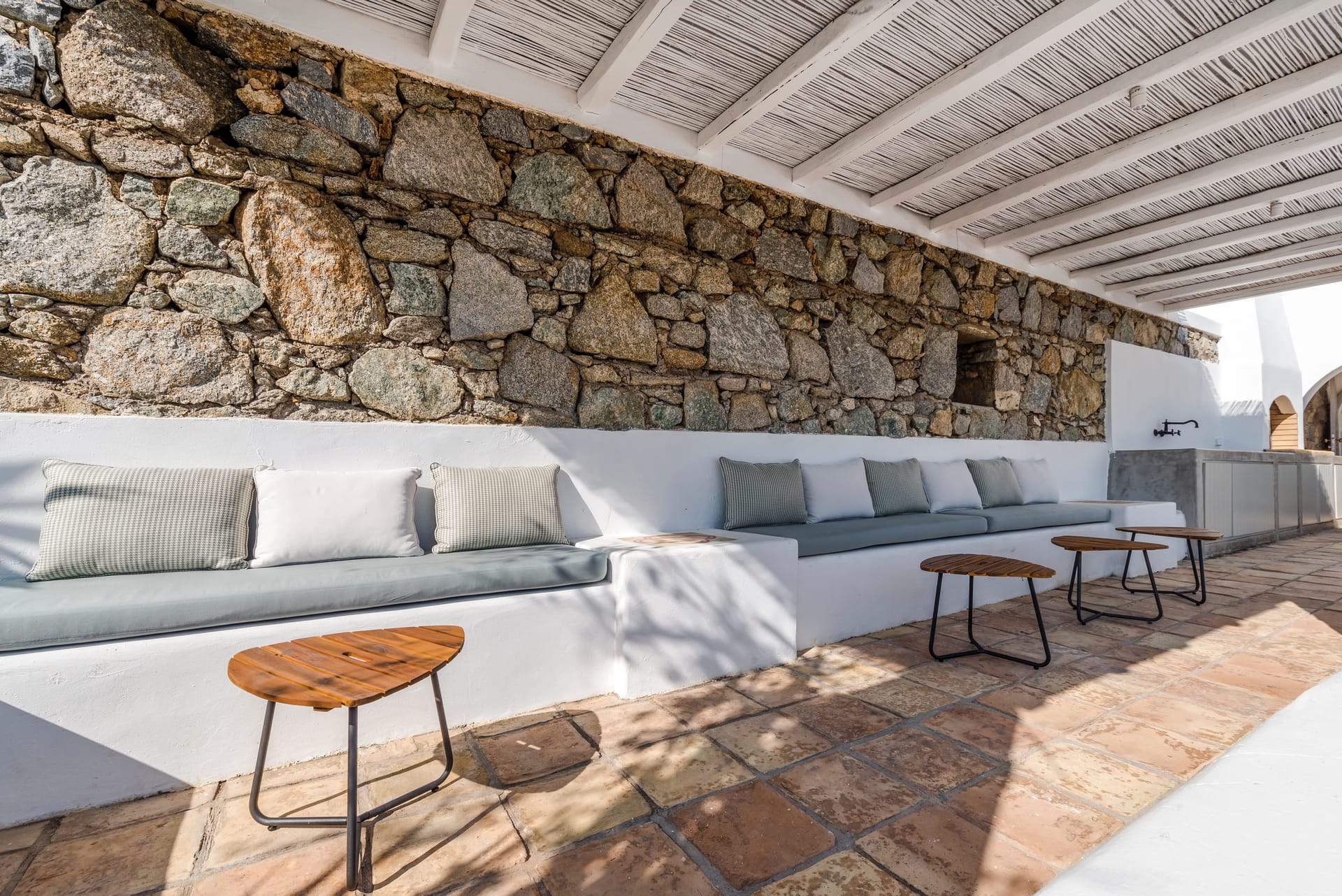 Villa Agios Sostis is situated on a hillside above Agios Sostis beach, a privileged location which provides ultimate privacy. It offers to its guests an unobstructed sea view of “Panormos” bay and “Agios Sostis” beach and within a 2-minute walk they can enjoy the crystal-clear waters of the beach.