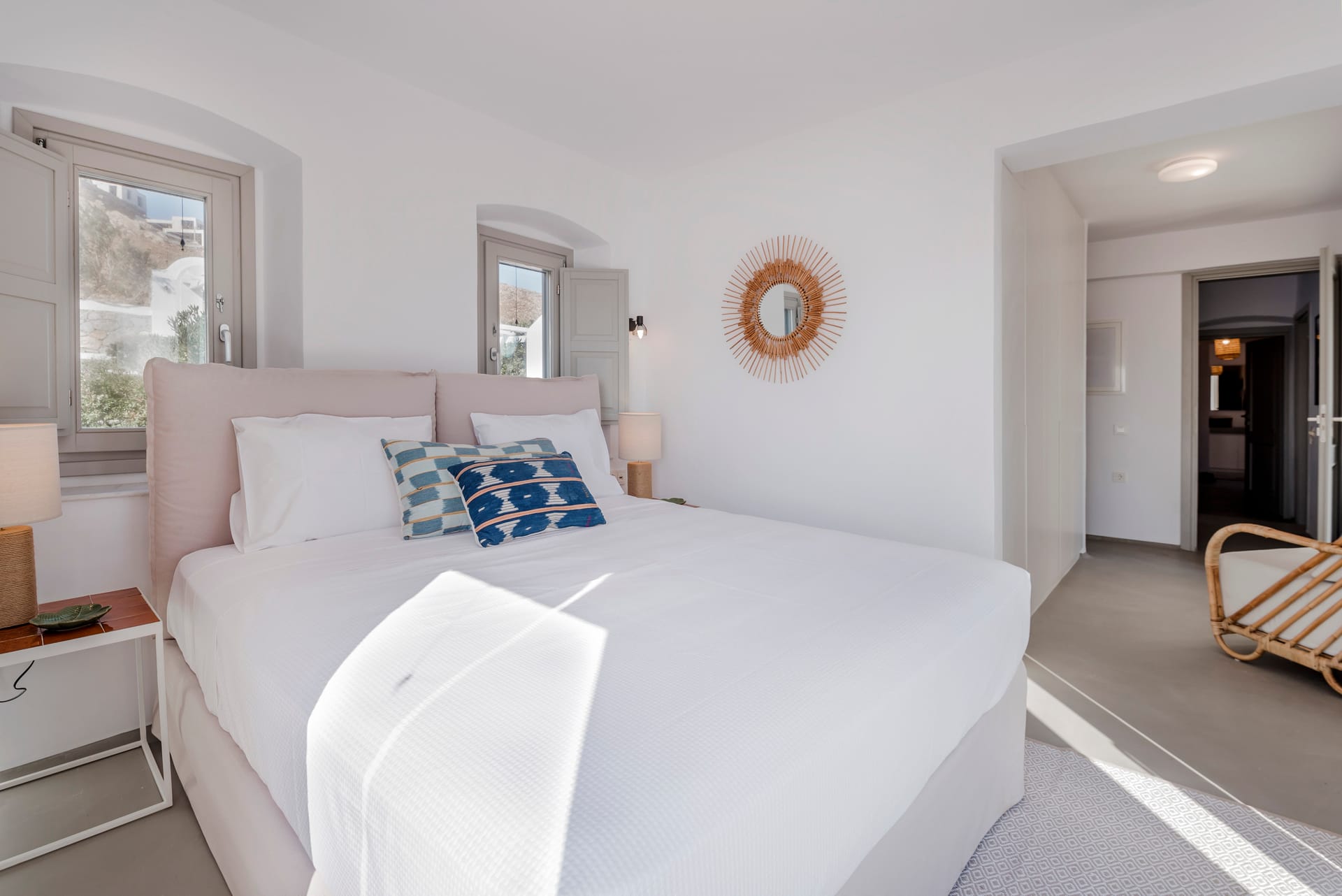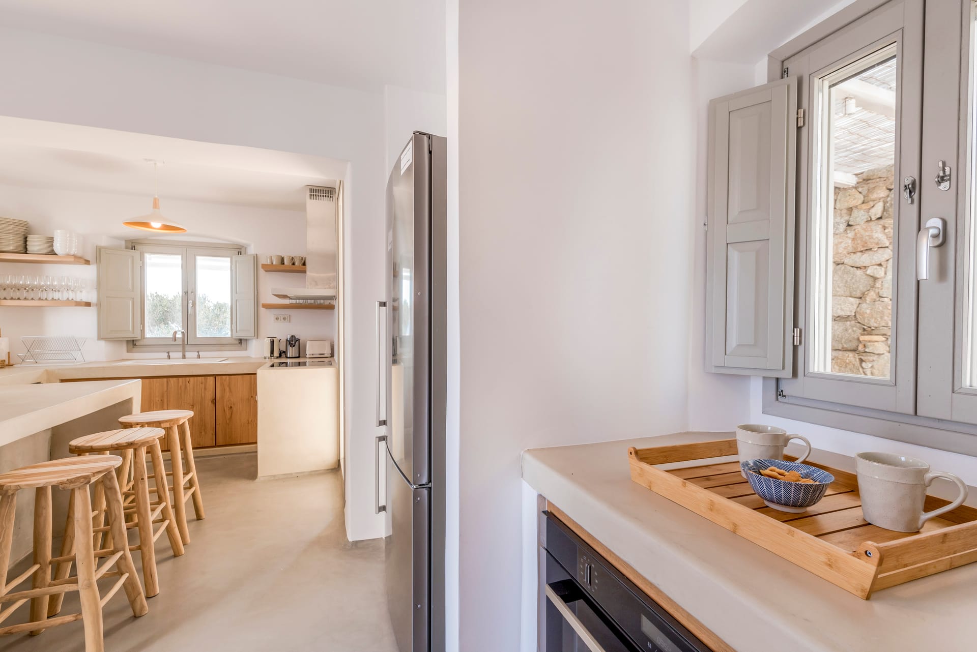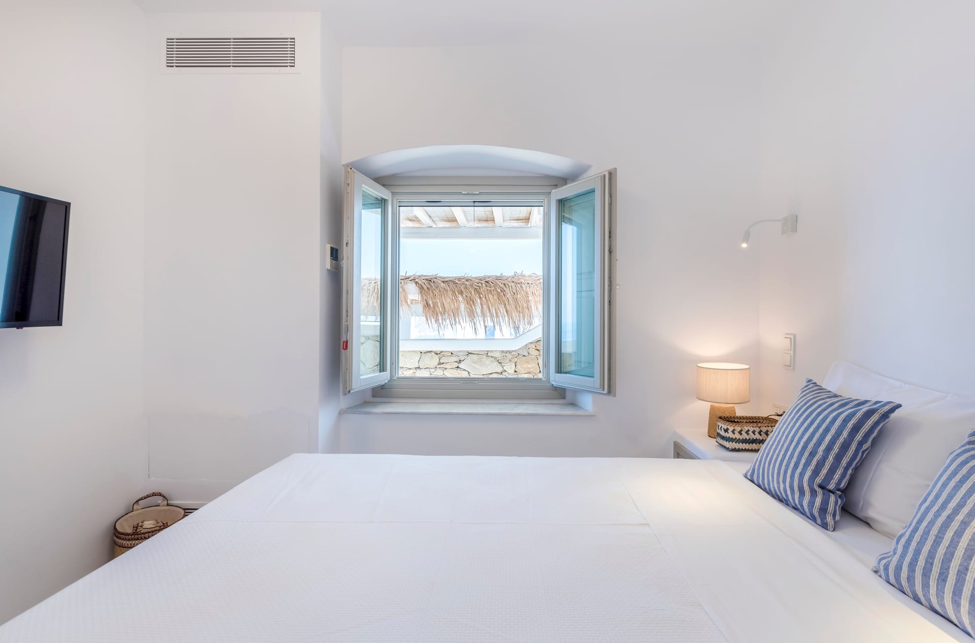 - Mykonos Town (Chora): 15 minutes (6 km), restaurants, bars, clubs, bakeries, pharmacies, international press & ATM.