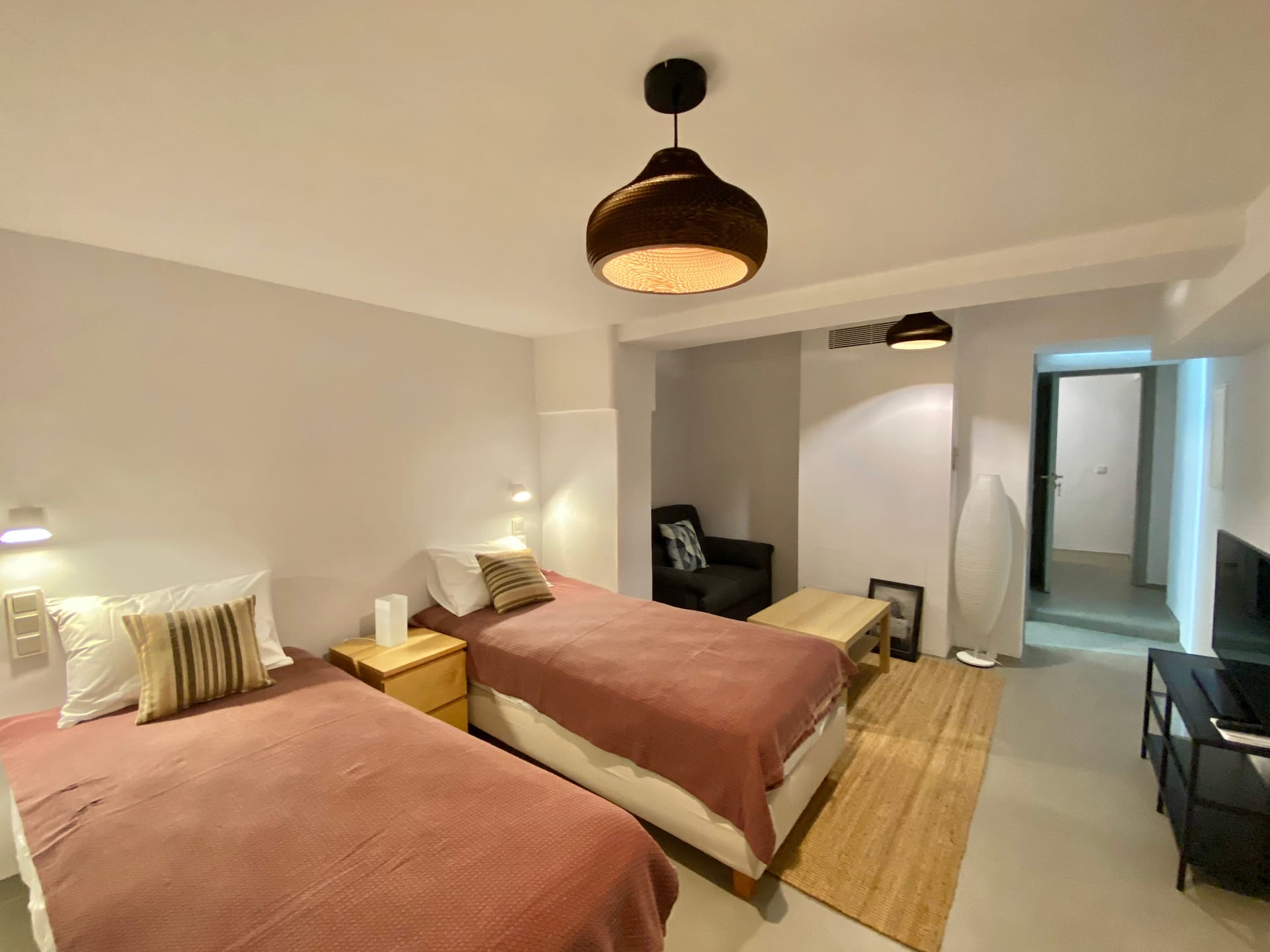 - 1 Bedroom (Queen size 160x200) apartment with lounge area, full bathroom and direct access to pool area.