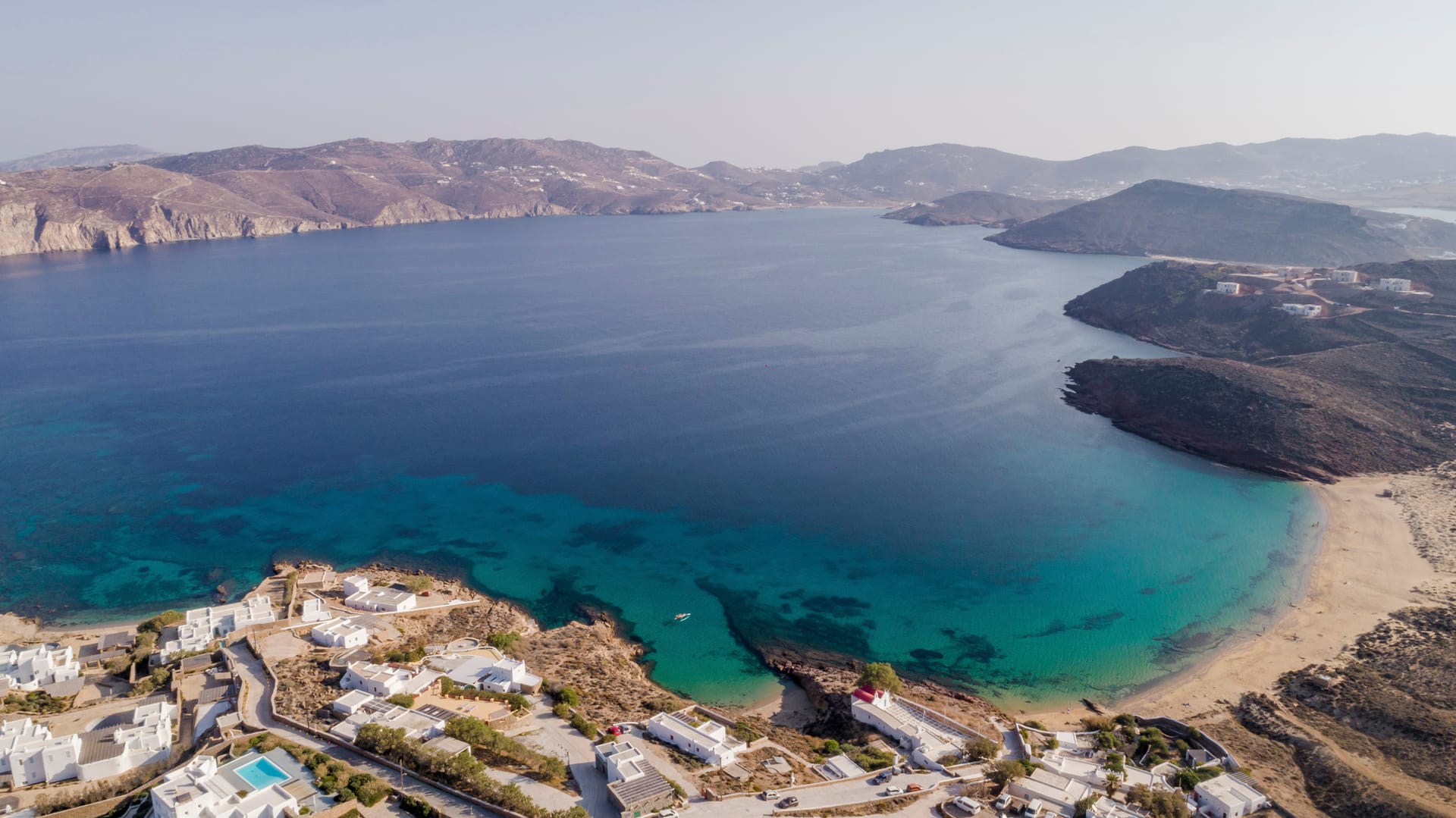 - Southern Beaches: Ornos 15 minutes (9km)