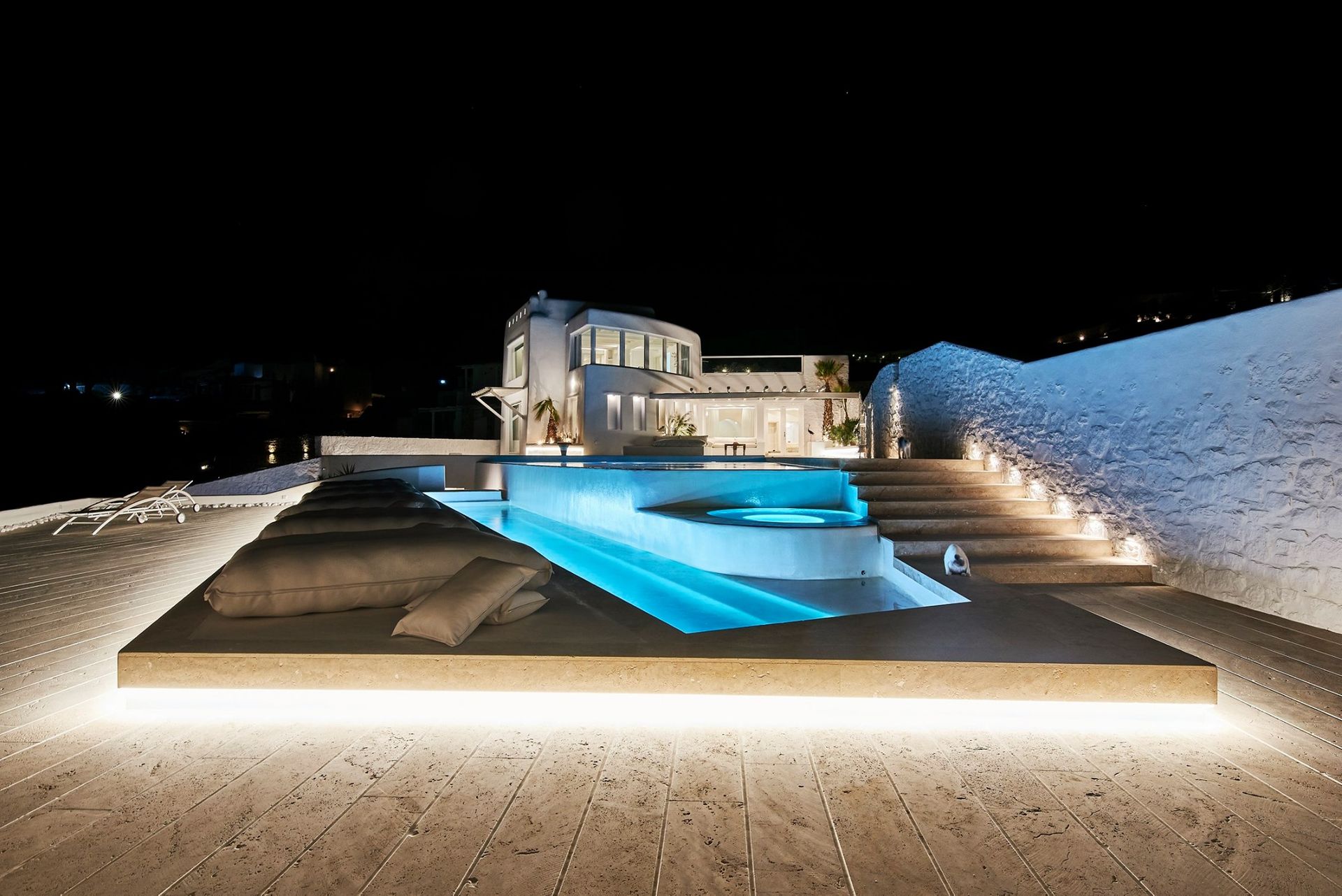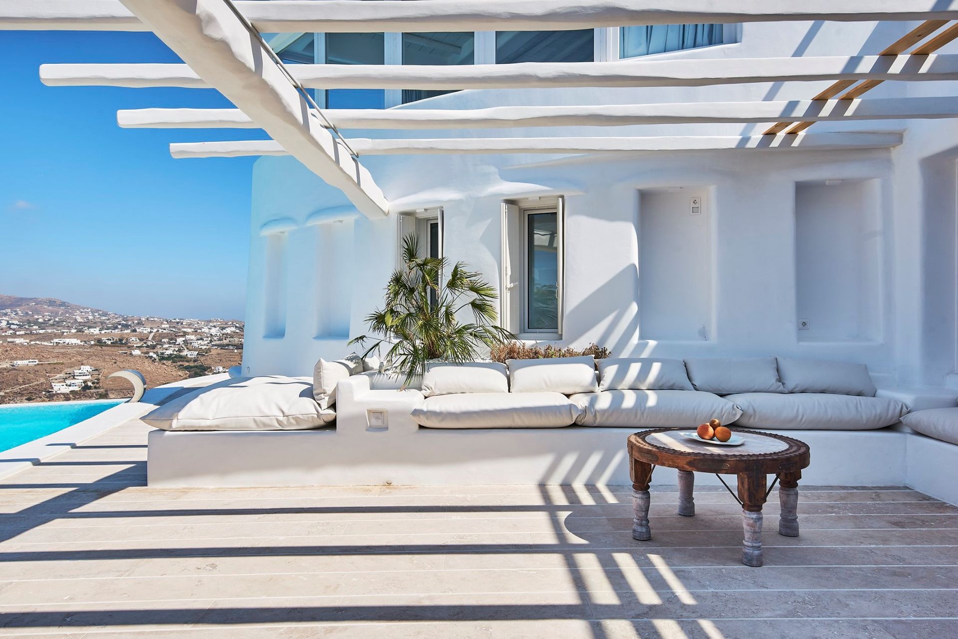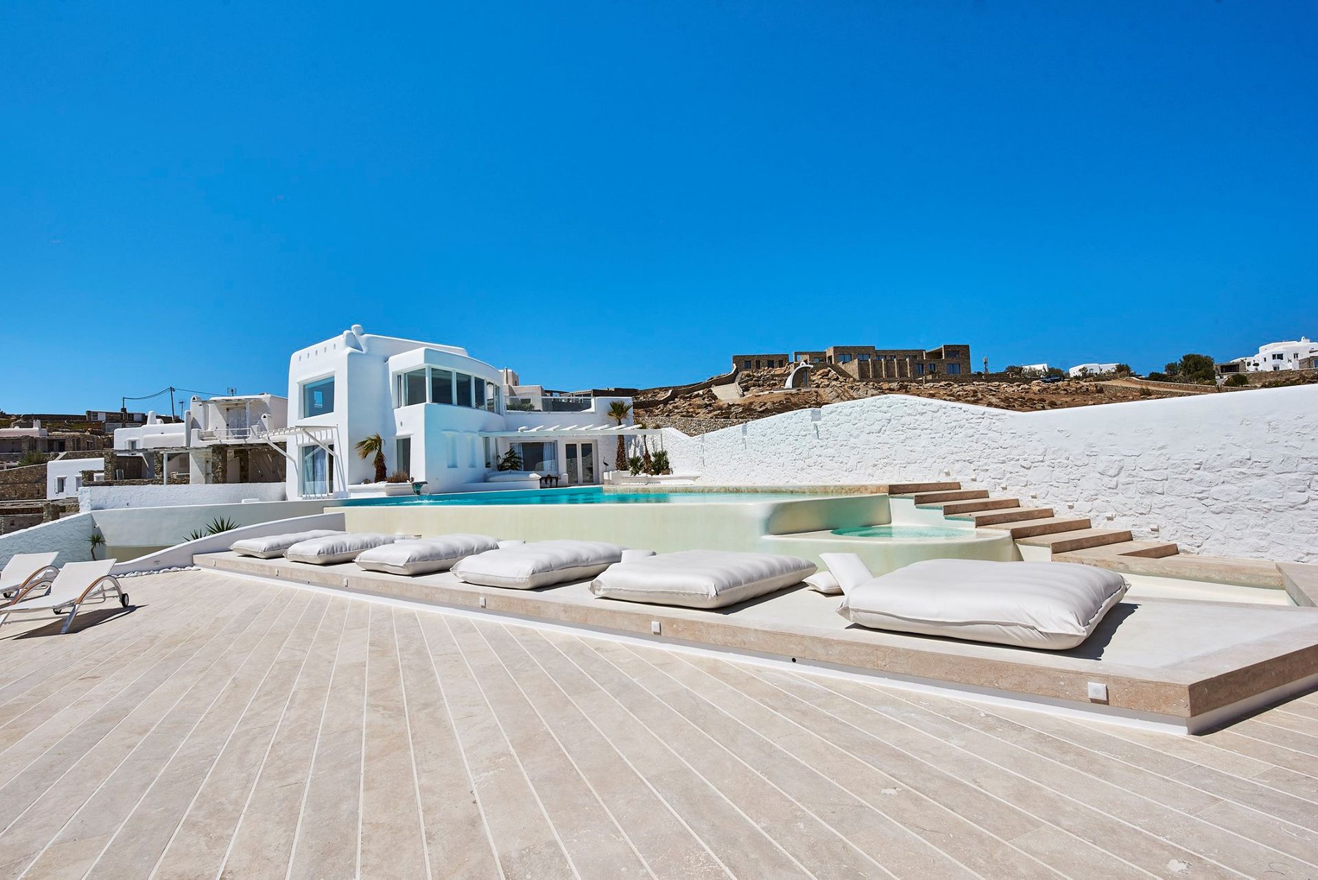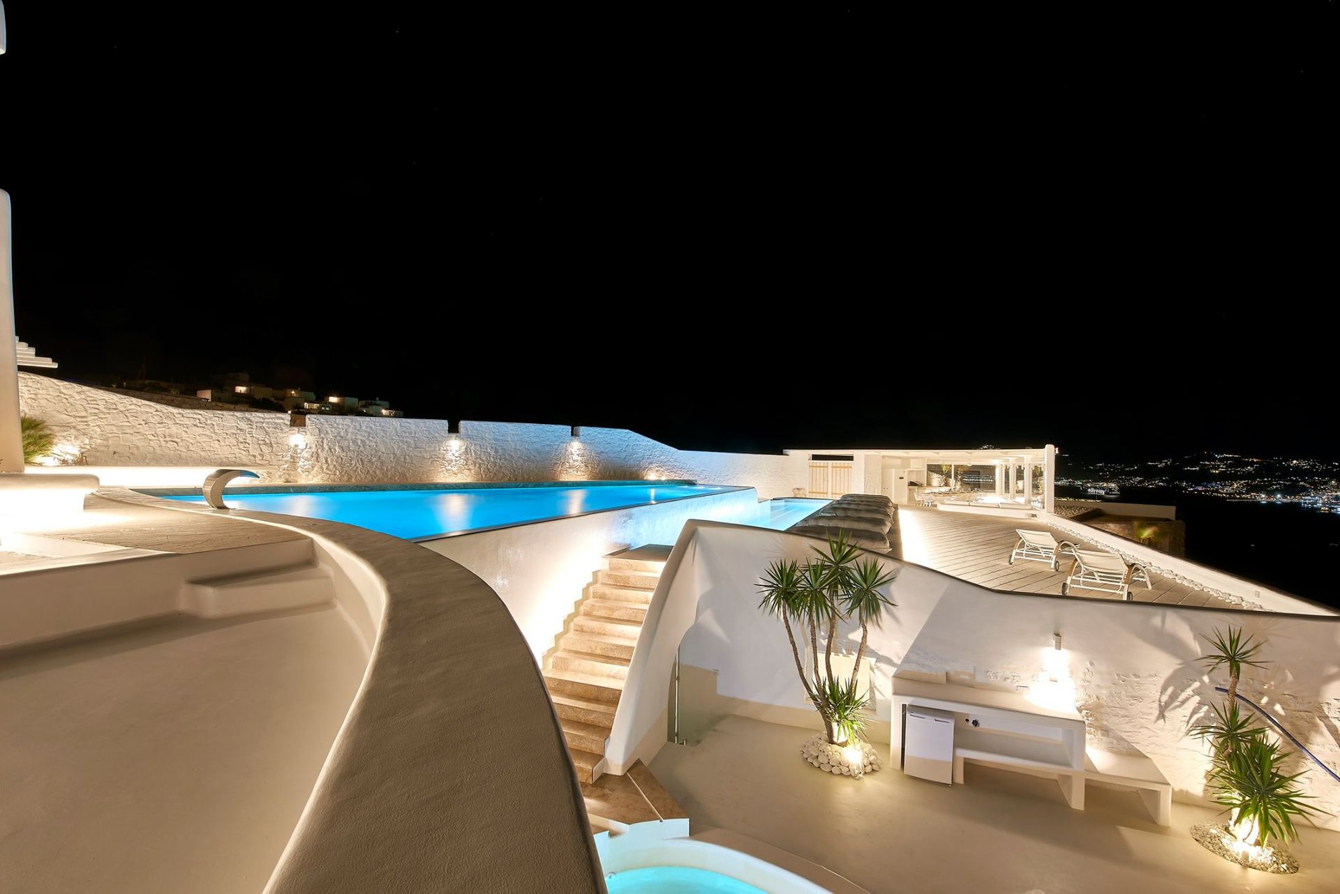 Villa Anantara (650 square meters) is located at Pouli area of Mykonos and it has a panoramic view of Mykonos Town, the port of Mykonos and Ornos.
