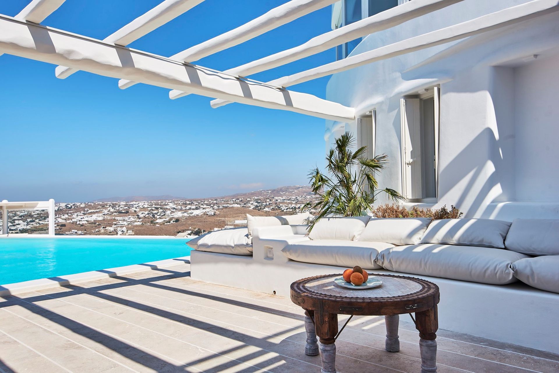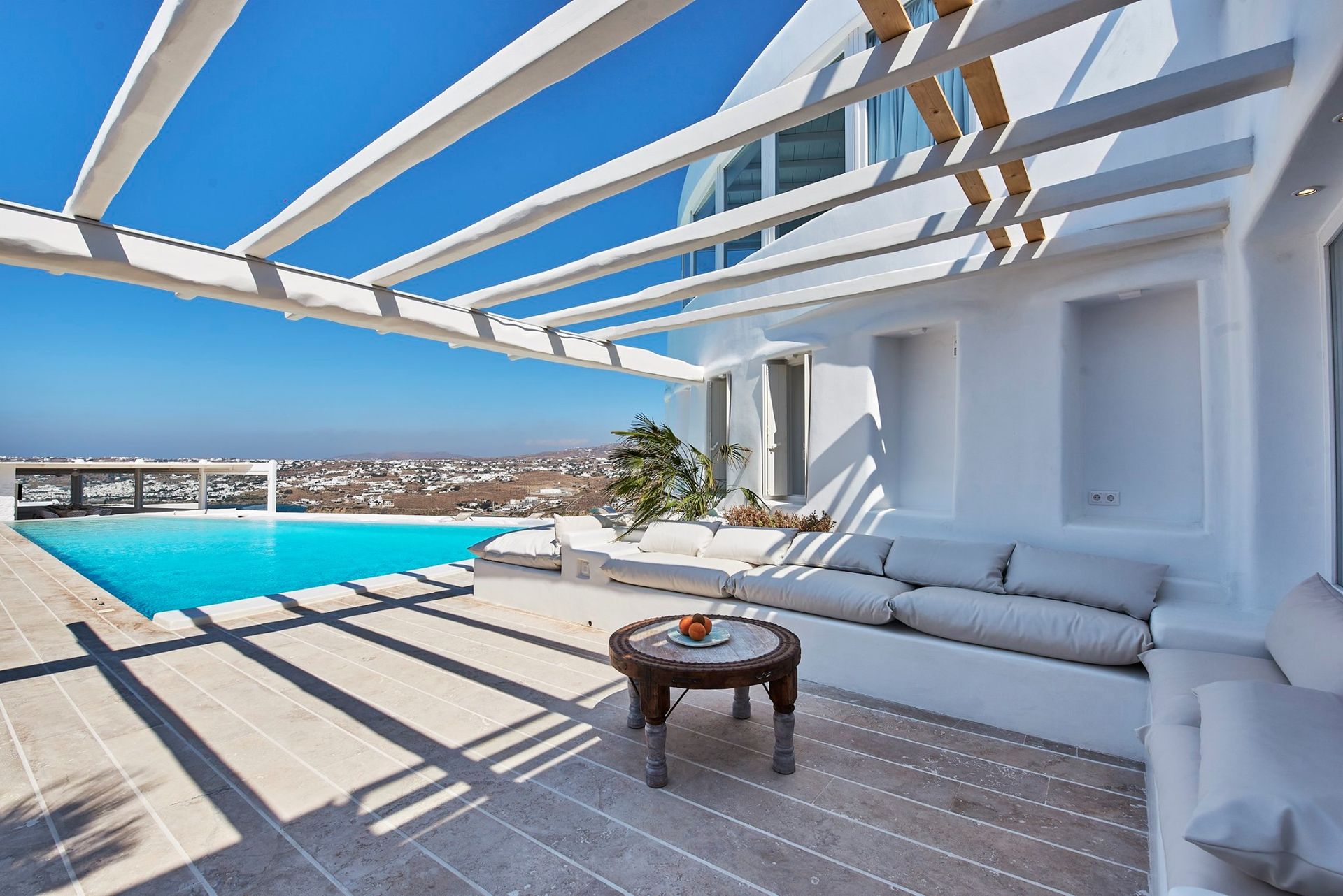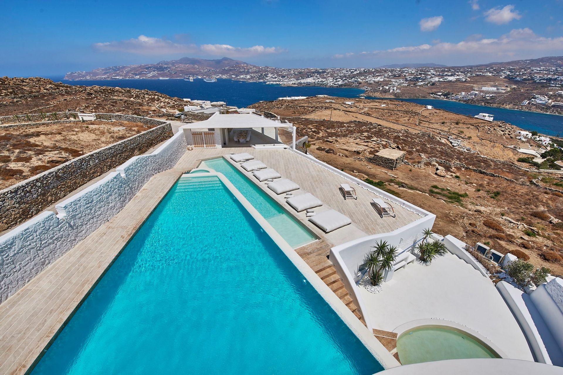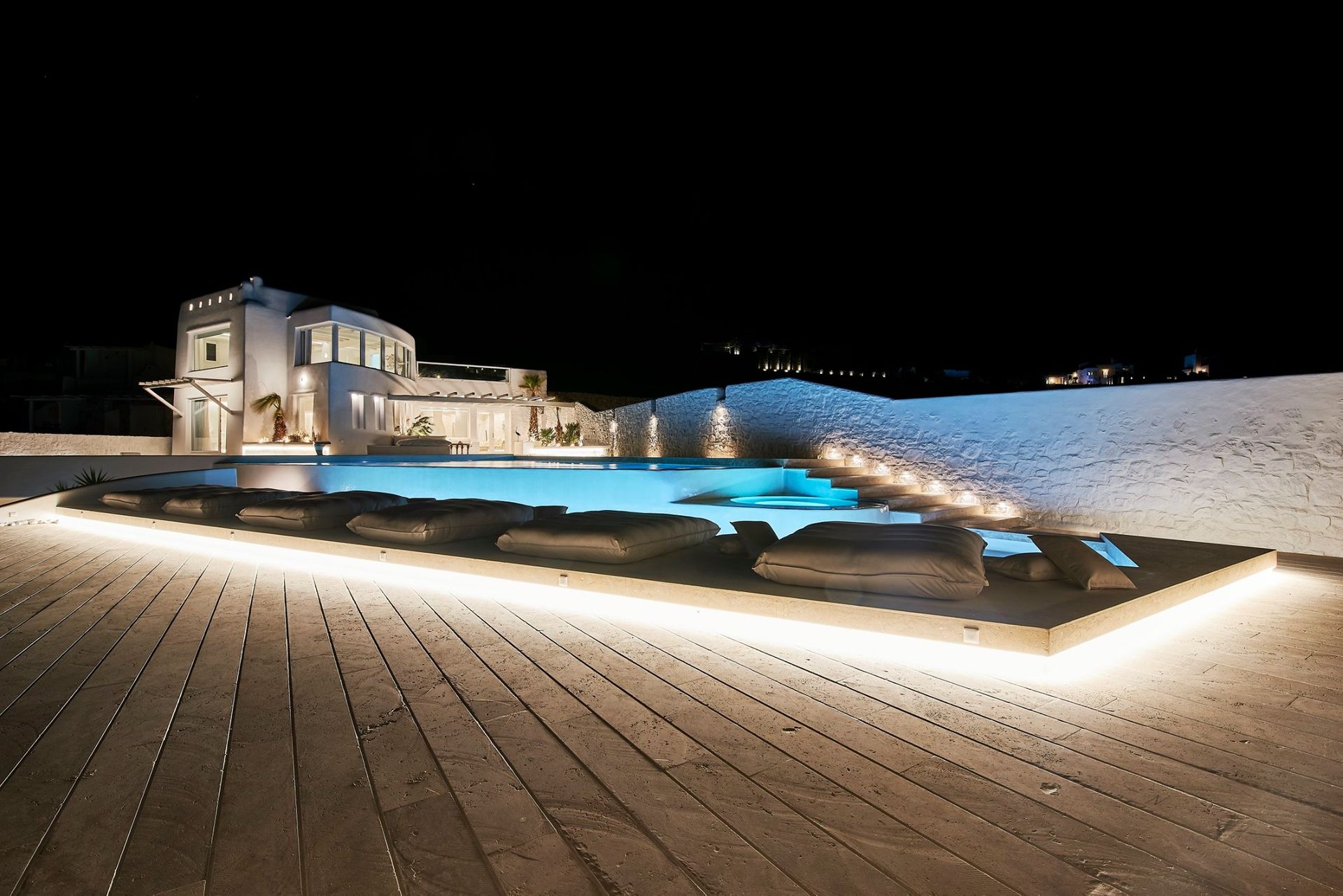 Villa Anantara (650 square meters) is located at Pouli area of Mykonos and it has a panoramic view of Mykonos Town, the port of Mykonos and Ornos.