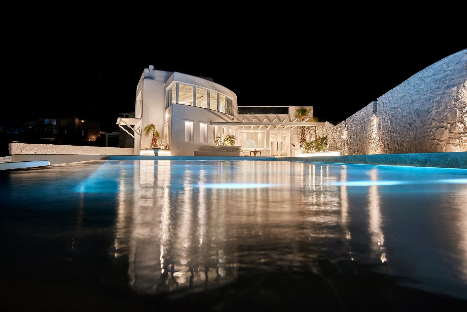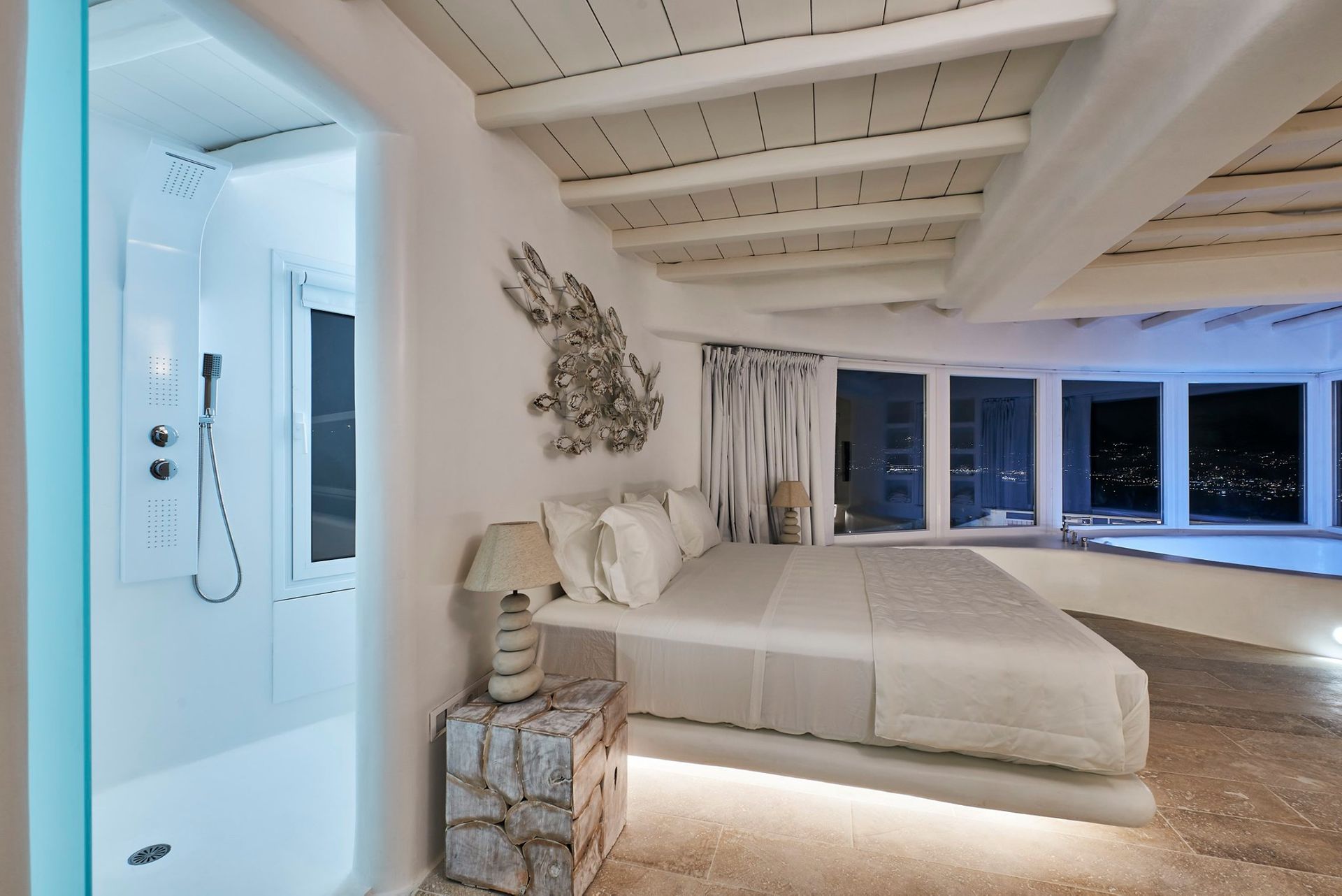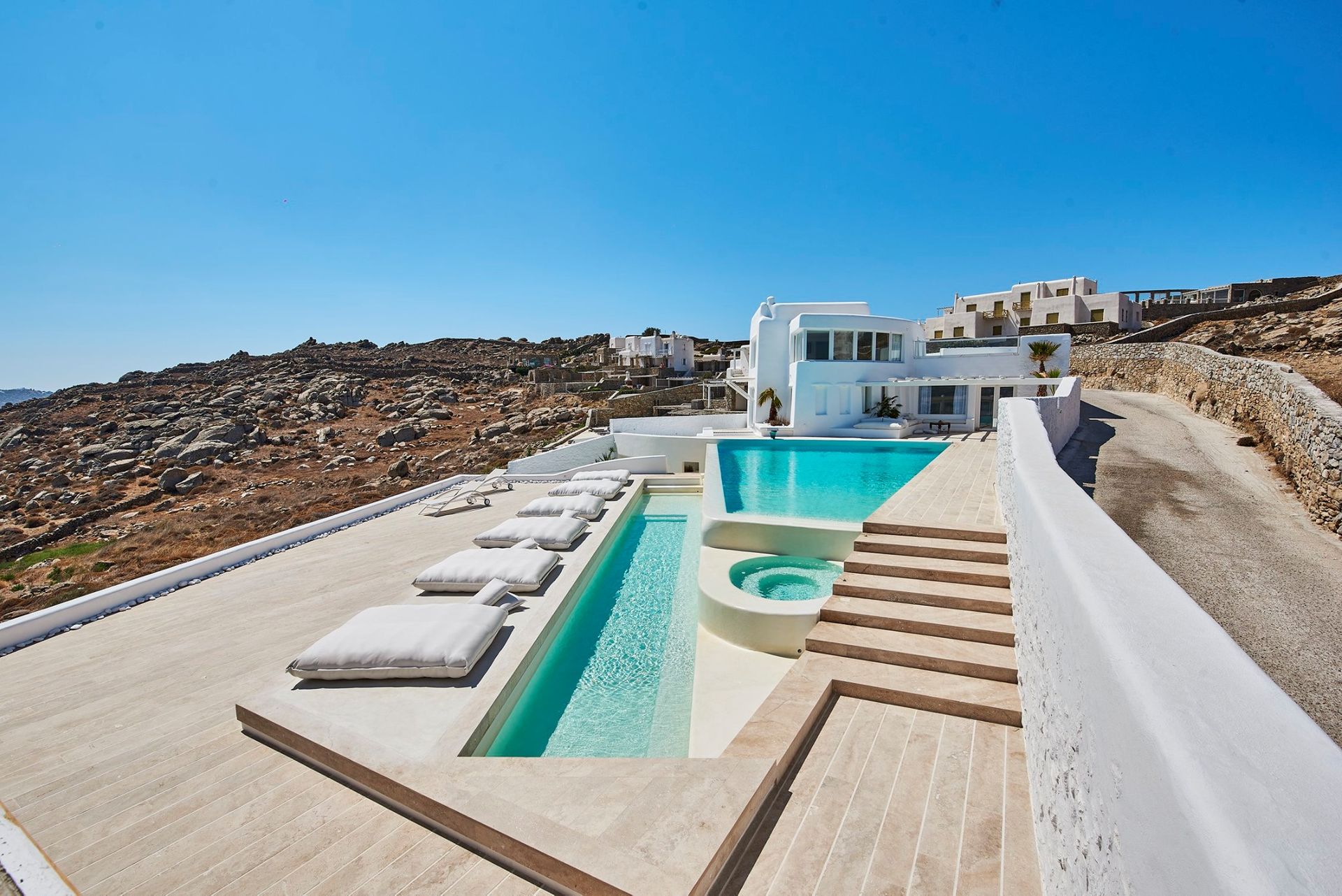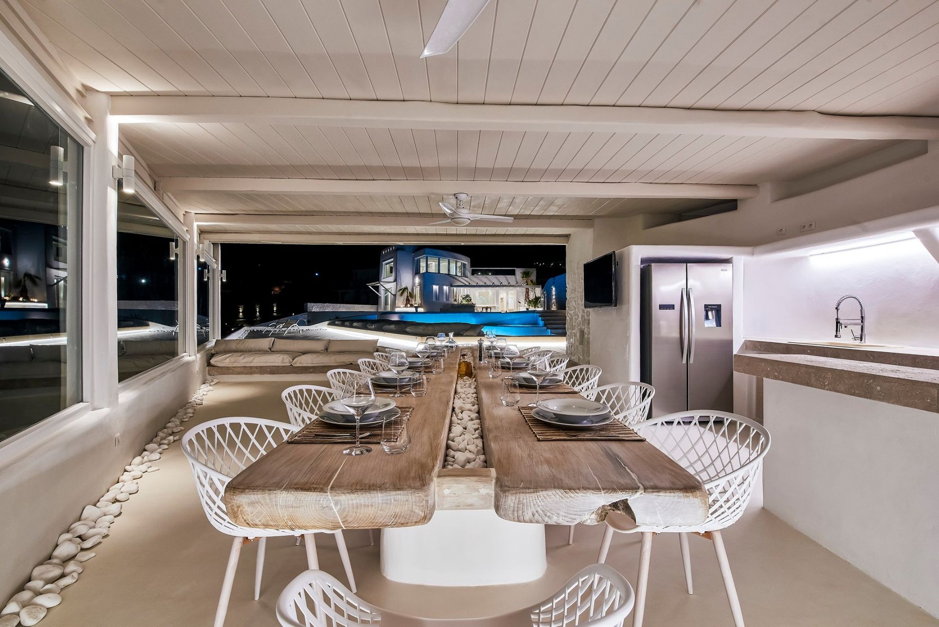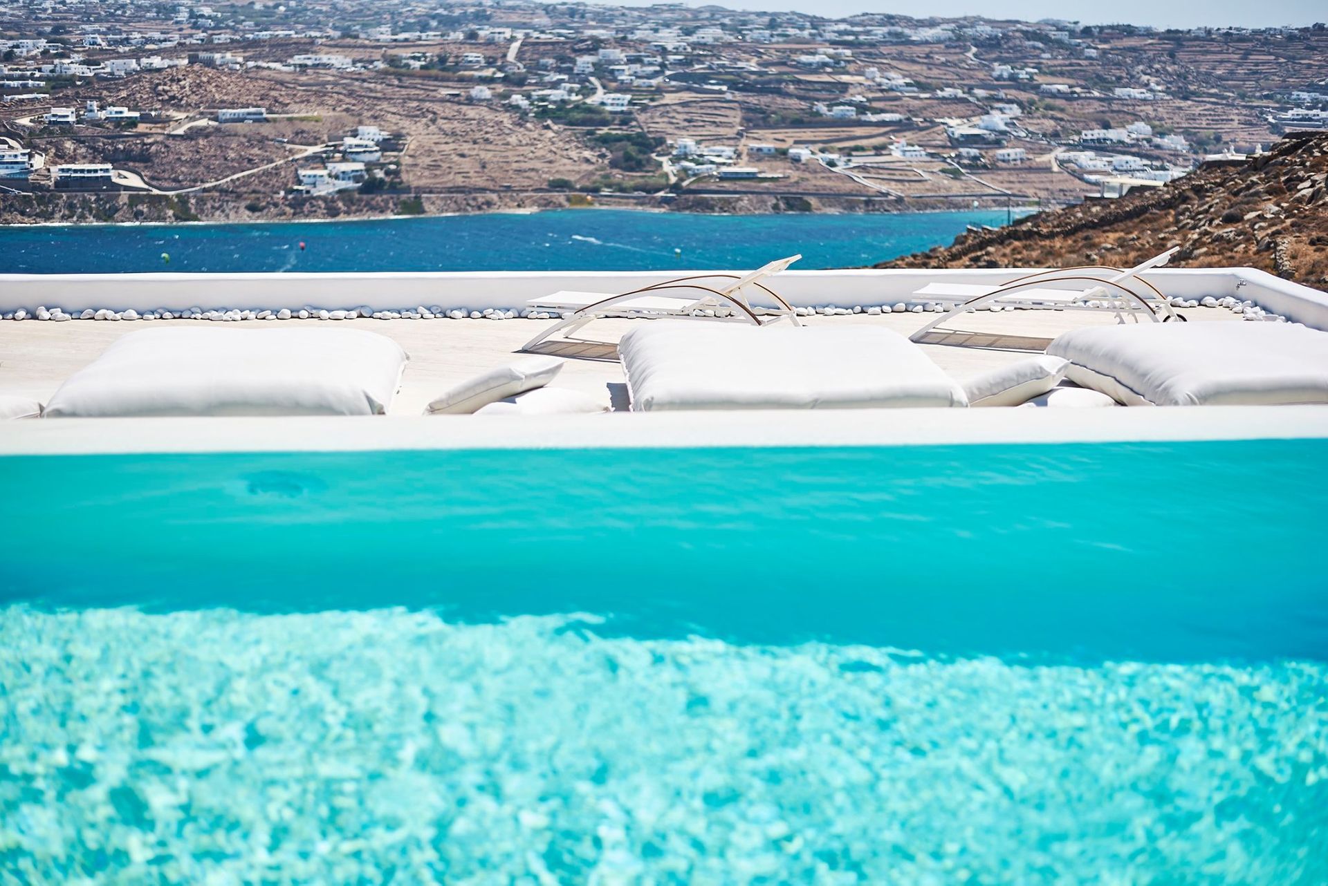 Villa Anantara (650 square meters) is located at Pouli area of Mykonos and it has a panoramic view of Mykonos Town, the port of Mykonos and Ornos.