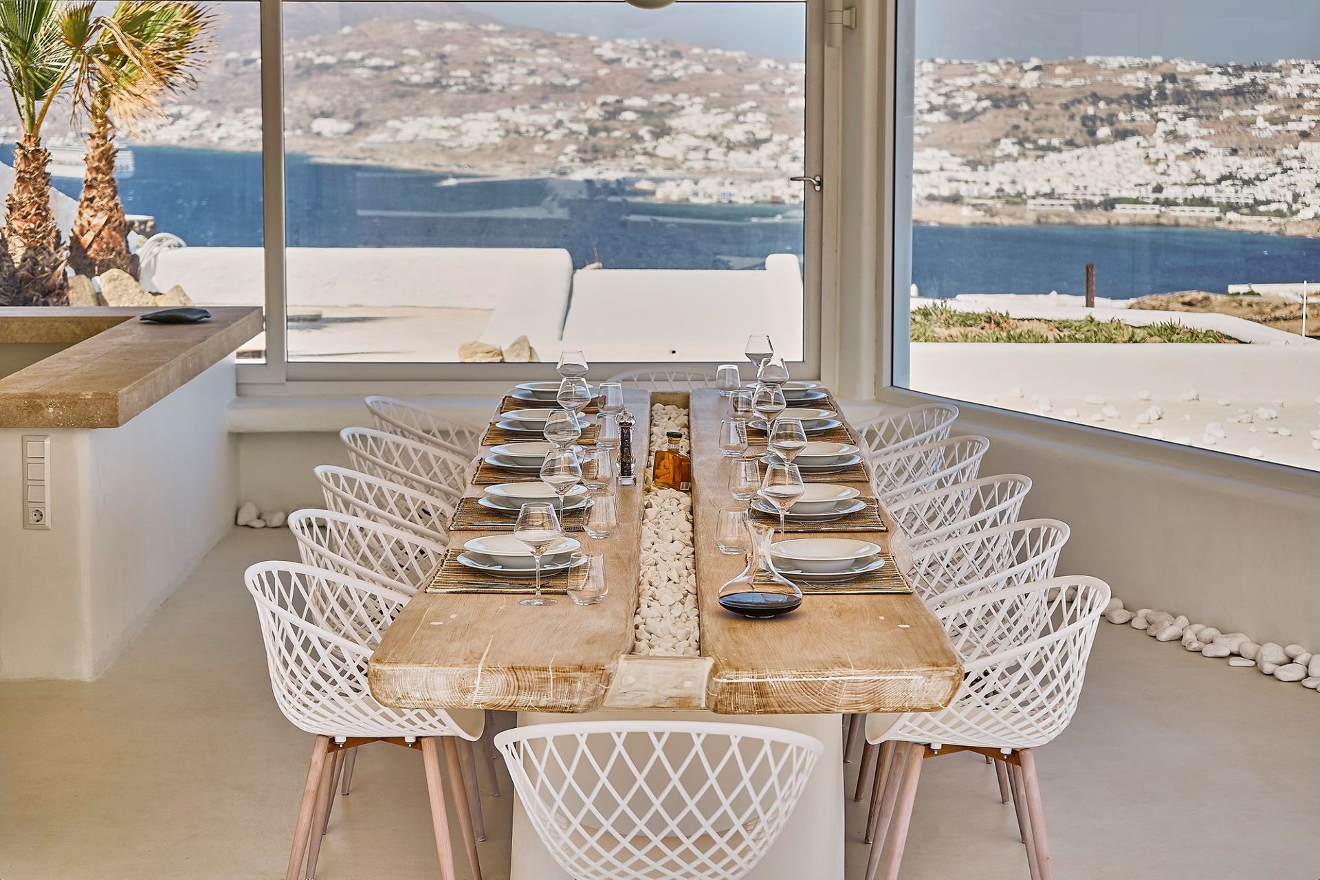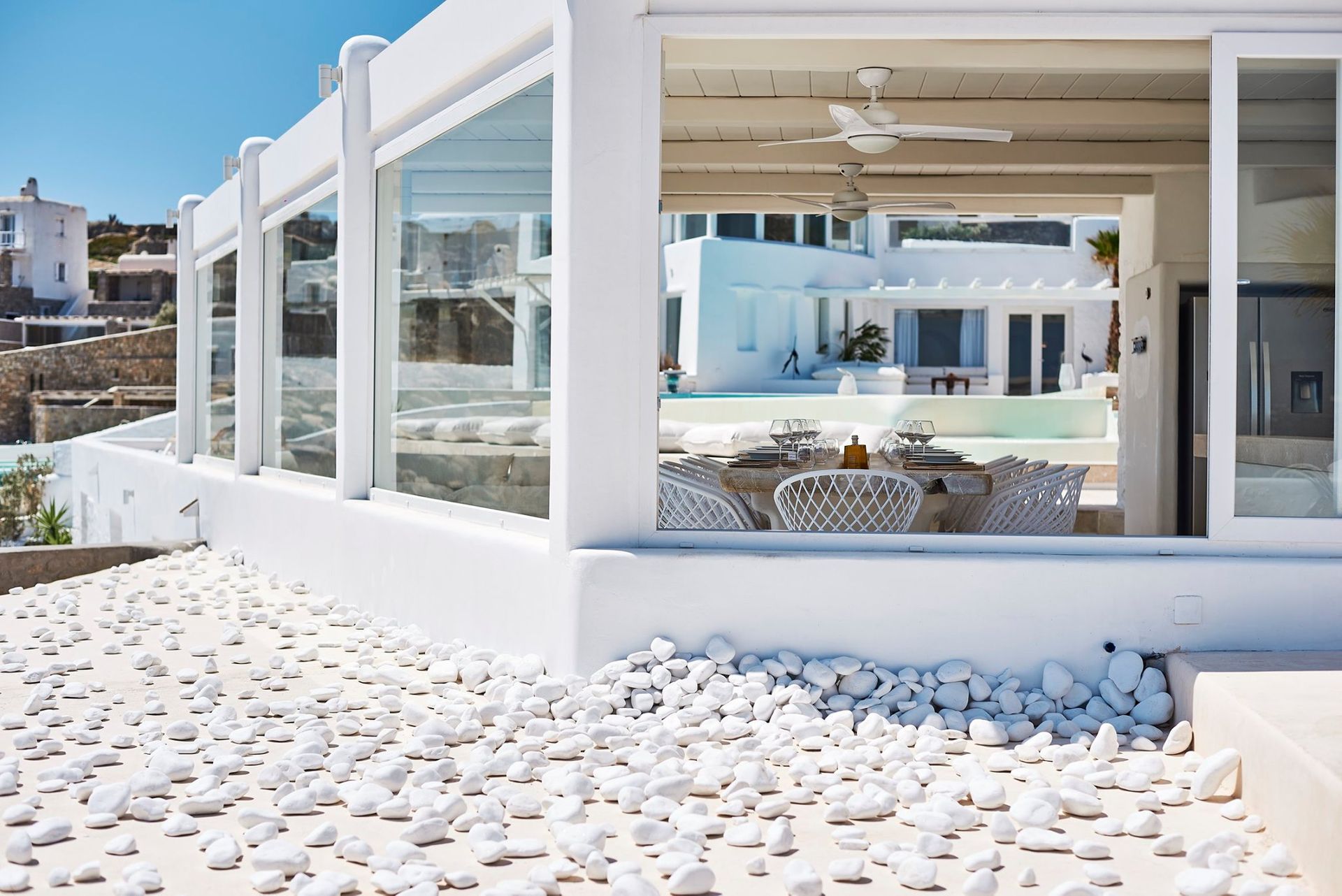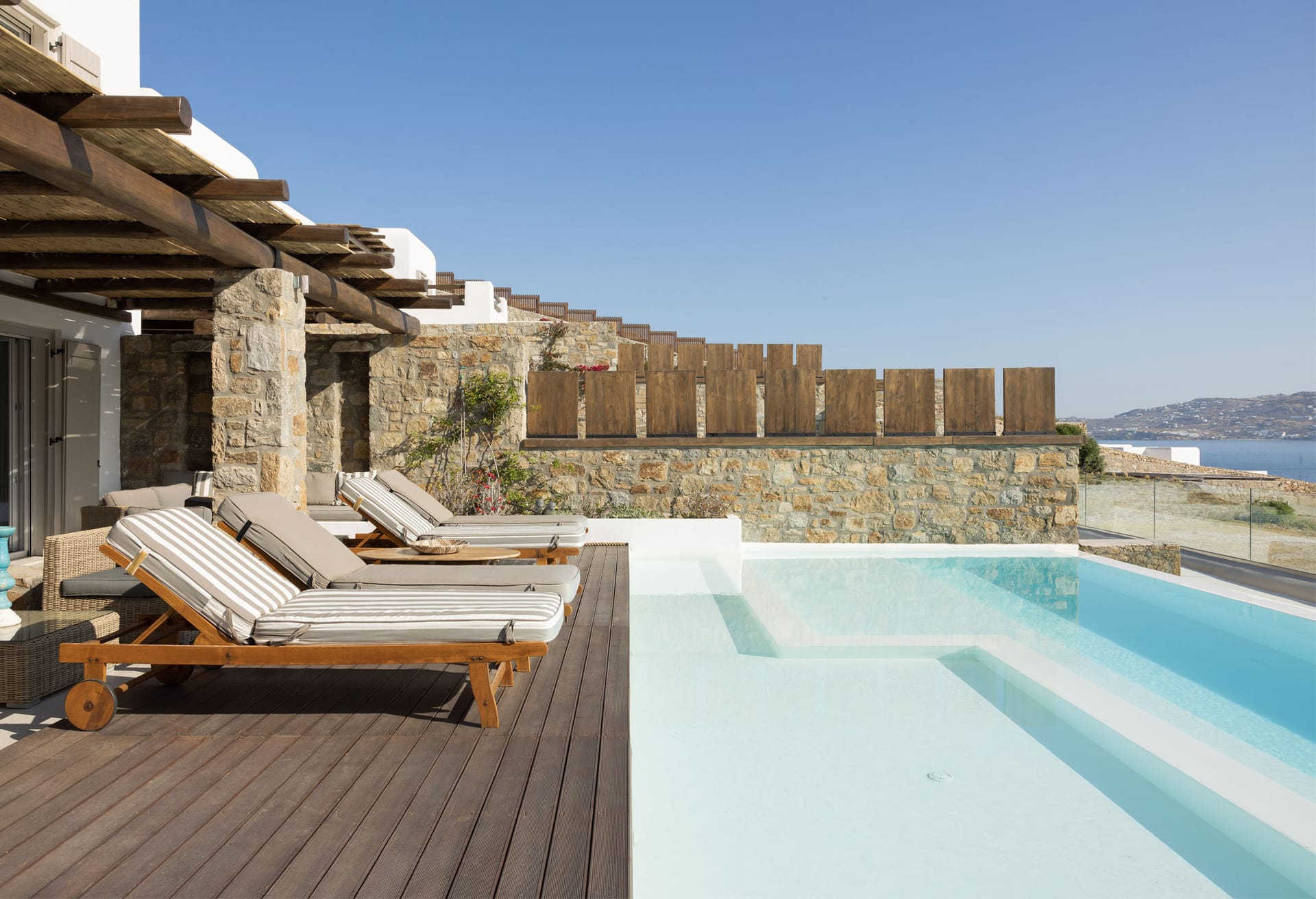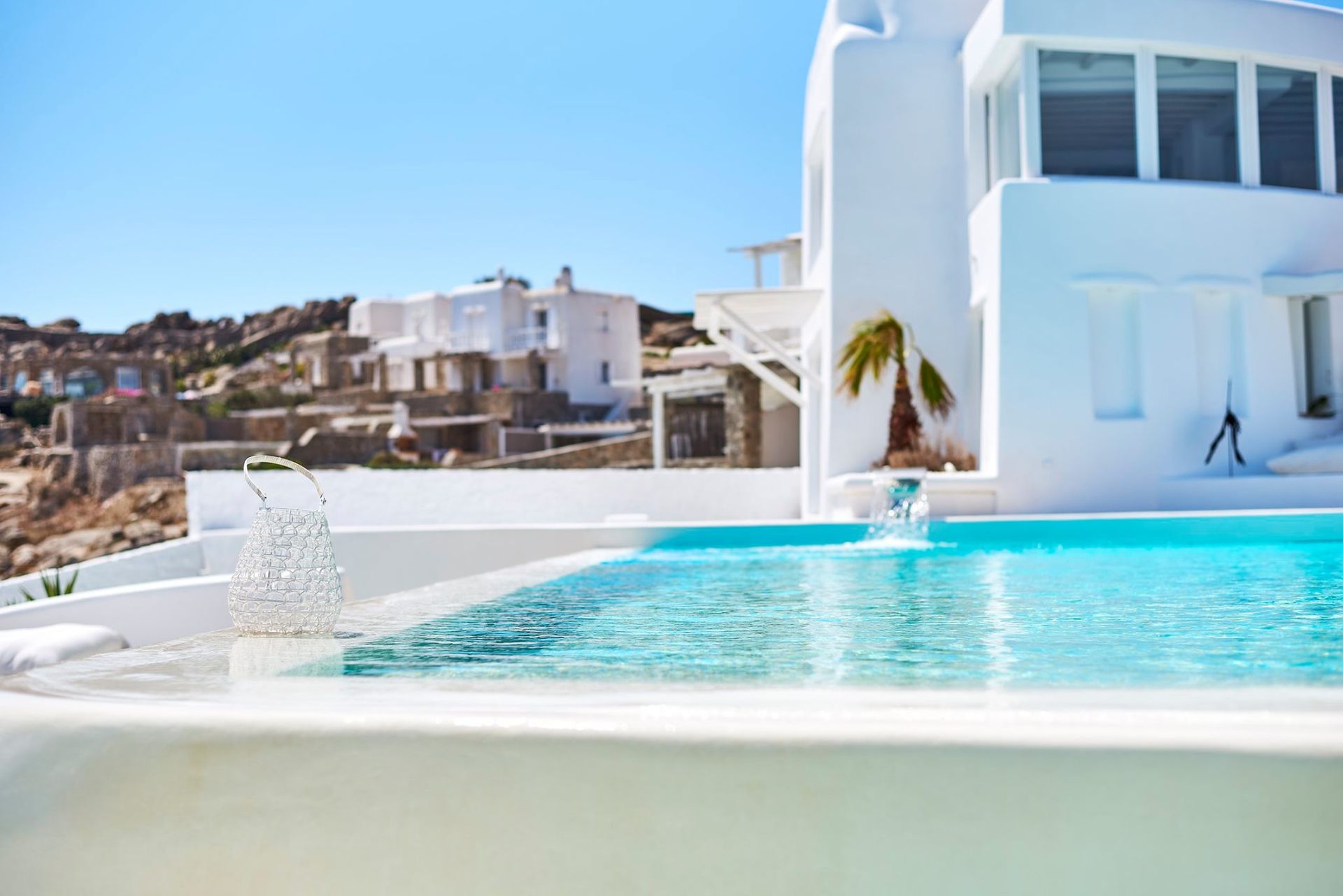 Villa Anantara (650 square meters) is located at Pouli area of Mykonos and it has a panoramic view of Mykonos Town, the port of Mykonos and Ornos.