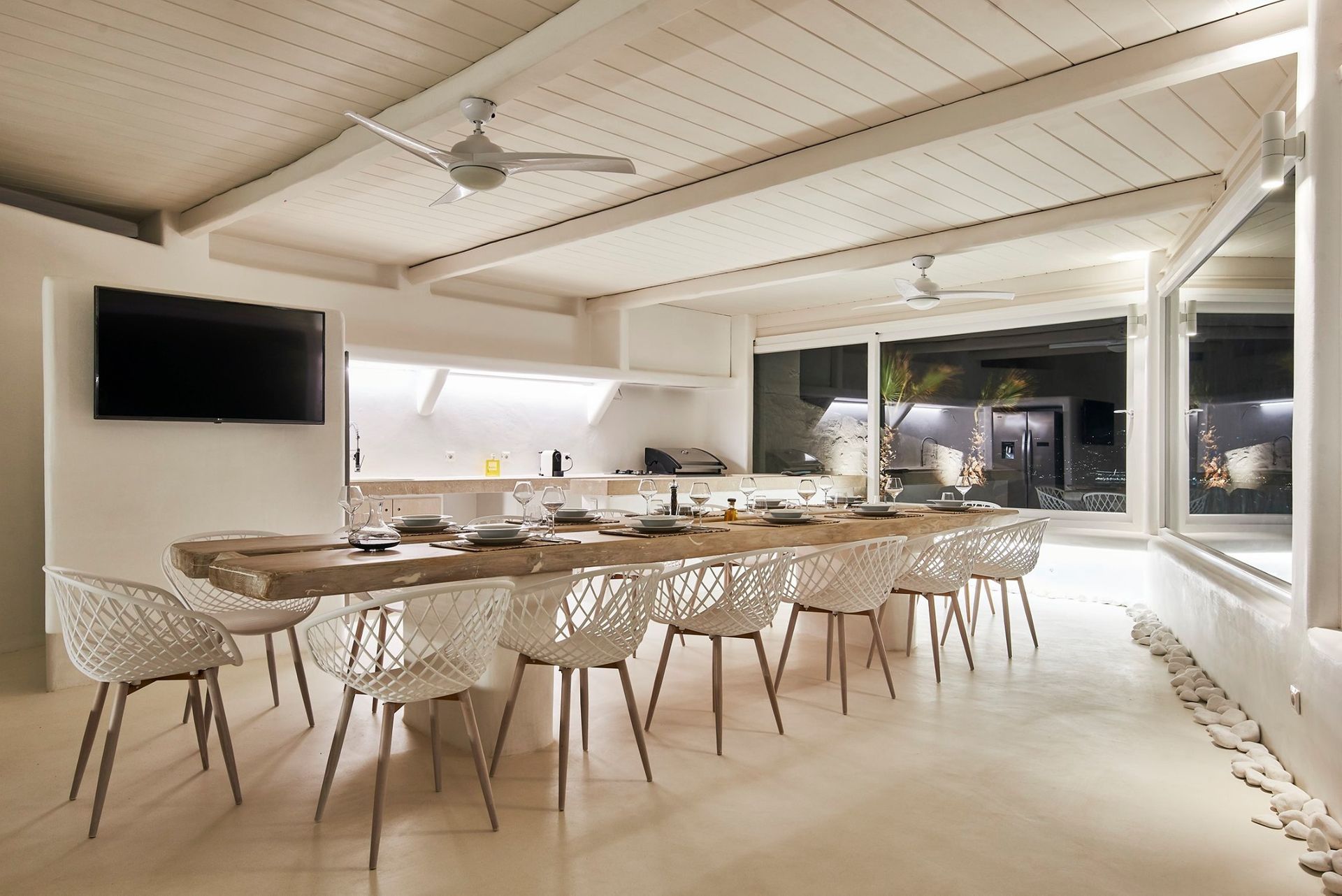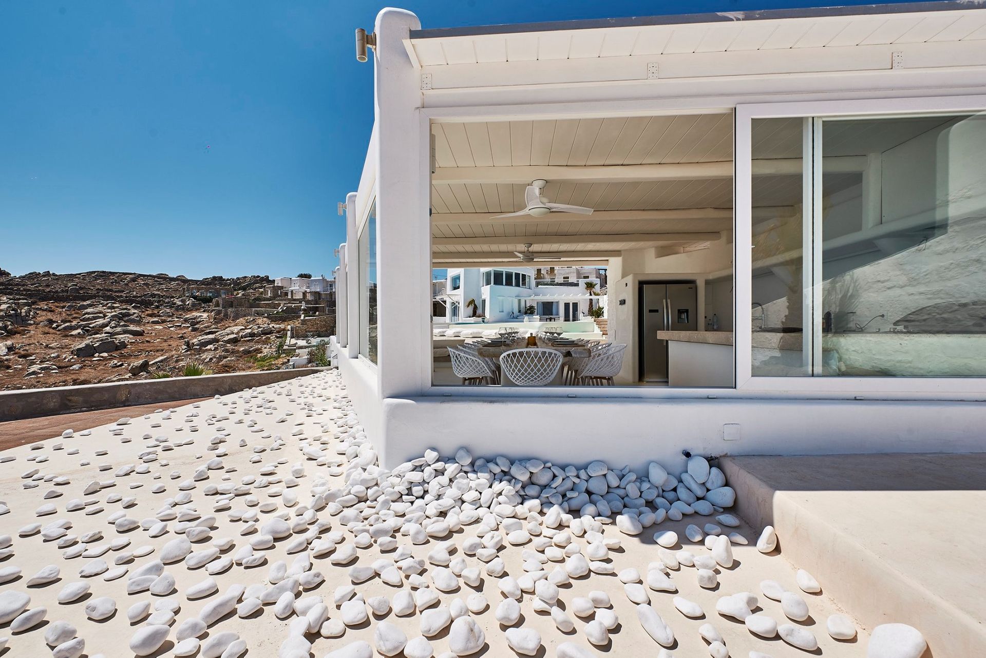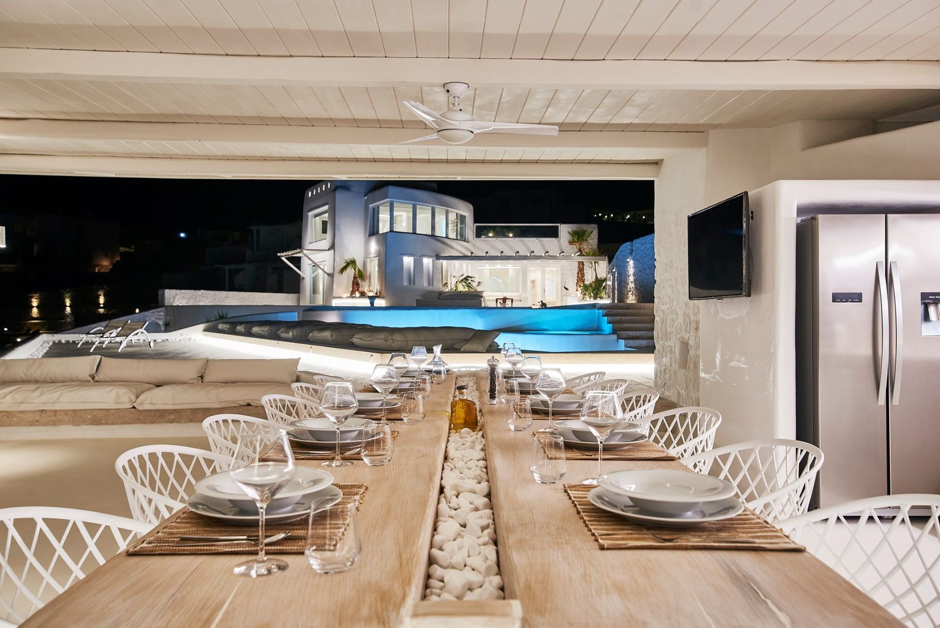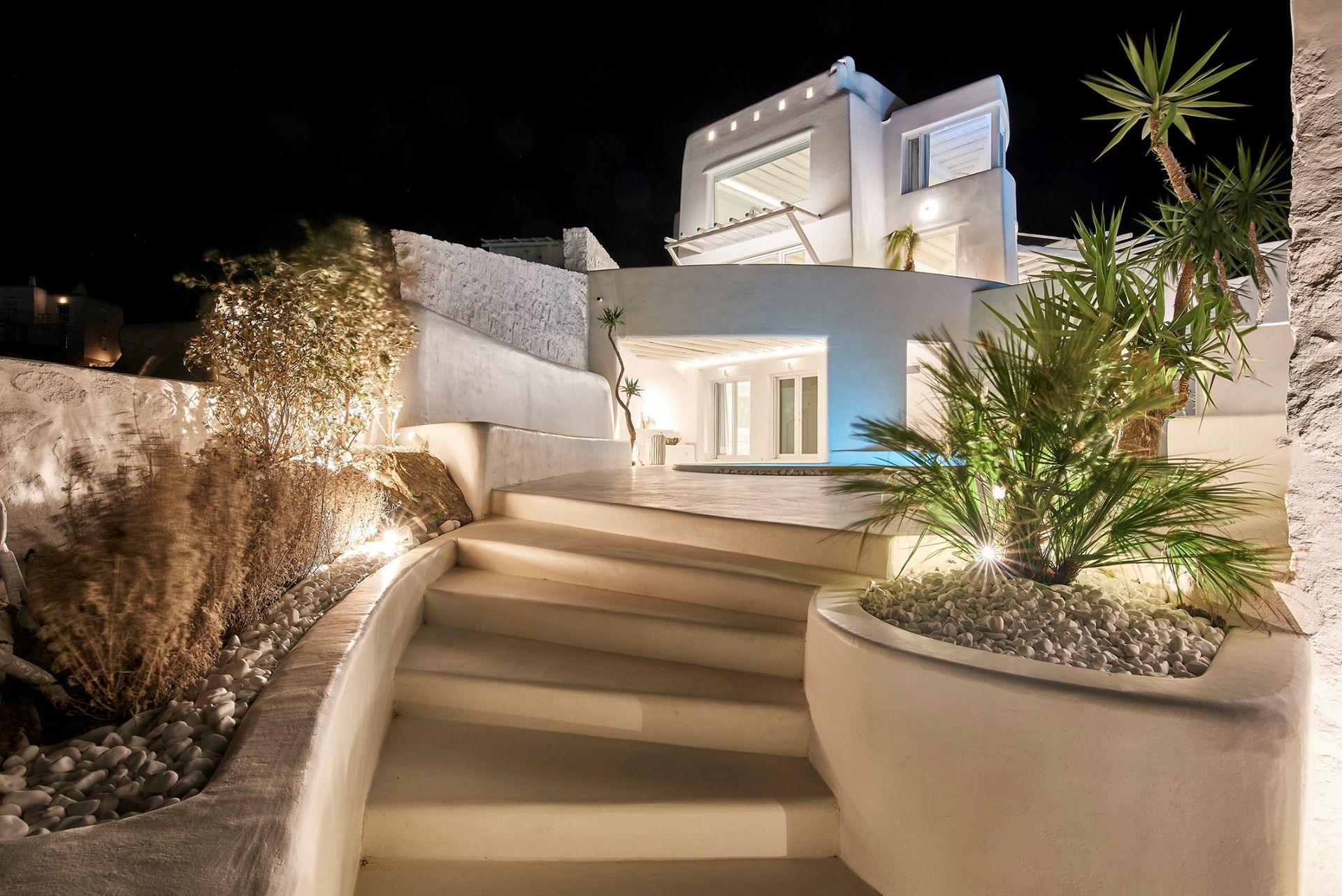 Villa Anantara (650 square meters) is located at Pouli area of Mykonos and it has a panoramic view of Mykonos Town, the port of Mykonos and Ornos.