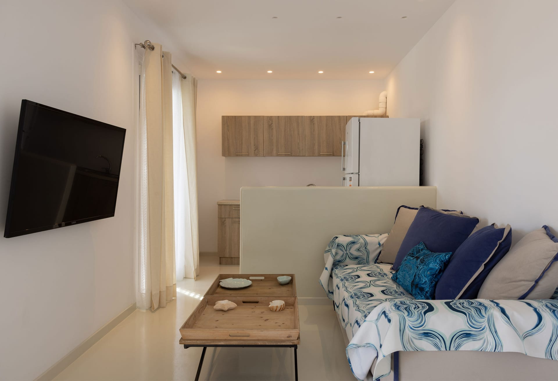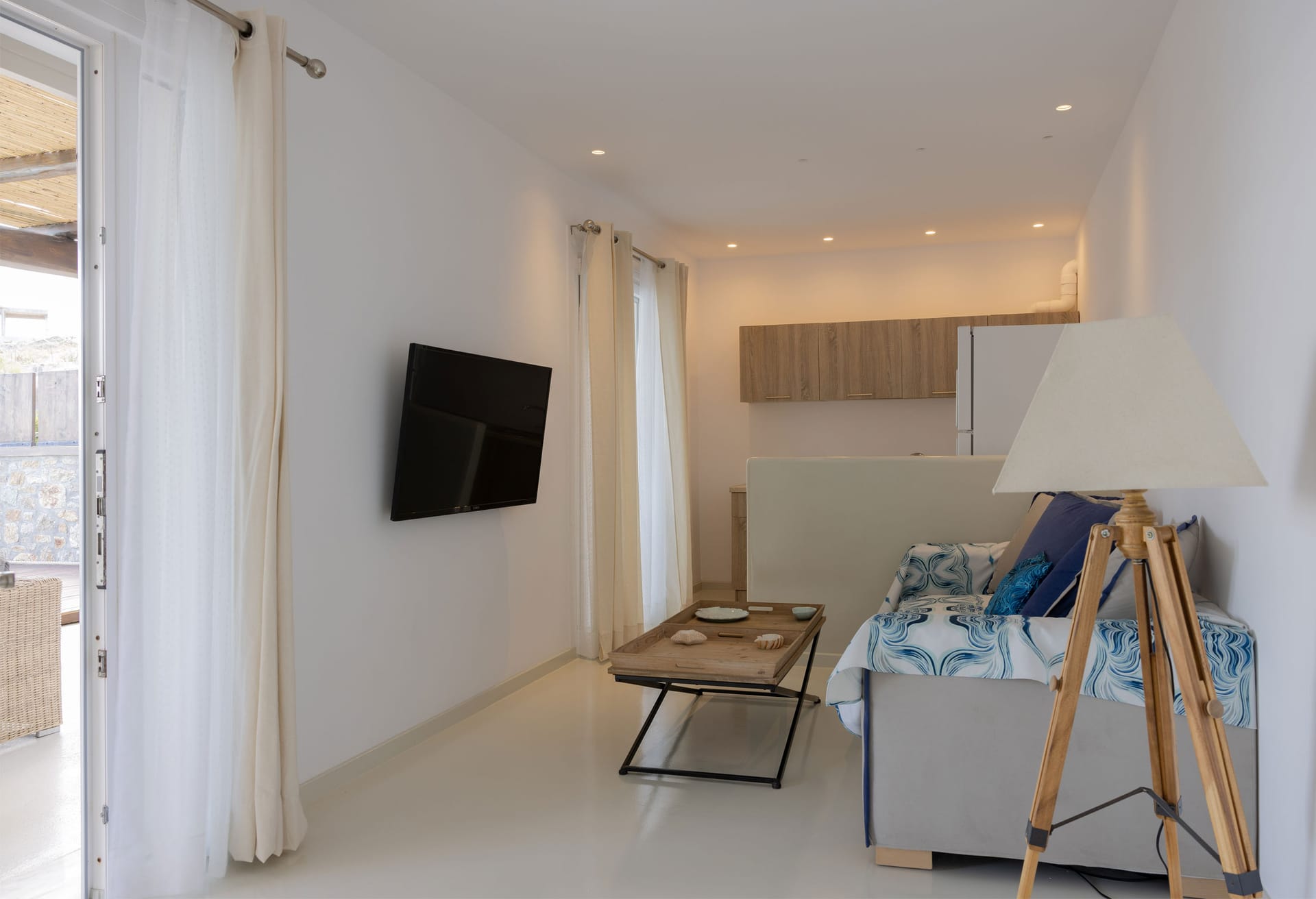 - 1 Bedroom with Double Bed (1,60x2) withen-suite open bathroom (shower), minifridge, sea view