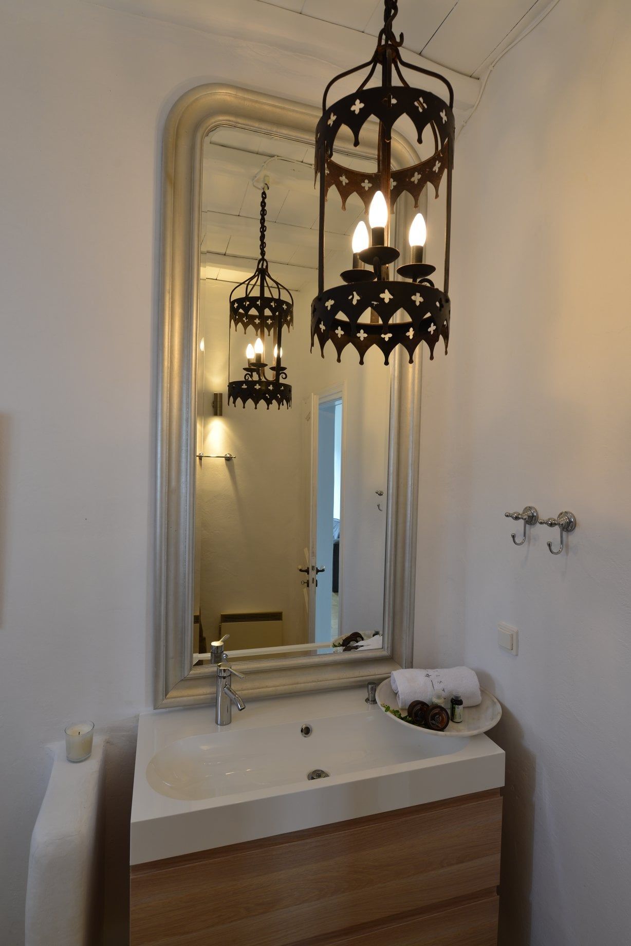 A small living room area with a comfortable sofa, one double bed and a cosy en suite bathroom composing the picture of the mystery room behind the main house with its own veranda. The secret guest suite can accommodate up to 2 guests.