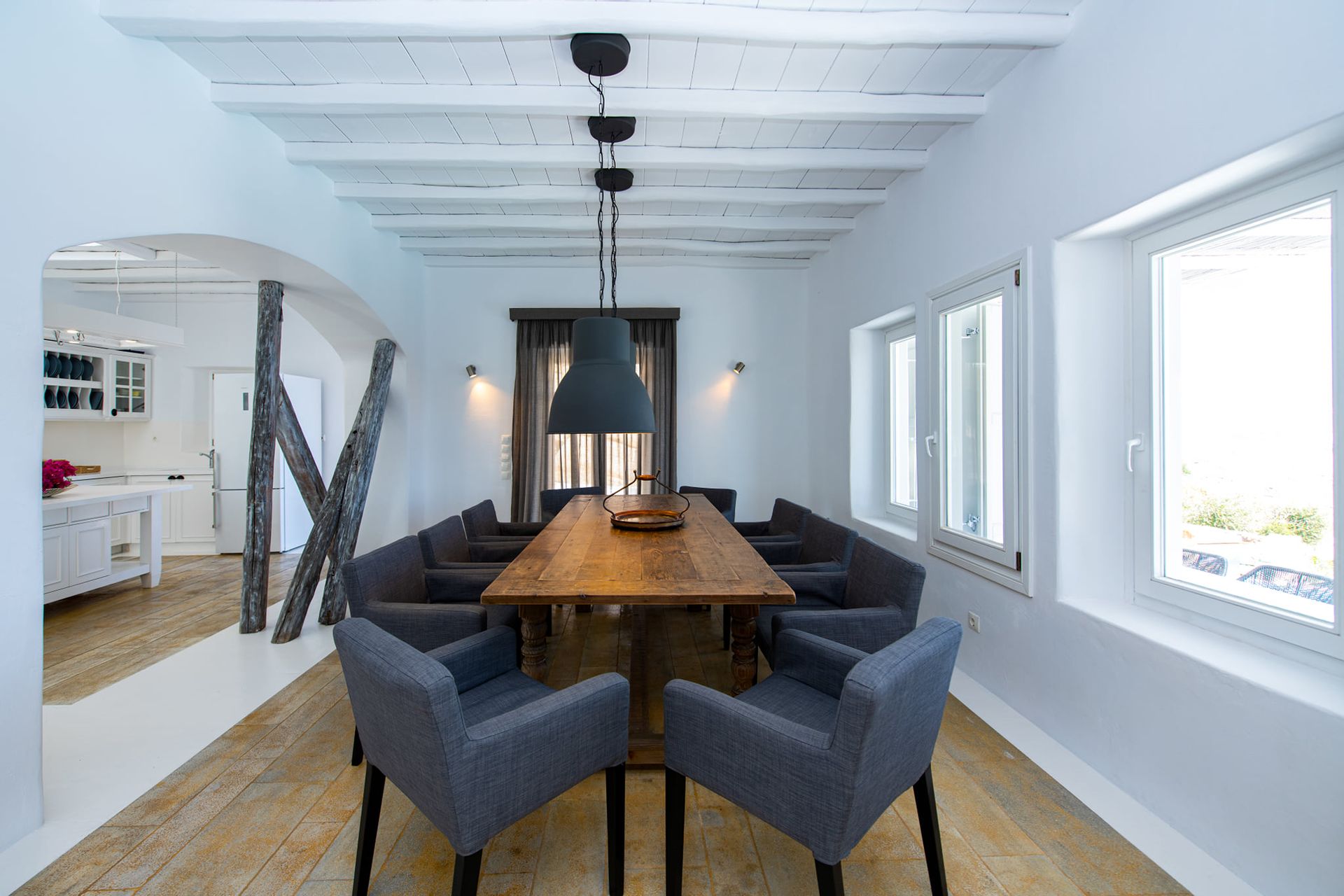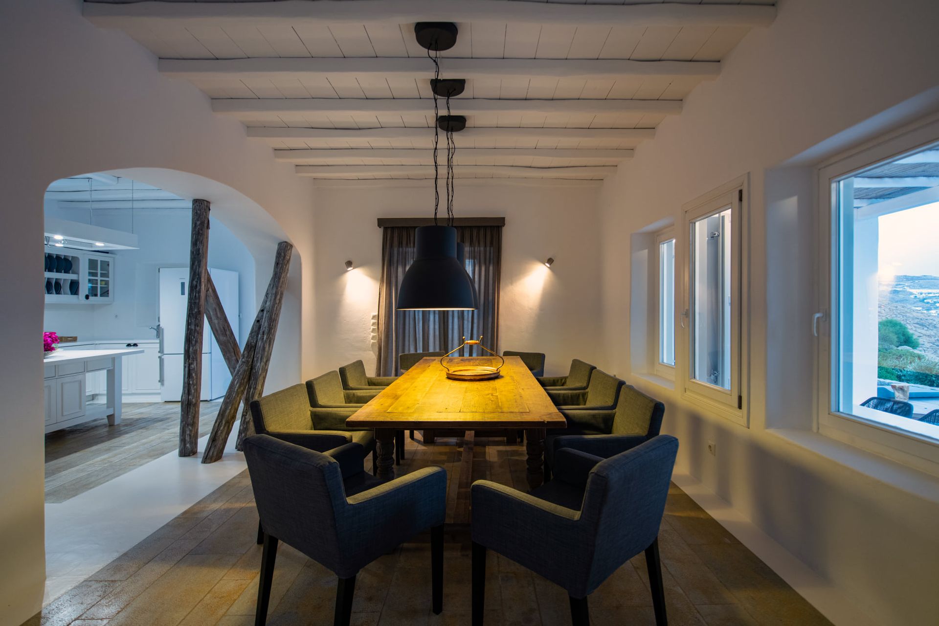 The amazing sea view will dominate your vision while enjoying your meal. Four boles separate the dining area from the perfectly equipped kitchen.