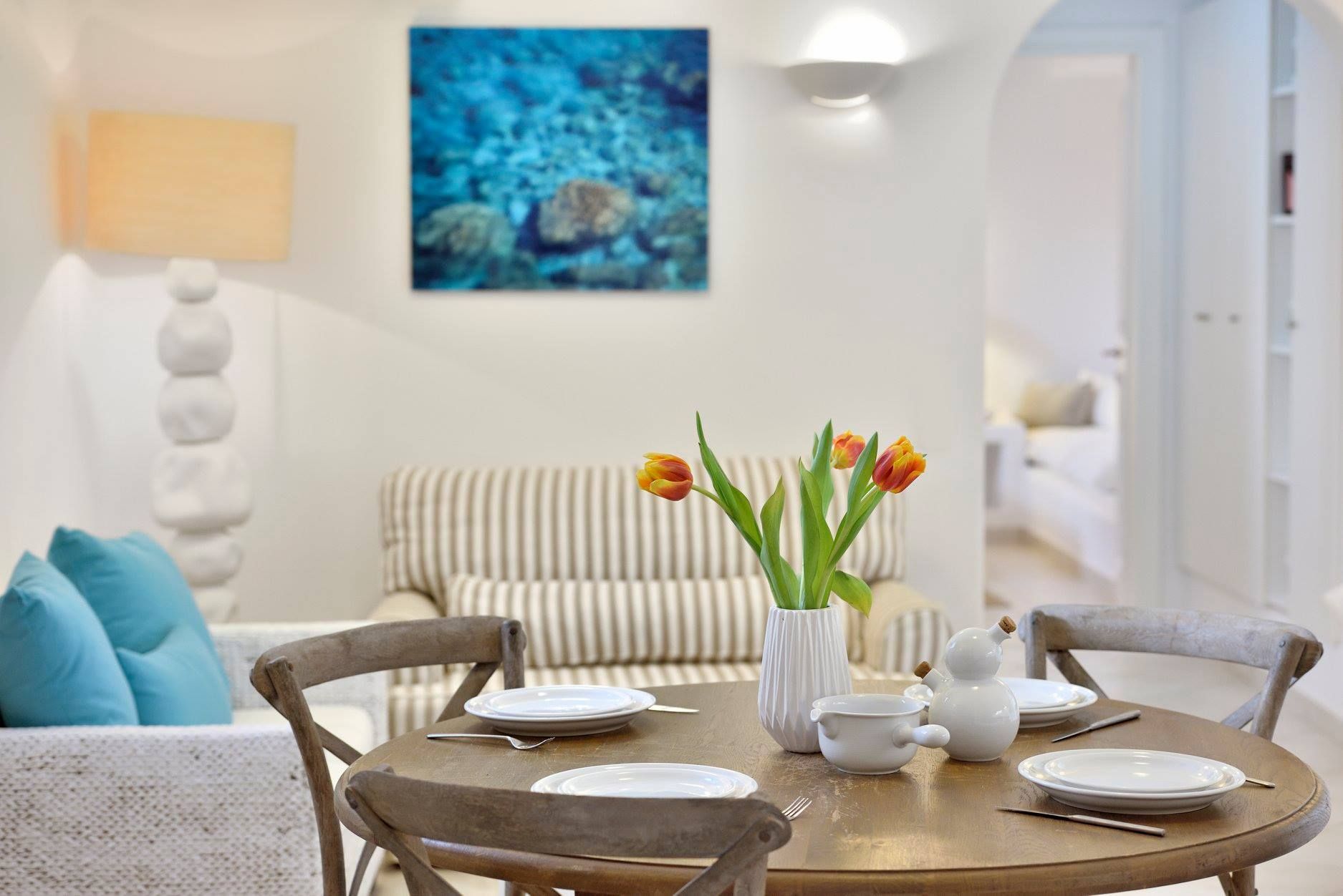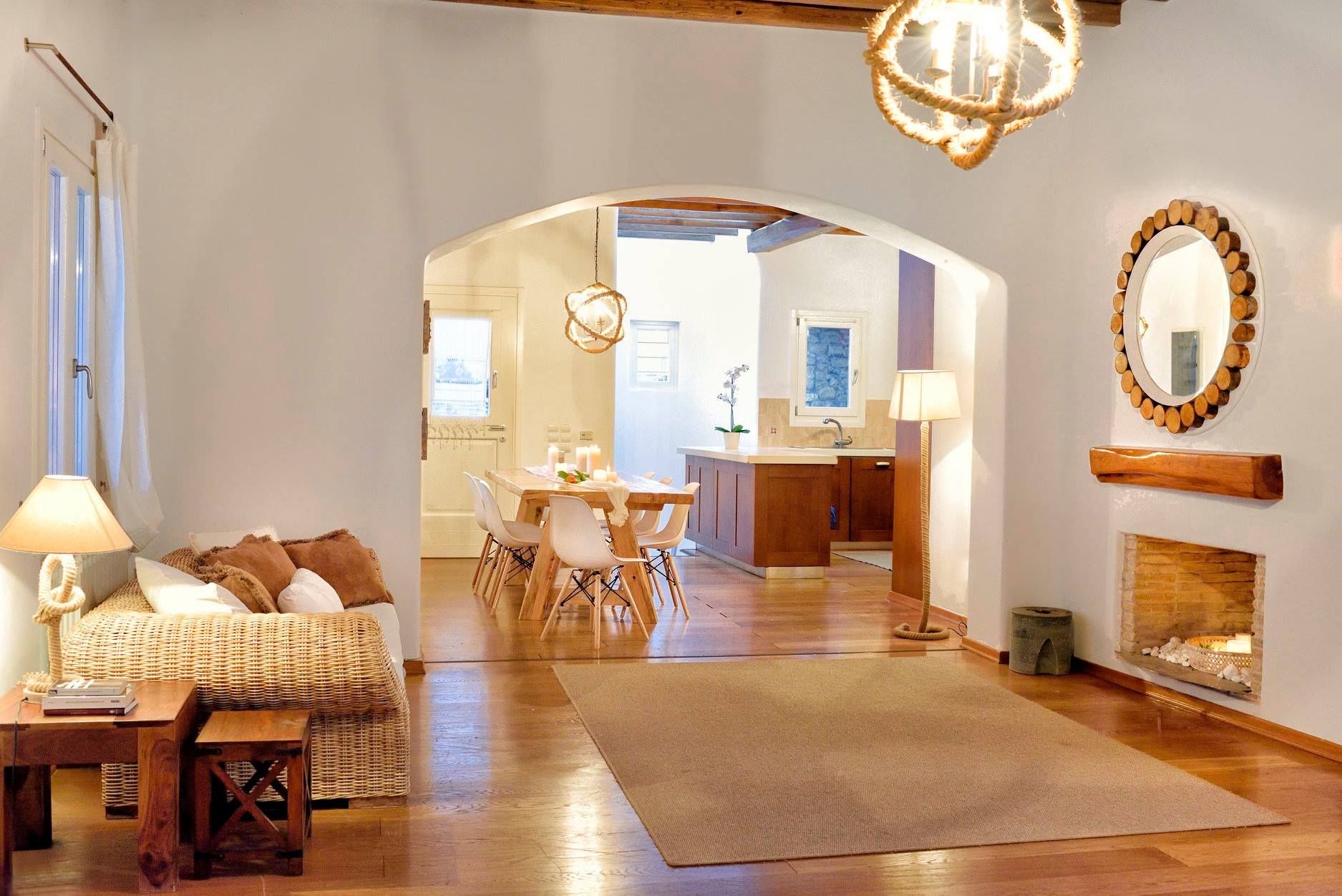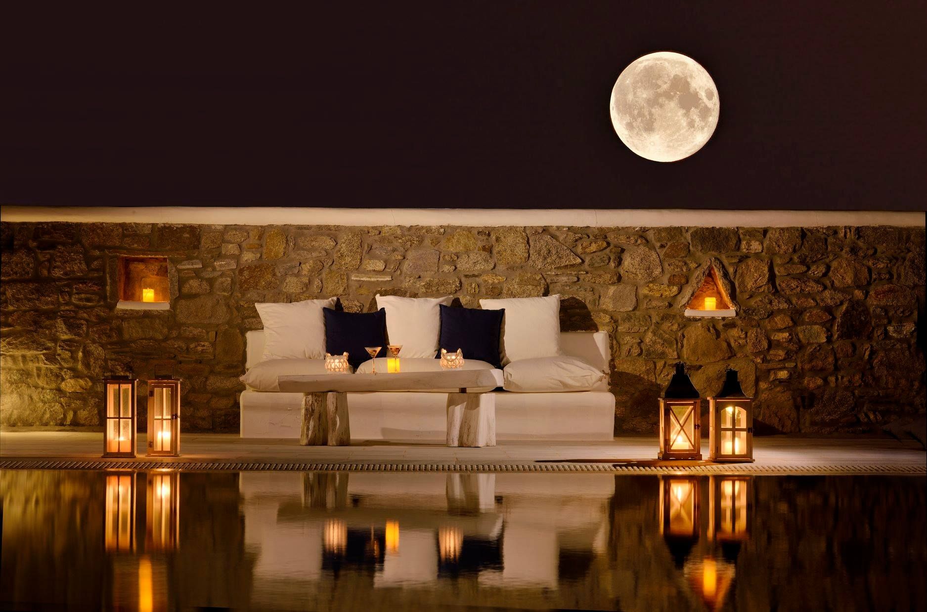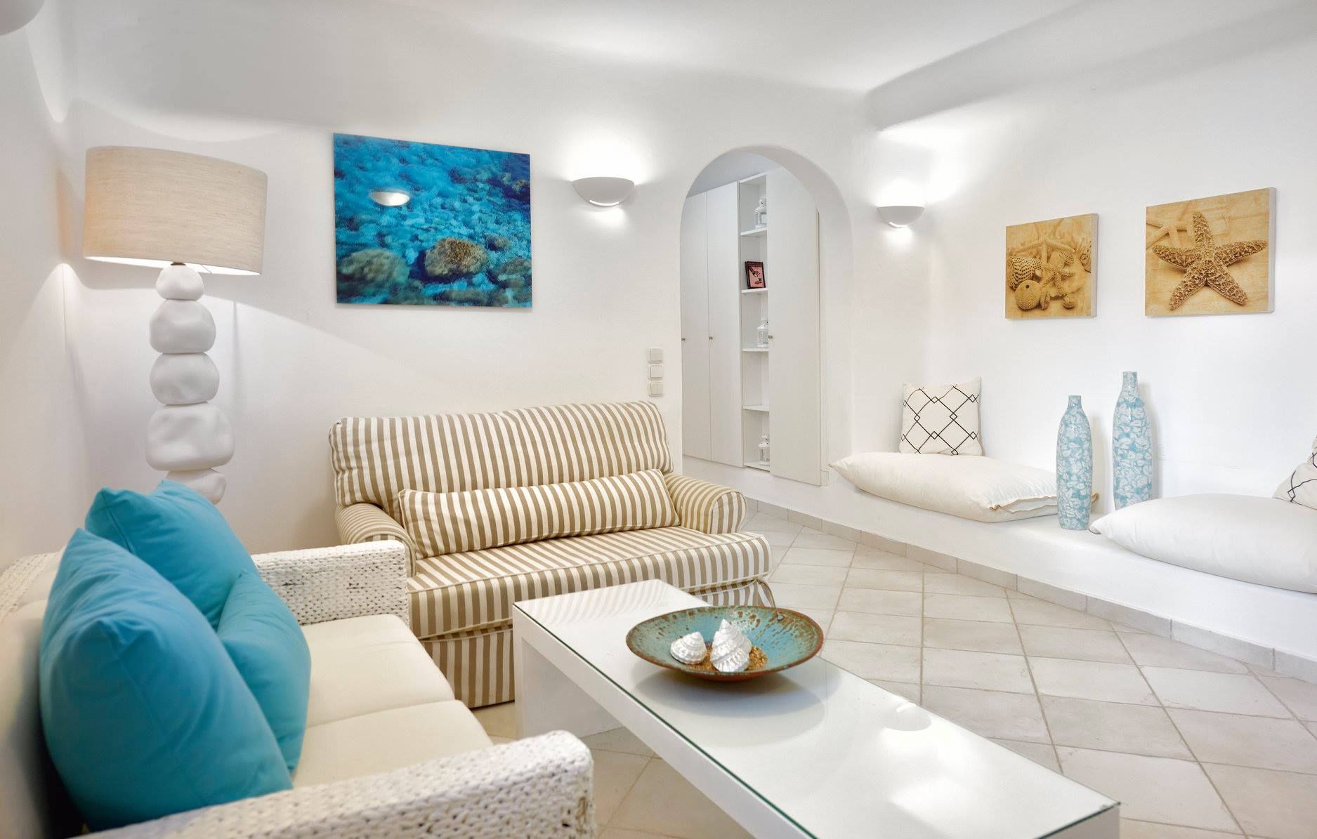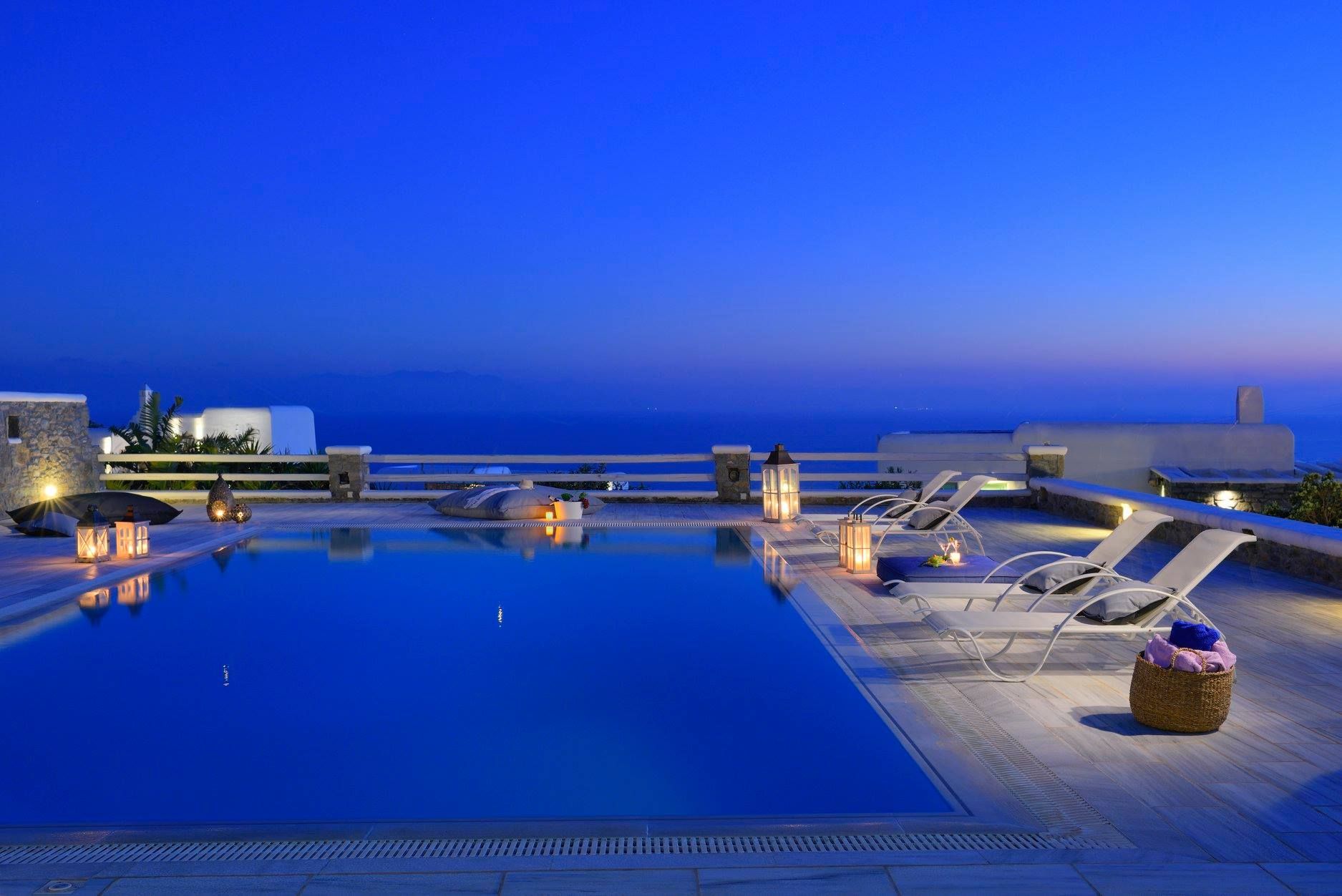 Tasteful furnishings and fabrics dress the villa in a simple yet elegant décor, rendering it relaxing on the eyes and the senses alike. The villa harbours 6 bedrooms and can accommodate up to 12 people, while providing all the amenities one could ever need. It’s the ideal villa for those who crave a getaway, but also desire proximity to the legendary Mykonian action as well as Mykonos airport. The world-renowned Super Paradise beach is but a 10-minute walk away, as are a series of lively bars and restaurants including: Super Paradise Club, Jackie’o, and Pinky Beach... within a 2-minute car ride.