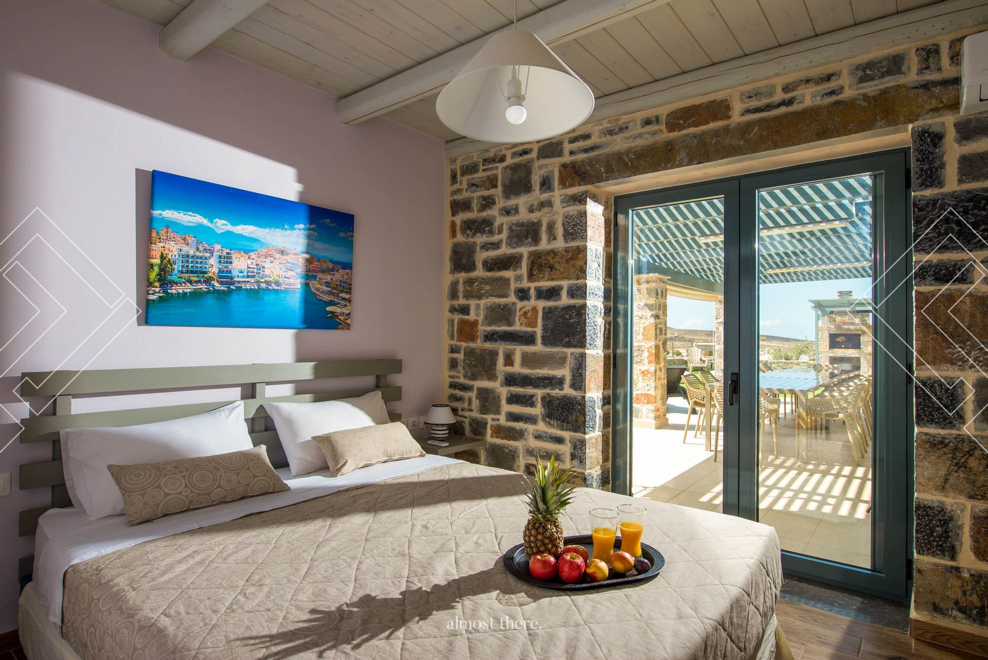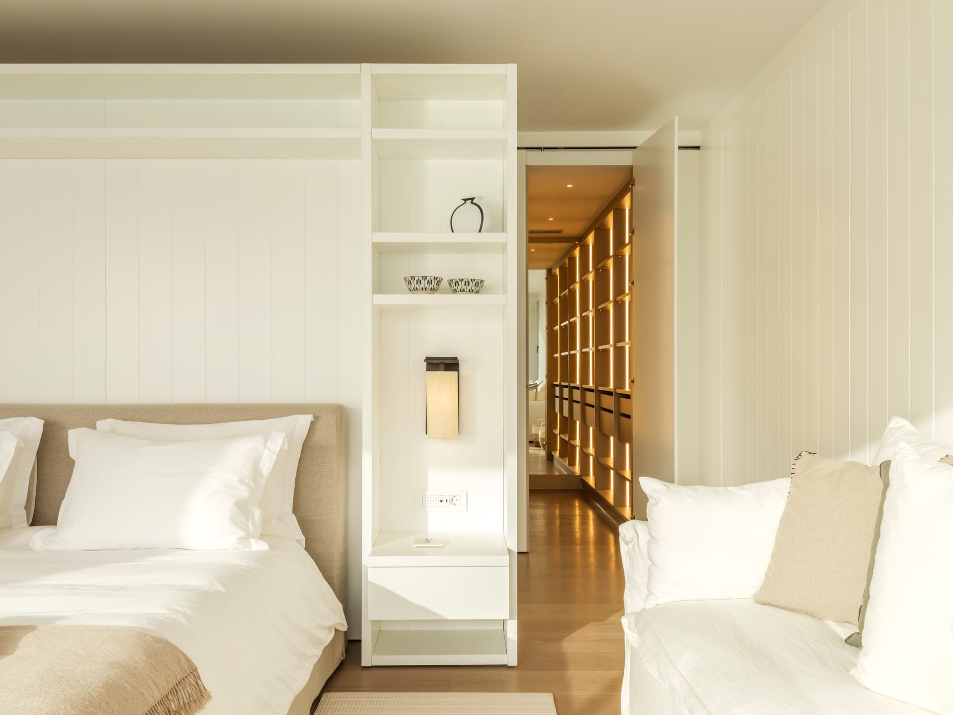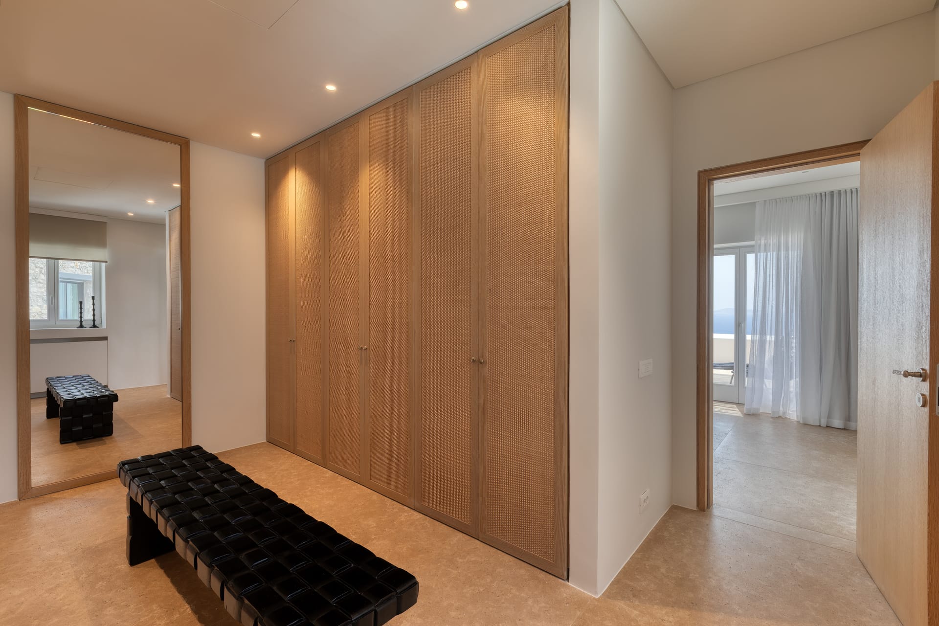 Eight en suite spacious bedrooms featuring a variety of sophisticated furniture, lighting and organic textiles and linens. The villa's eight en-suite bedrooms are sanctuaries of tranquility, each one brimming with abundant space, bright natural light, and a breeze of fresh air. Artfully curated furnishings lend a refined touch to each room, while thoughtful lighting creates a serene, inviting ambiance. Each room extends to a private veranda, offering a secluded spot for guests to unwind while soaking in the breathtaking vistas. Further enhancing its appeal, Villa Silvy offers a private guesthouse featuring two en-suite bedrooms, a kitchenette, and a lounge area, all accessed through an independent entrance.
