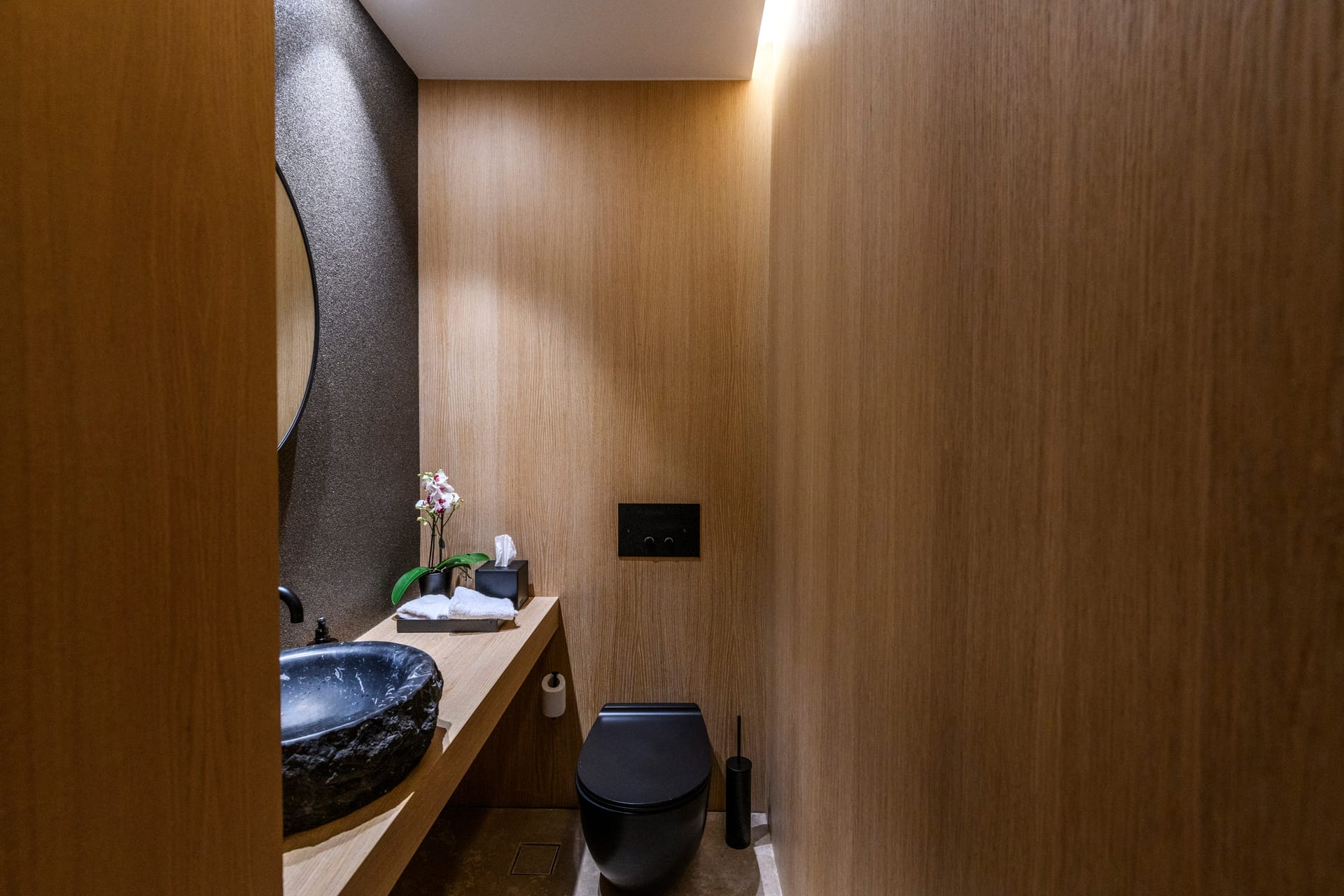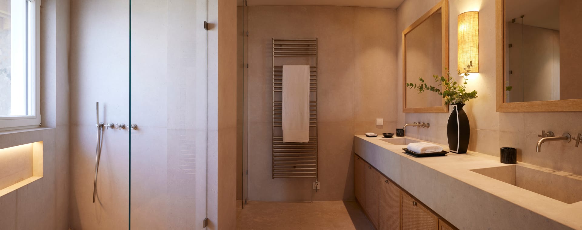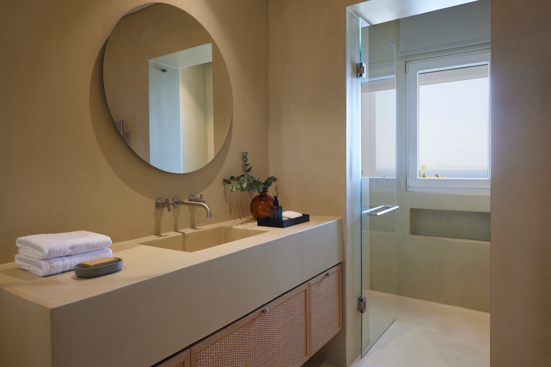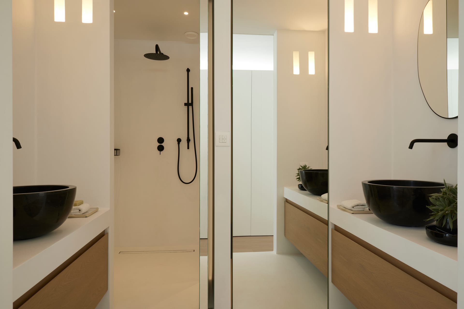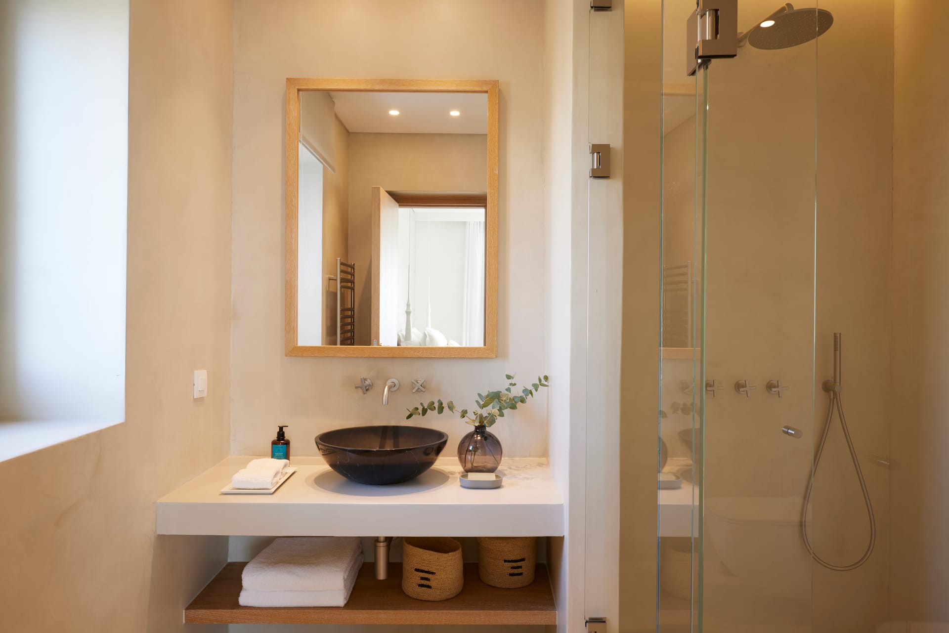 Each bathroom is a sanctuary of relaxation, meticulously designed to offer a spa-like experience within the comfort of your villa. Luxurious marble surfaces elegantly contrast with warm tones and bespoke fittings, creating an atmosphere of tranquil indulgence. Each bathroom is a testament to refined luxury, promising a soothing and serene space for your personal retreat.