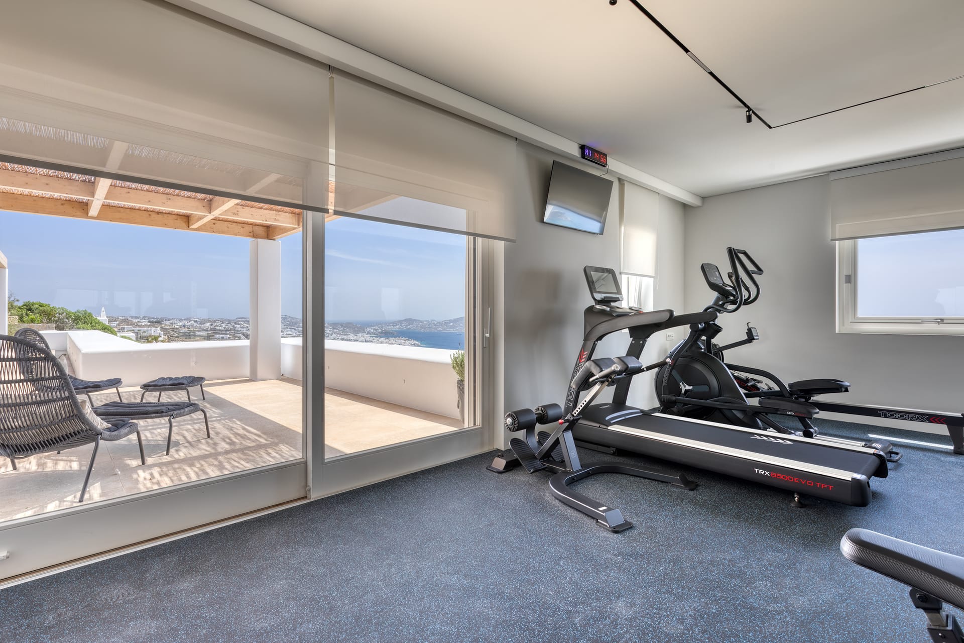 The fitness suite at Villa Silvy is a state-of-the-art facility featuring panoramic views that serve as a breathtaking backdrop to your workouts. Equipped with cutting-edge fitness equipment including treadmills, elliptical machines, rower trainers, Powersmith BH Fitness, leg press, TRX, free weights, benches, squat stands, slam balls, battle ropes, foam rollers, and mats, it offers an extensive selection for every exercise enthusiast. High-end brands like Toorx, Bosu, Bodytone, Theraband, and TRX ensure top-tier quality, elevating your fitness journey in the most luxurious setting.