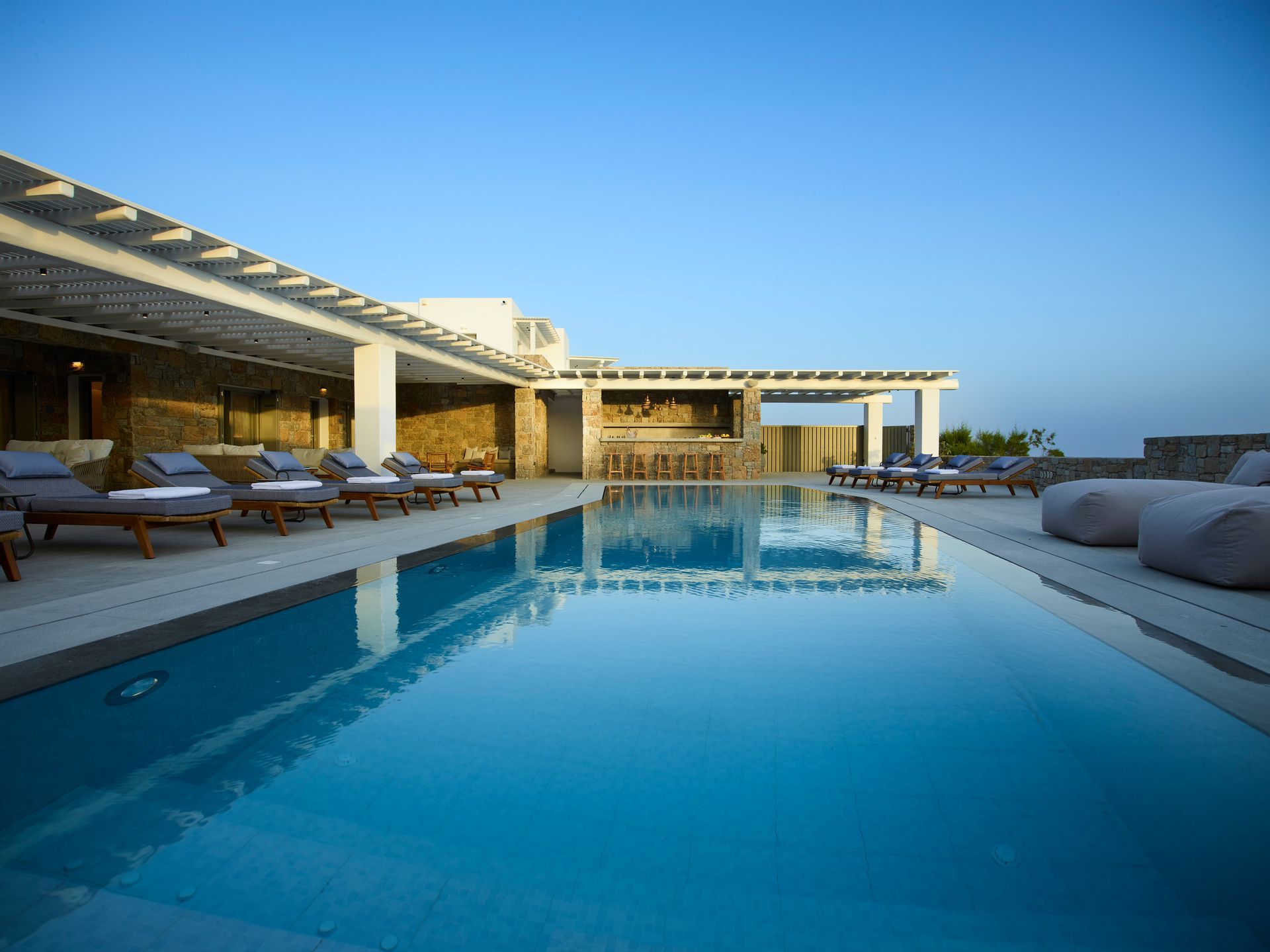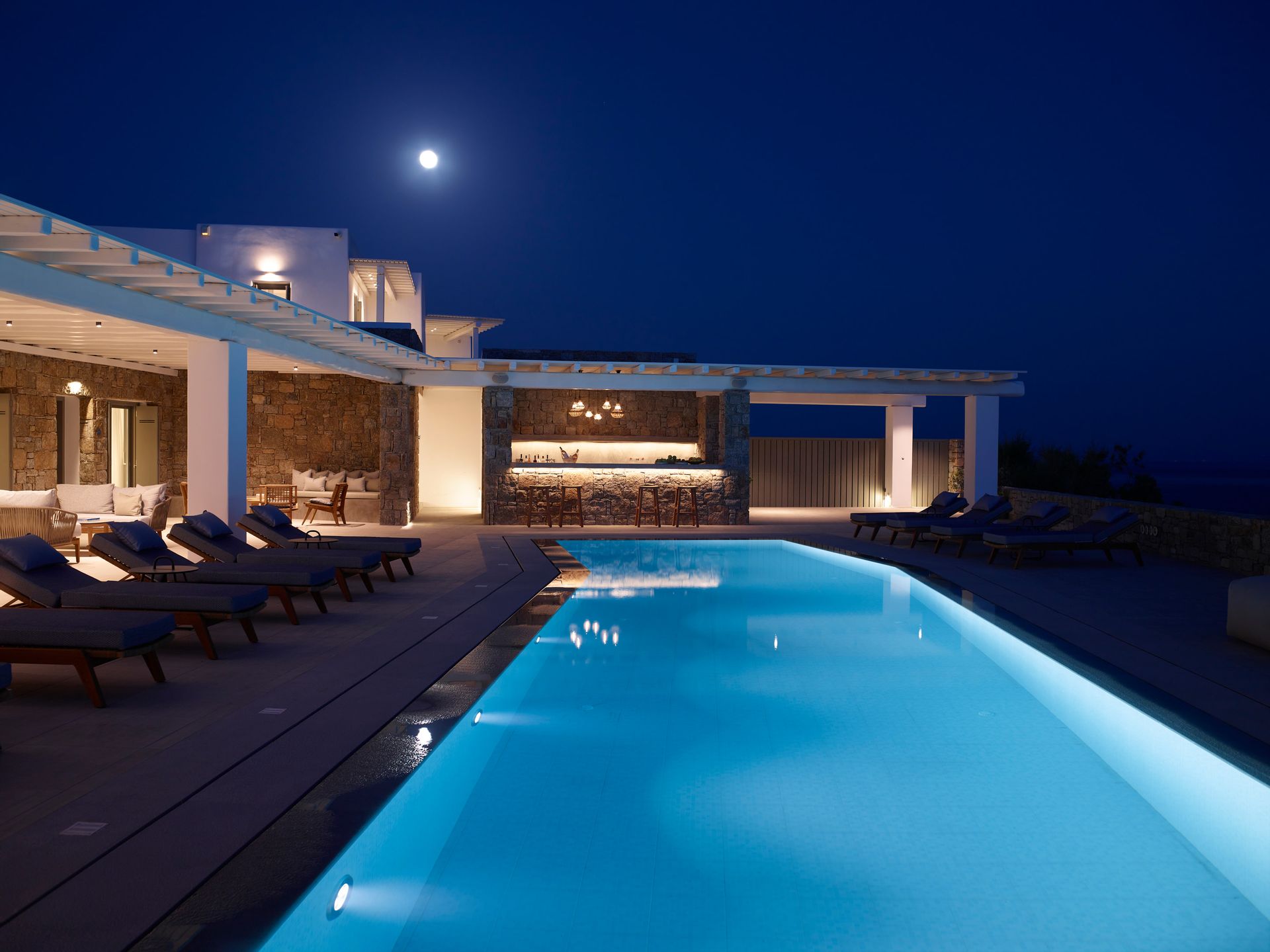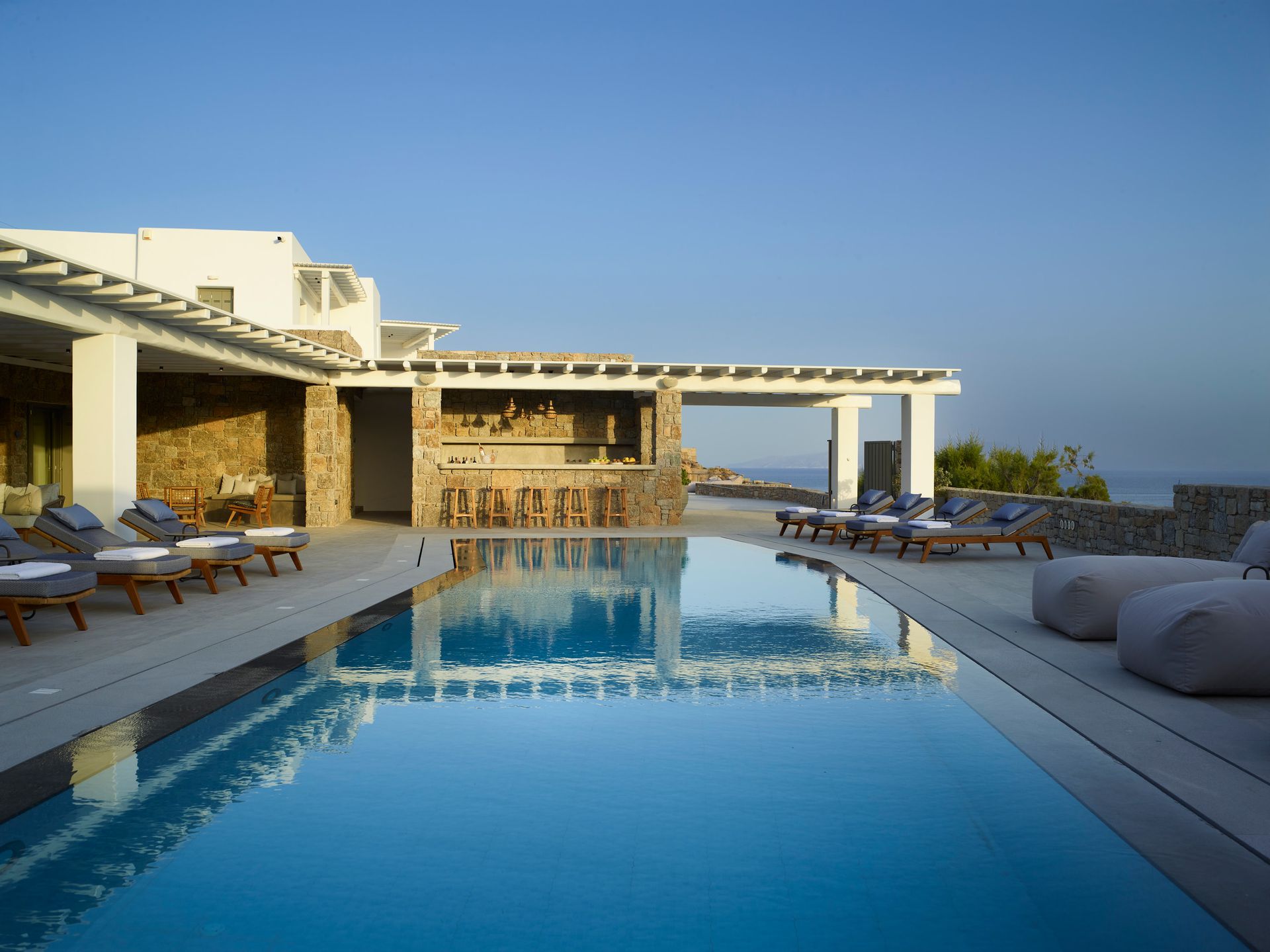 Having the pool to yourself is appealing. The Villa blends in perfectly with the Greek carefree holiday mood, allowing everybody to create unforgettable and blissful memories. The Villa is created to be bold, daring, and artistically creative, and at the same time are whimsical and romantic or uber-cool and hip. From a hideaway idyll to a coastal fantasy, each has its own character.