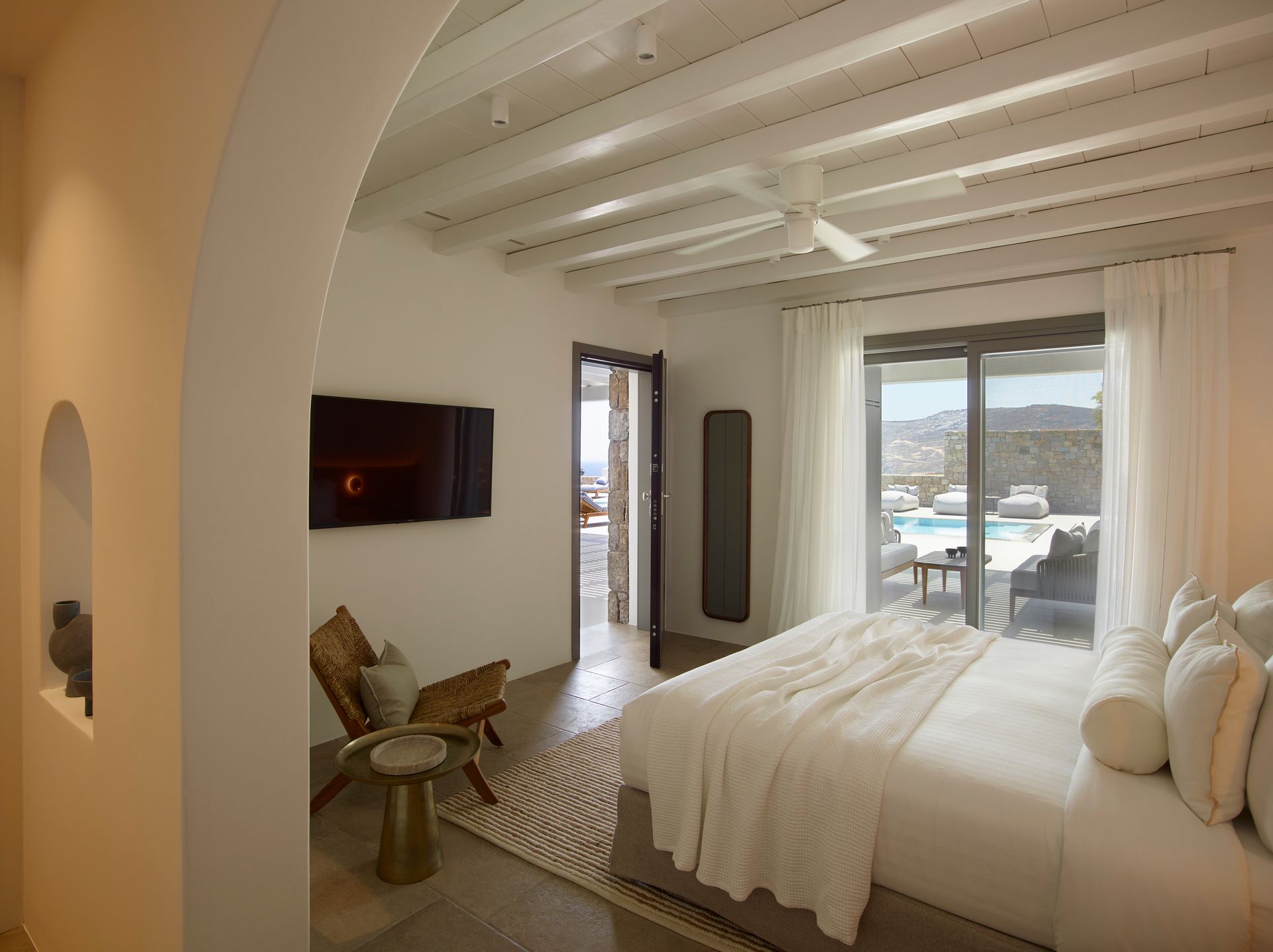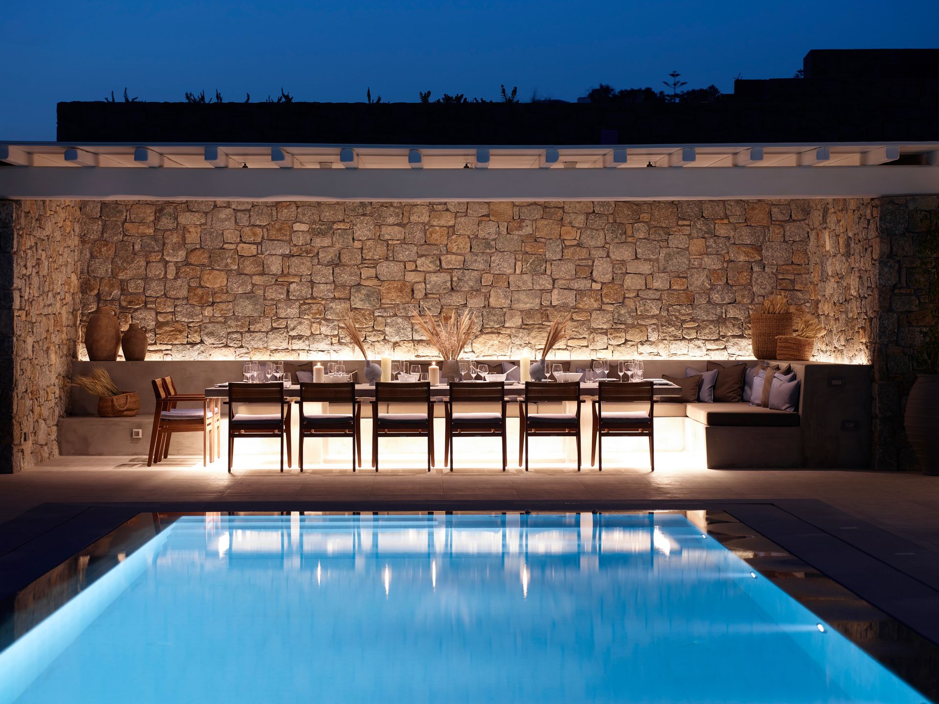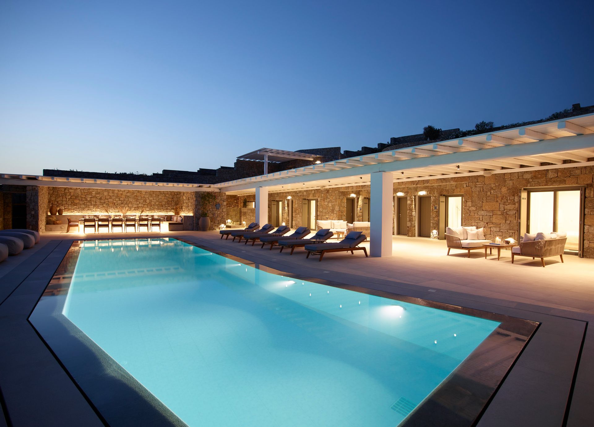 Having the pool to yourself is appealing. The Villa blends in perfectly with the Greek carefree holiday mood, allowing everybody to create unforgettable and blissful memories. The Villa is created to be bold, daring, and artistically creative, and at the same time are whimsical and romantic or uber-cool and hip. From a hideaway idyll to a coastal fantasy, each has its own character.