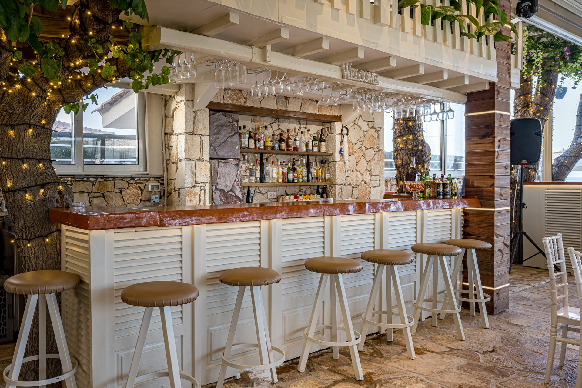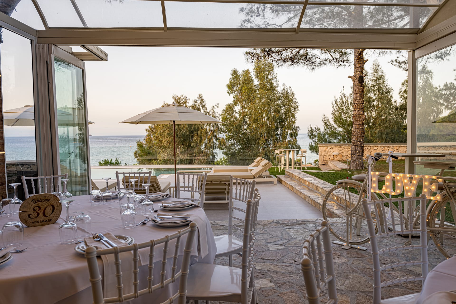 - Fully equipped kitchen with full set of kitchen appliances, gas cooker for tasty breakfast preparation, serving the breakfast large shaded area designed to all face towards the sea, so guests can admire the sea view while enjoying Greek delicacies, equipped with large breakfast tables with access to 40 guests.