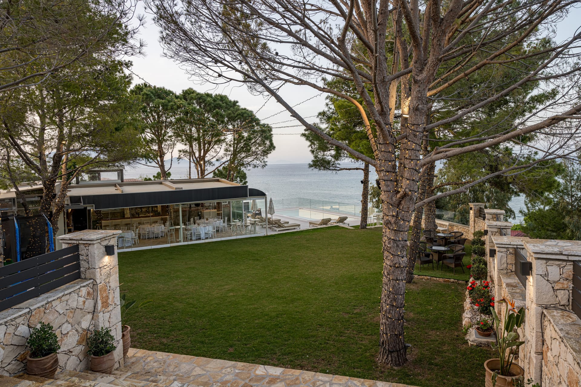 This spacious summerhouse is decorated in harmonic shades and features, sleeps 36 guests and offers a selection of versatile living spaces for easy entertaining and uncomplicated holidaying. Enjoy a good night’s sleep on a Simmons mattress, relax at the soft touches of elegant sophistication and Greek colors sofas and the view from the bedrooms. Every bedroom and living room is equipped with 50 inches smart TV, hairdryer, safe box, ceiling fan and A/C, so that each member can be independent.