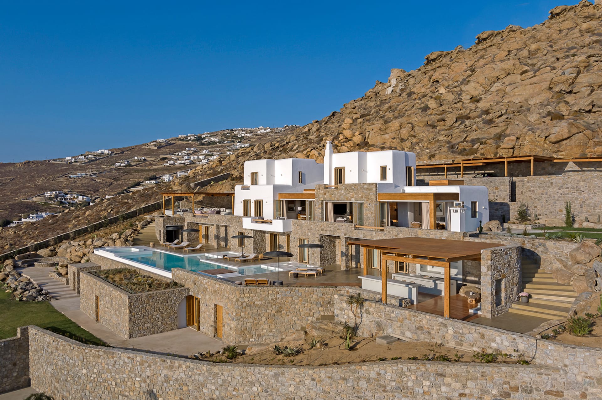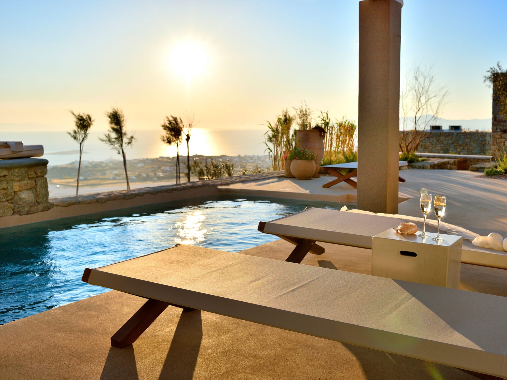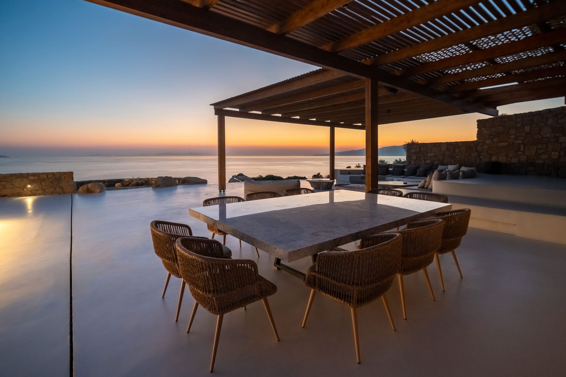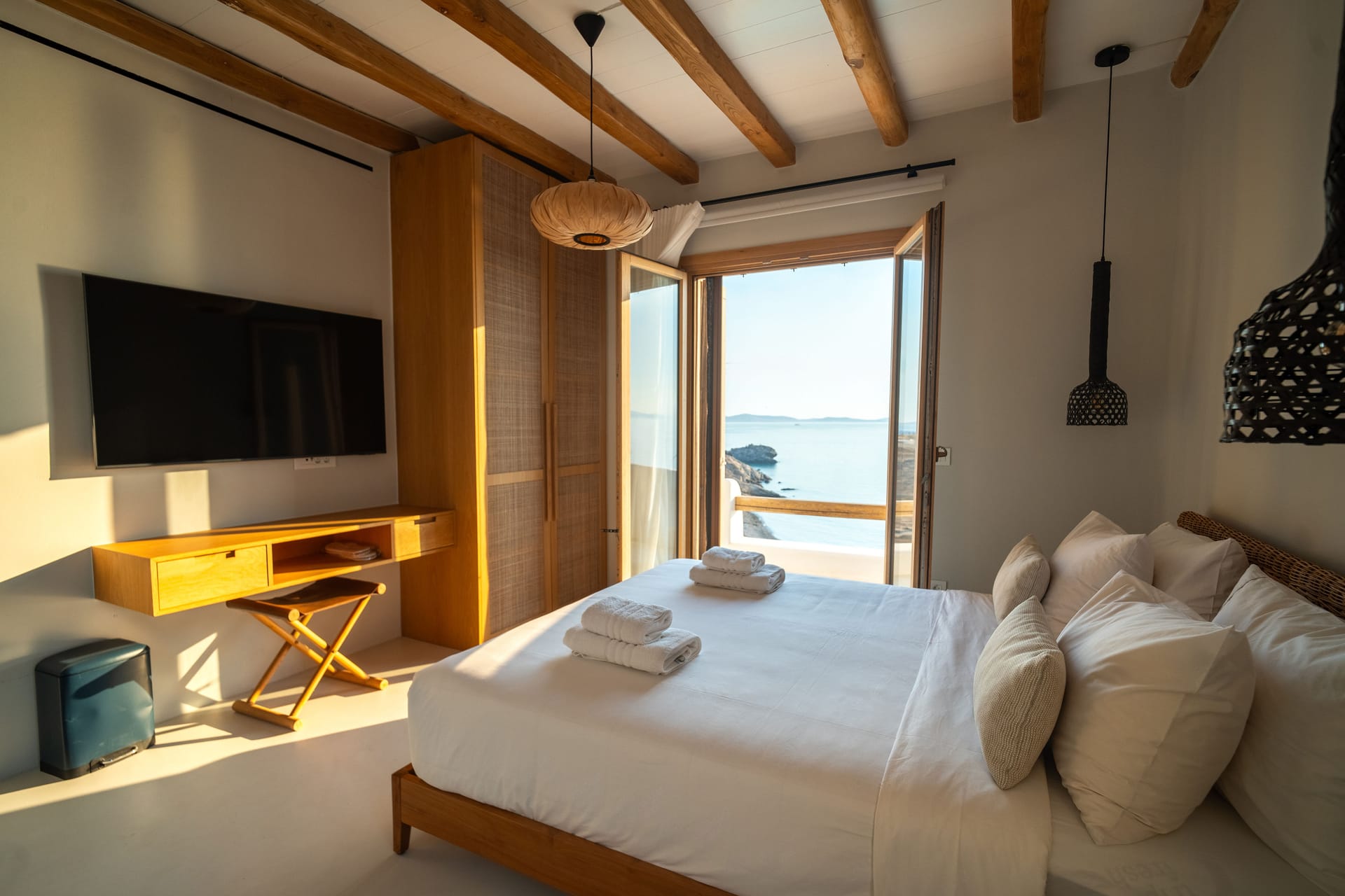 The villa features nine elegantly appointed en-suite bedrooms, each with sweeping views of the Aegean, ensuring every guest enjoys a private and serene sanctuary. Two sunset bars and an elevated yoga platform provide scenic spaces for both celebration and peaceful reflection.