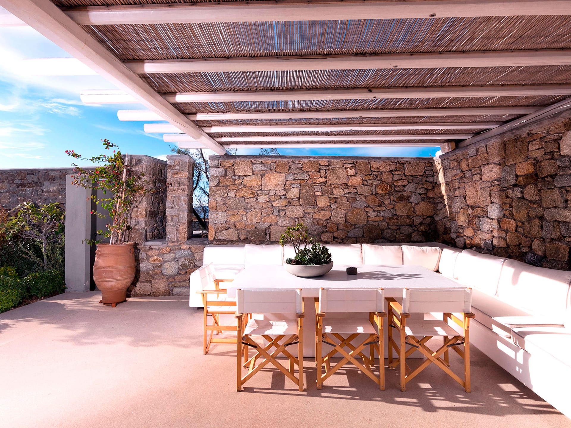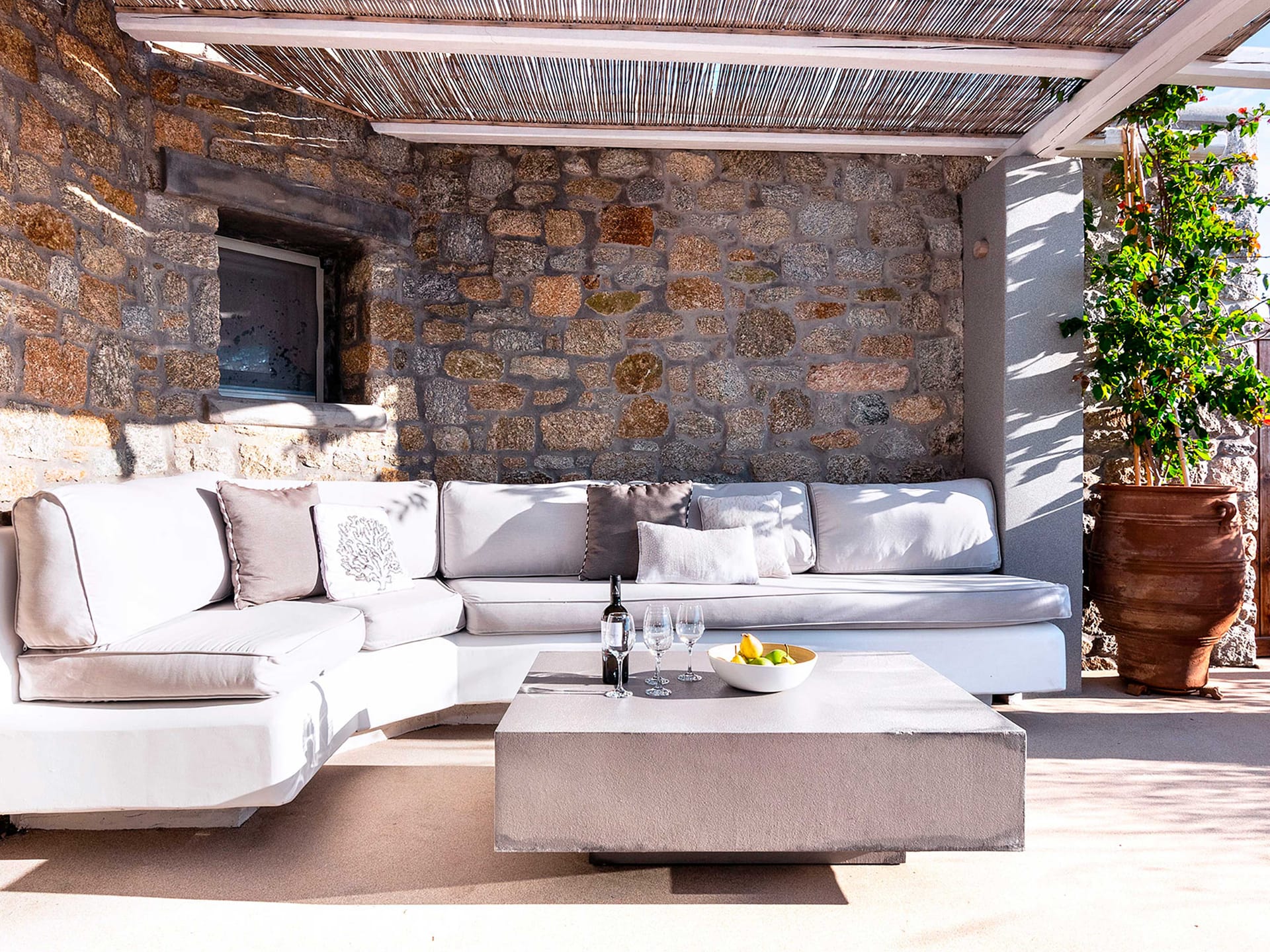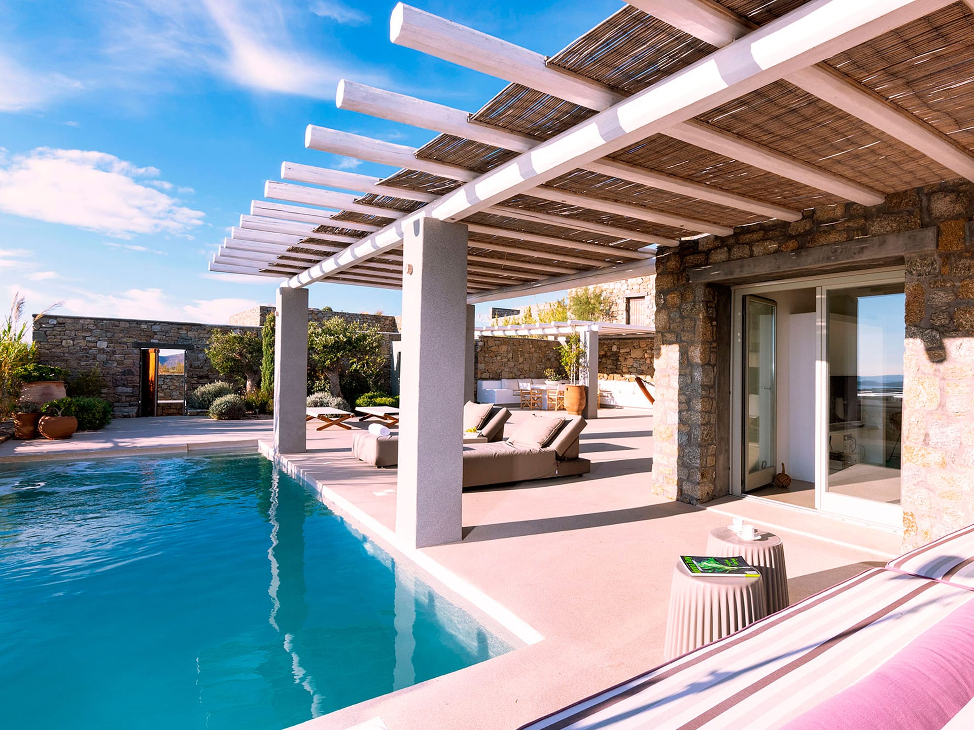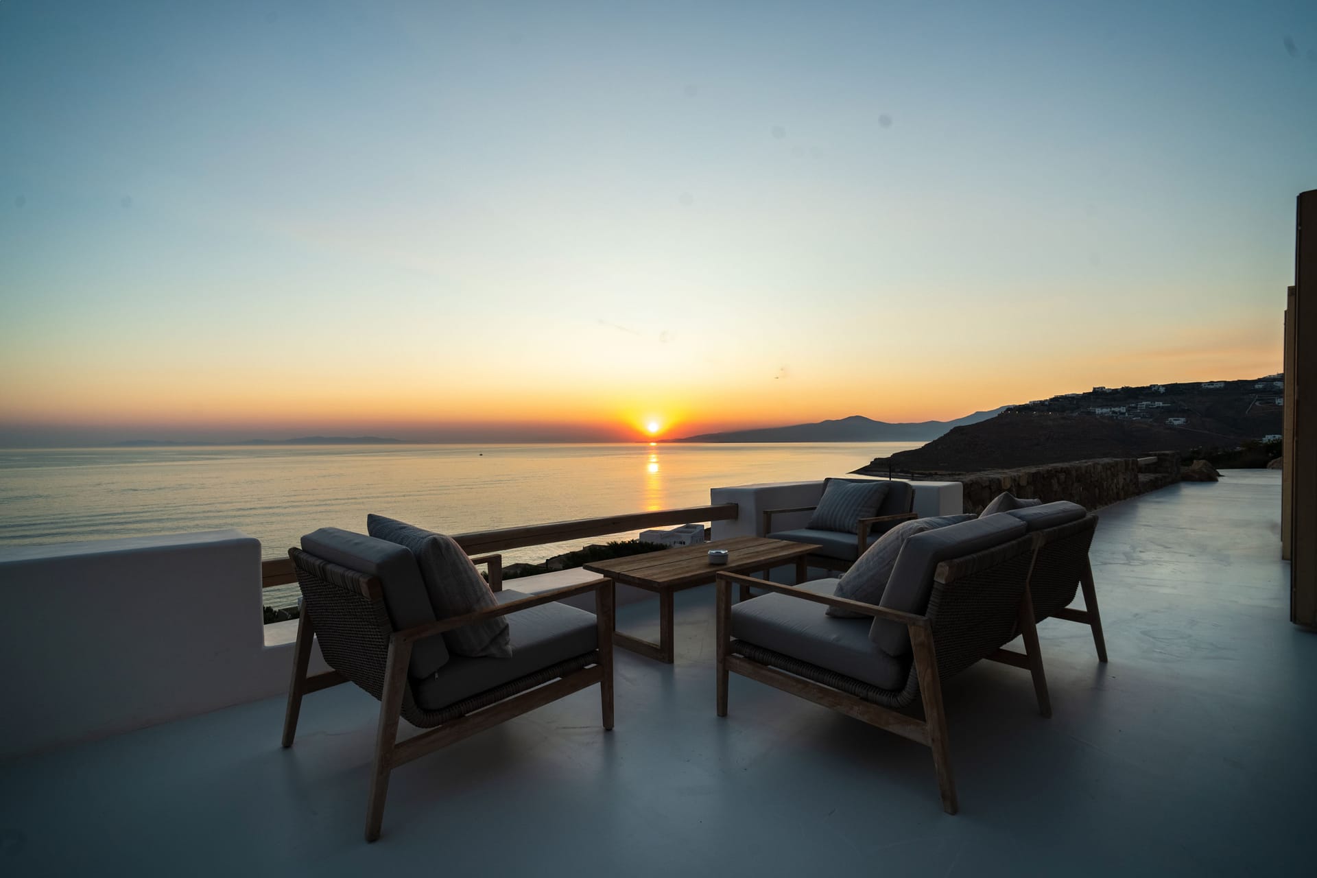 The villa features nine elegantly appointed en-suite bedrooms, each with sweeping views of the Aegean, ensuring every guest enjoys a private and serene sanctuary. Two sunset bars and an elevated yoga platform provide scenic spaces for both celebration and peaceful reflection.