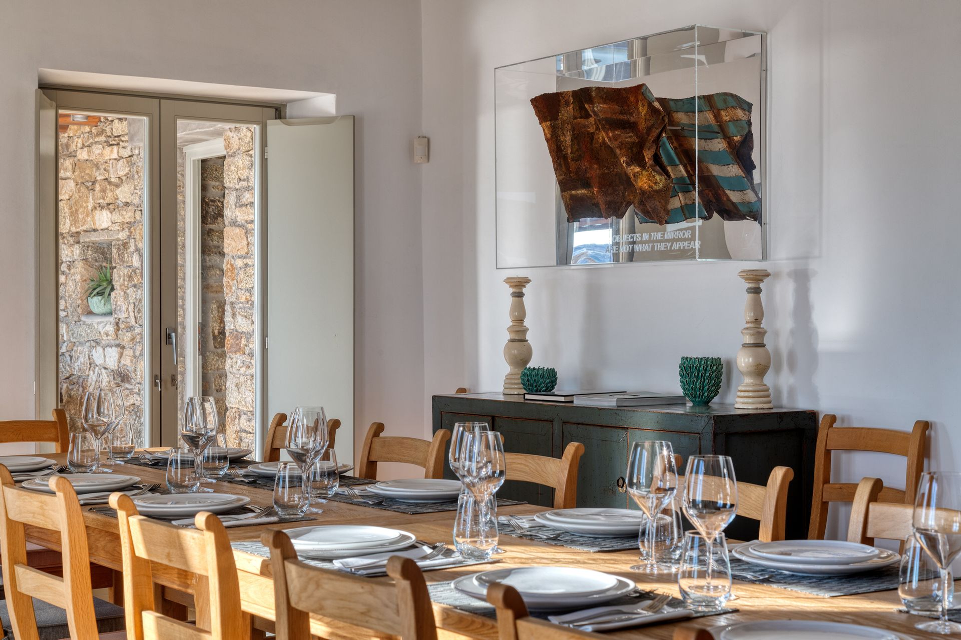 Casa Dante is one of Mykonos’ largest residential estates and can truly fulfil the highest of expectations. It straddles an unspoilt and rocky cape between the beaches of Elia and Agrari and Super Paradise. The estate affords endless views to the south, showcasing a panorama of islands: Donousa, Naxos, Paros, Antiparos and Ios. This unique property, which sleeps 11 people, is the most exciting rental property to sparkle on the Mykonian scene for a long time.