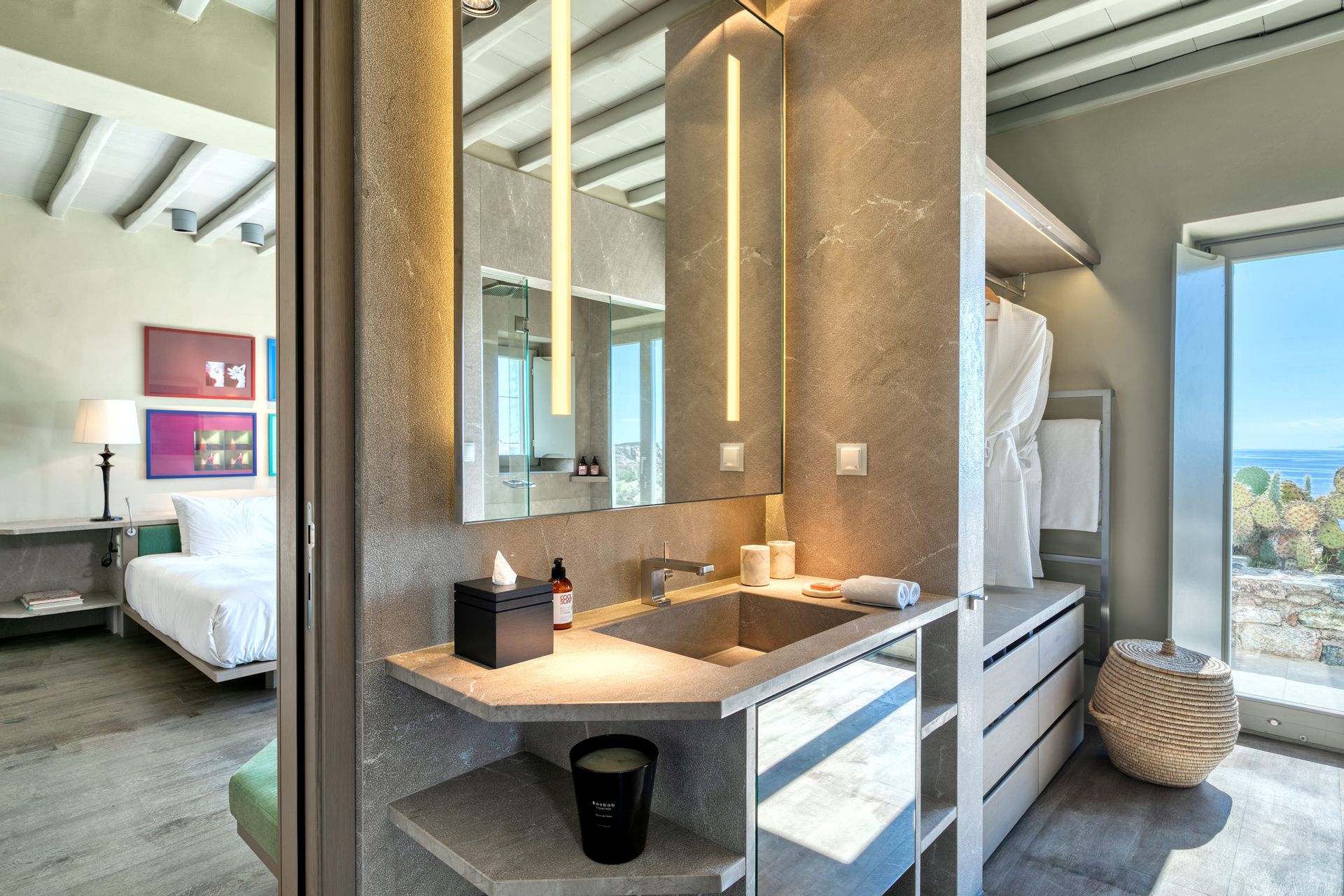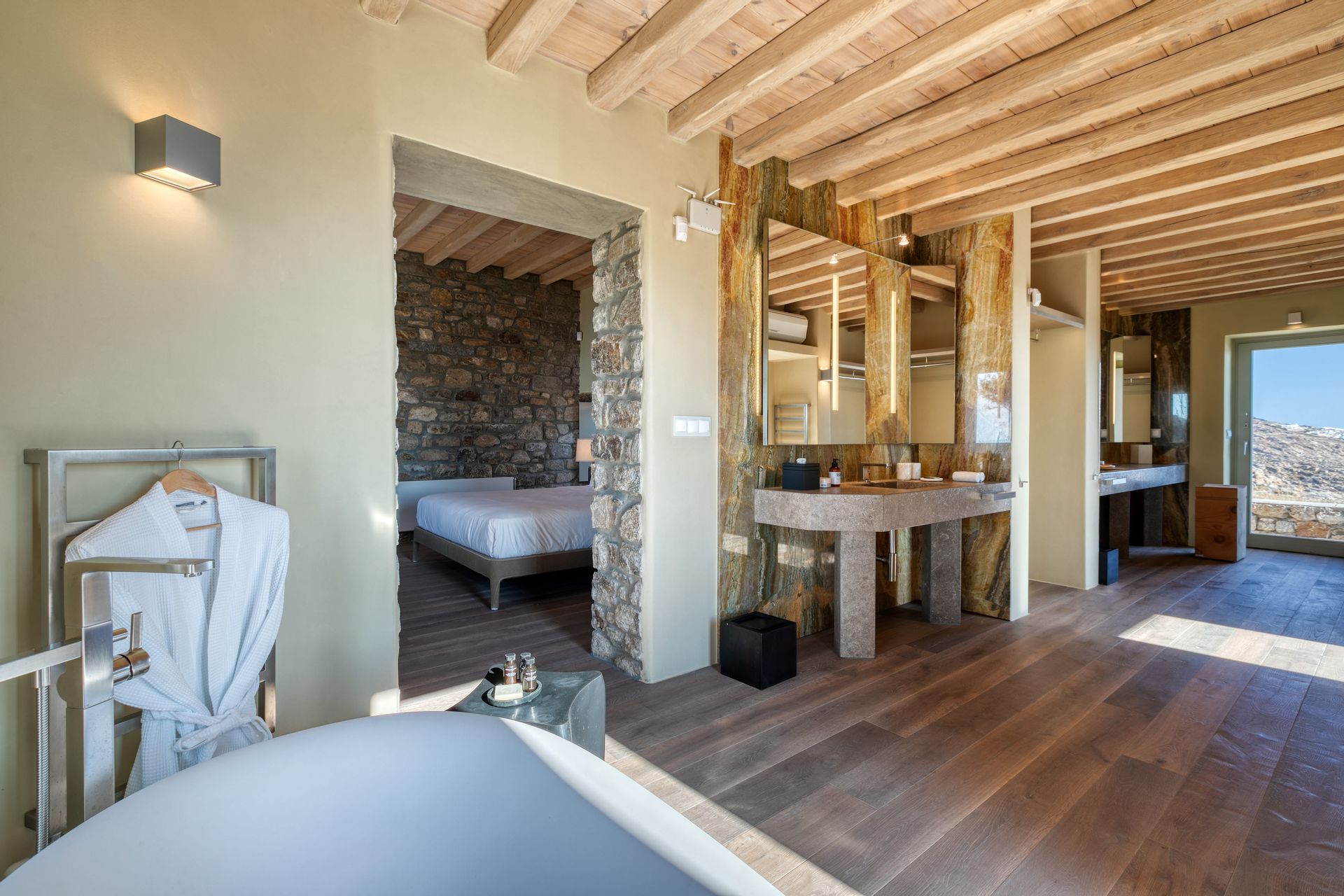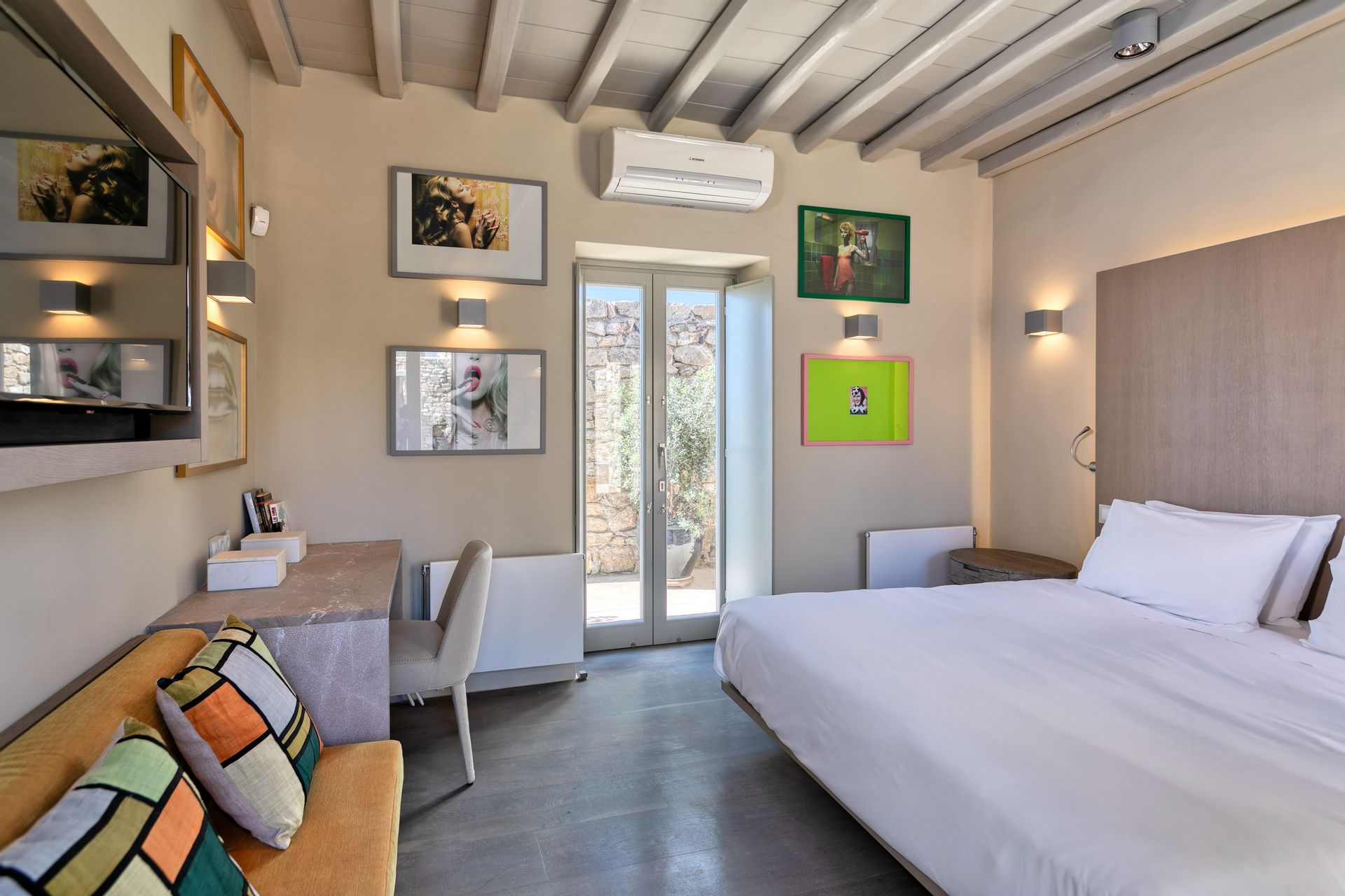 Our property’s focal point is the Clubhouse featuring a heated pool, Jacuzzi, basketball court and in house gym as well as other facilities. A brief walk away from here one can find serenity in the master suite, fondly known as the Keli. Close by, situated in a separate typical Mykonian building, four more suites are housed offering stunning views and eclectic amenities.
