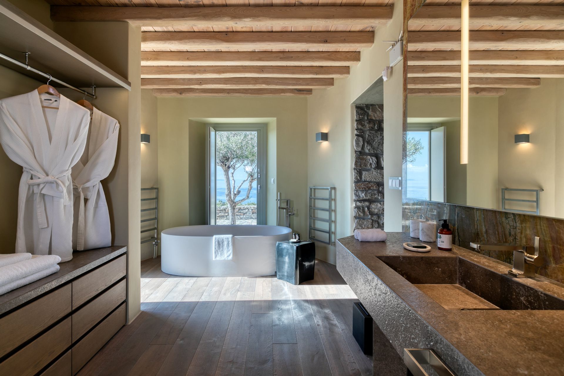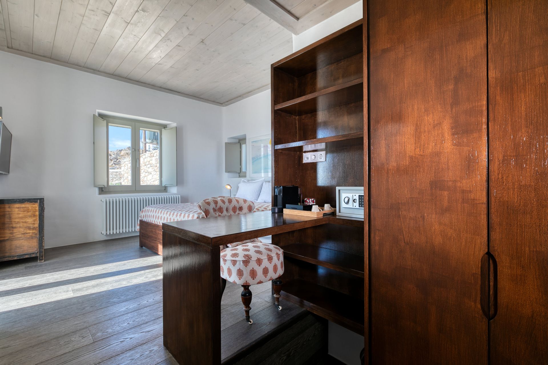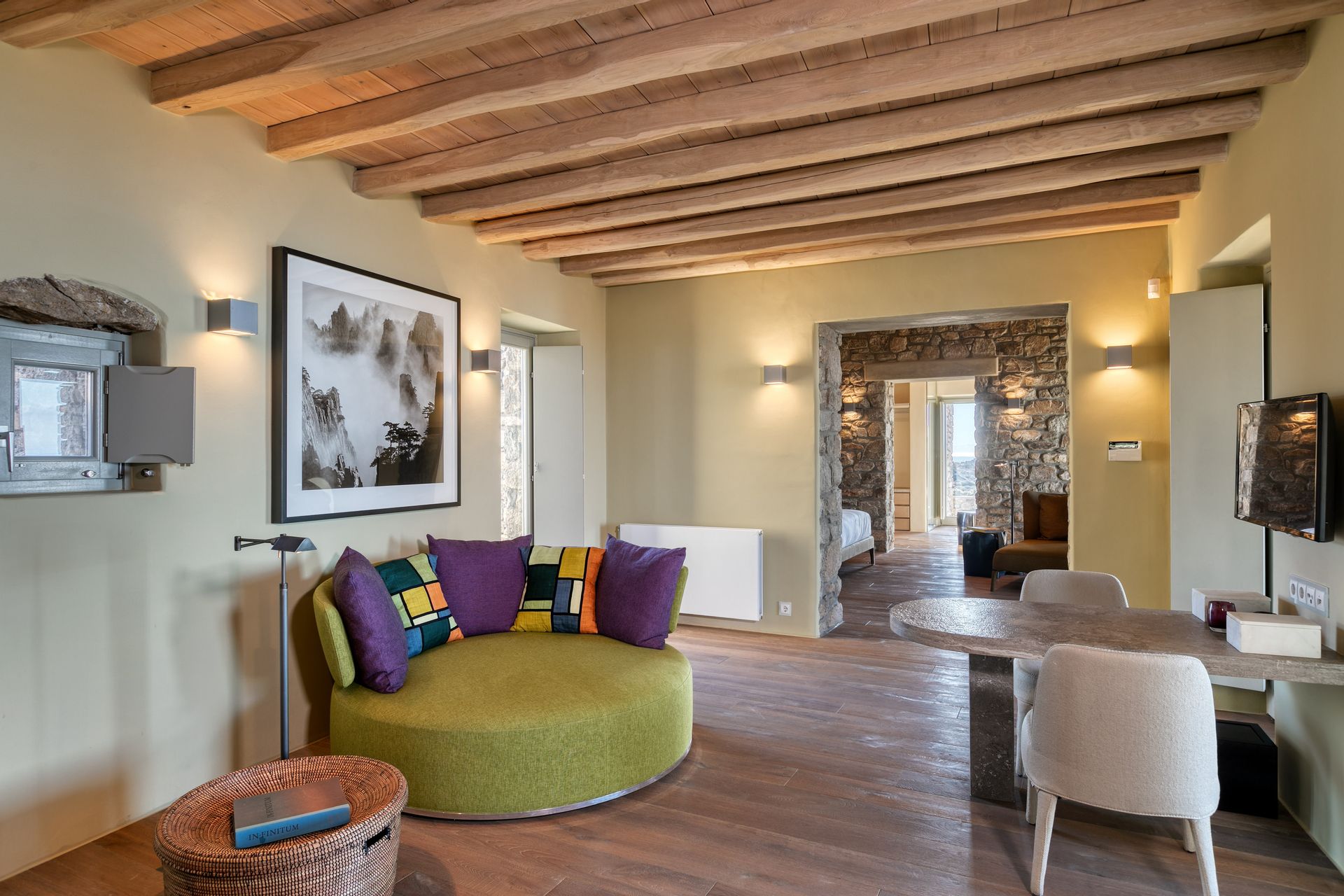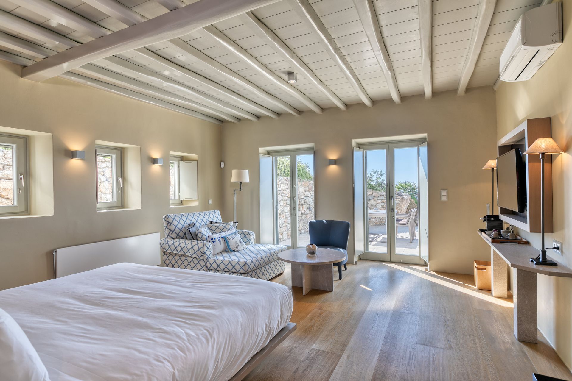 Our property’s focal point is the Clubhouse featuring a heated pool, Jacuzzi, basketball court and in house gym as well as other facilities. A brief walk away from here one can find serenity in the master suite, fondly known as the Keli. Close by, situated in a separate typical Mykonian building, four more suites are housed offering stunning views and eclectic amenities.