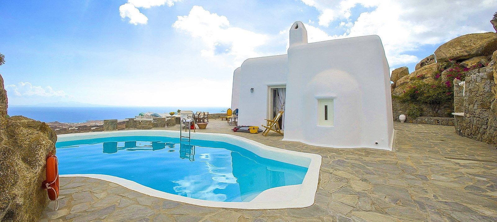 Seamlessly blending with the pristine Mykonian landscape, the striking in its simplicity, Eleanor Villa, is made for indulgence in all kinds and forms for all sorts of - in the know- travelers: Amorous couples and newlyweds wishing to share their good fortune with their loved ones; large or extended families reuniting under the same roof; high spirited, fun loving groups of friends; new mums and babies; parents christening their offspring; like minded individuals sharing a retreat experience...
