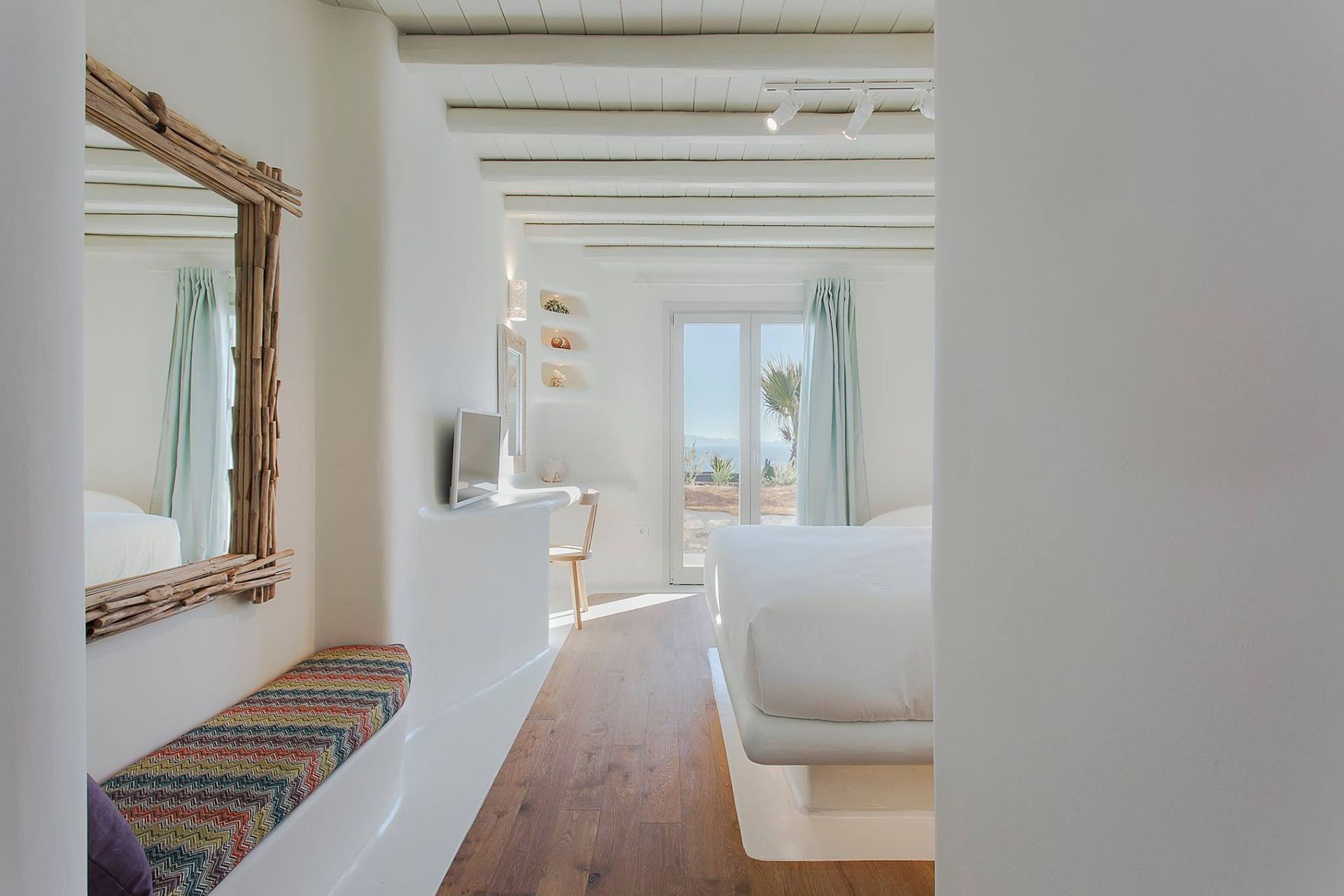 The region of Elia is less than a 20’ drive both from Mykonos Town and the island’s Airport and is situated just a few minutes from the picturesque village of Ano Mera with its traditional Monastery. In Ano Mera you can satisfy your needs with tavernas, local bakery, pharmacy and supermarket. Apart from the beautiful Elia beach, there is access from a close distance to other well-known beaches such as Kalo Livadi, Agia Anna, Kalafatis, Lia and Agrari.
