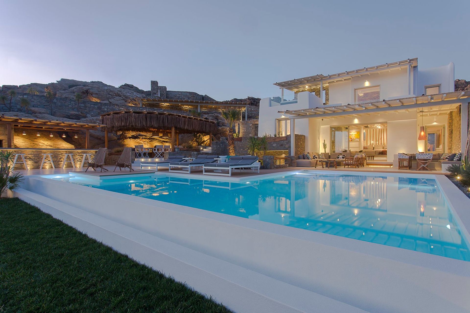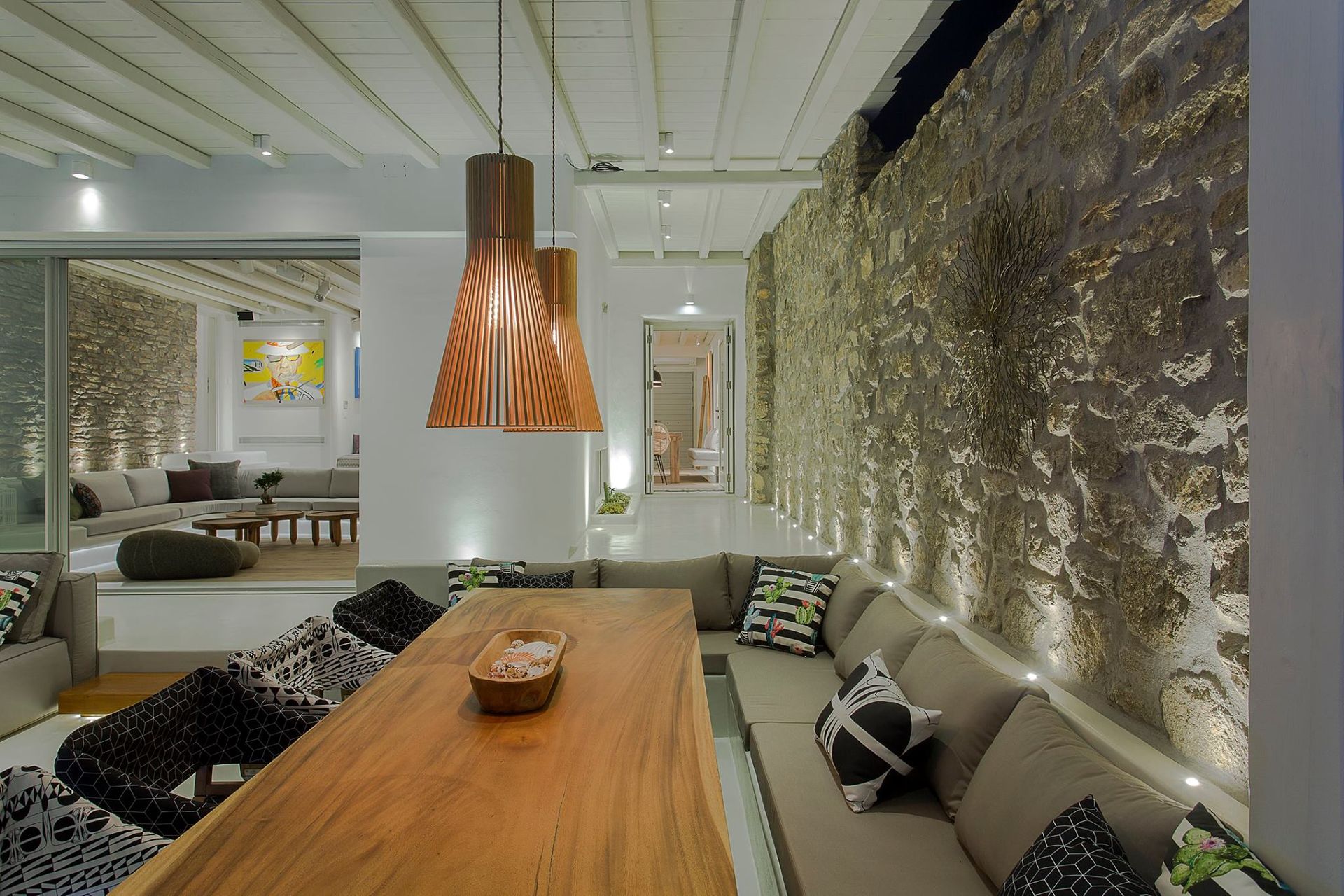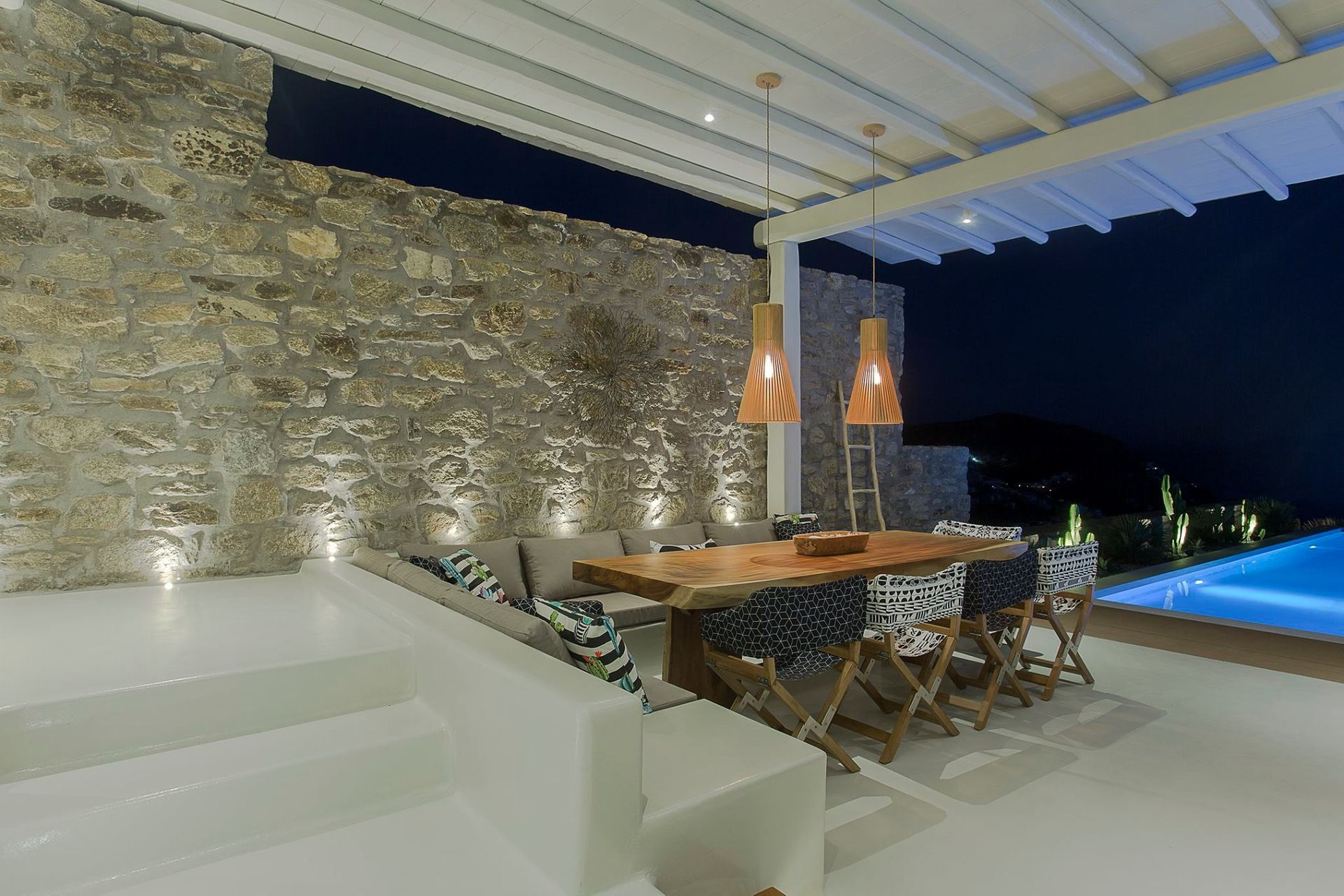 Villa Intenso of 340 sq.m., consists of 6 spacious bedrooms with en suite bathrooms plus 1 guest restroom, and accommodates in total 13-14 guests. It has an abundance of indoor & outdoor spaces, which are luxuriously furnished to the highest quality and detail and according to the latest design trends.