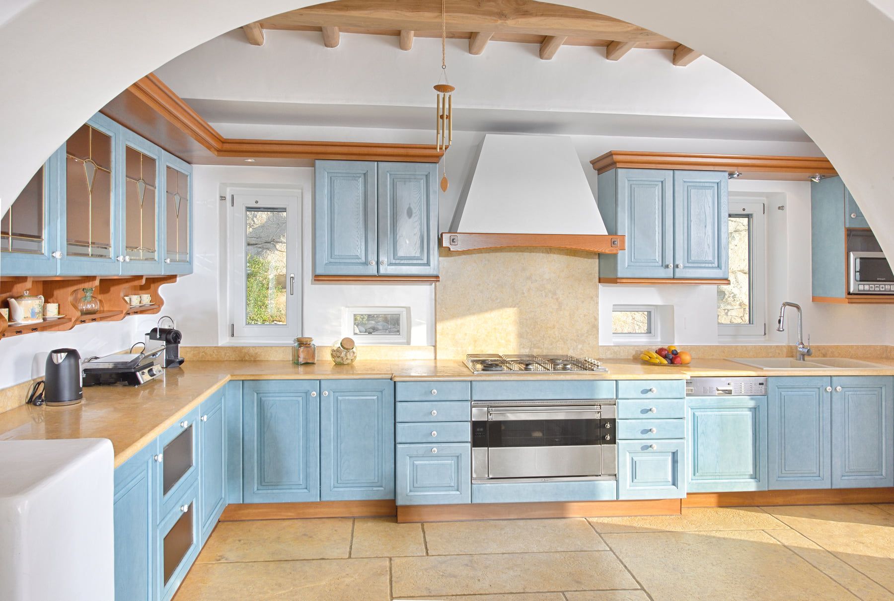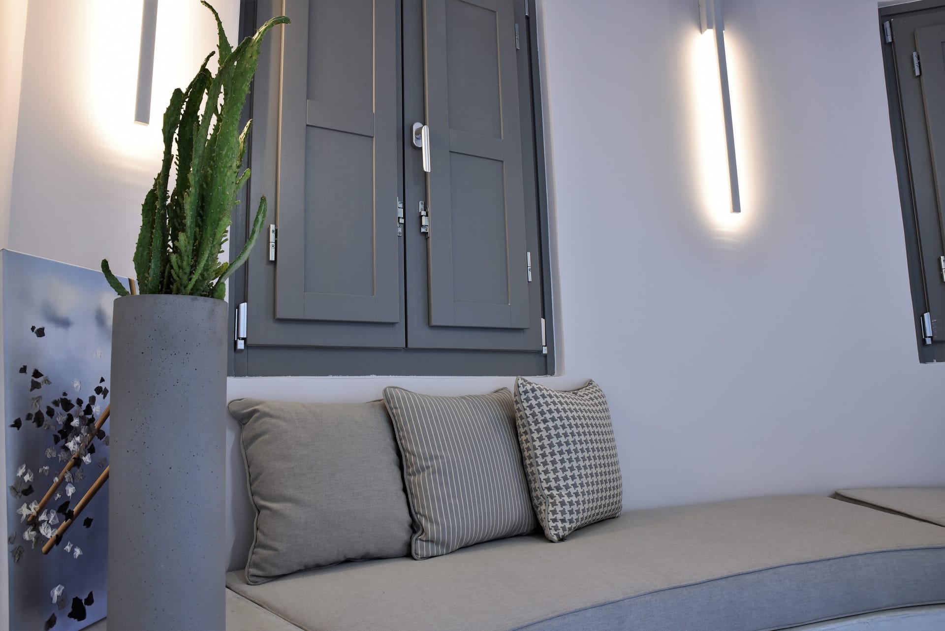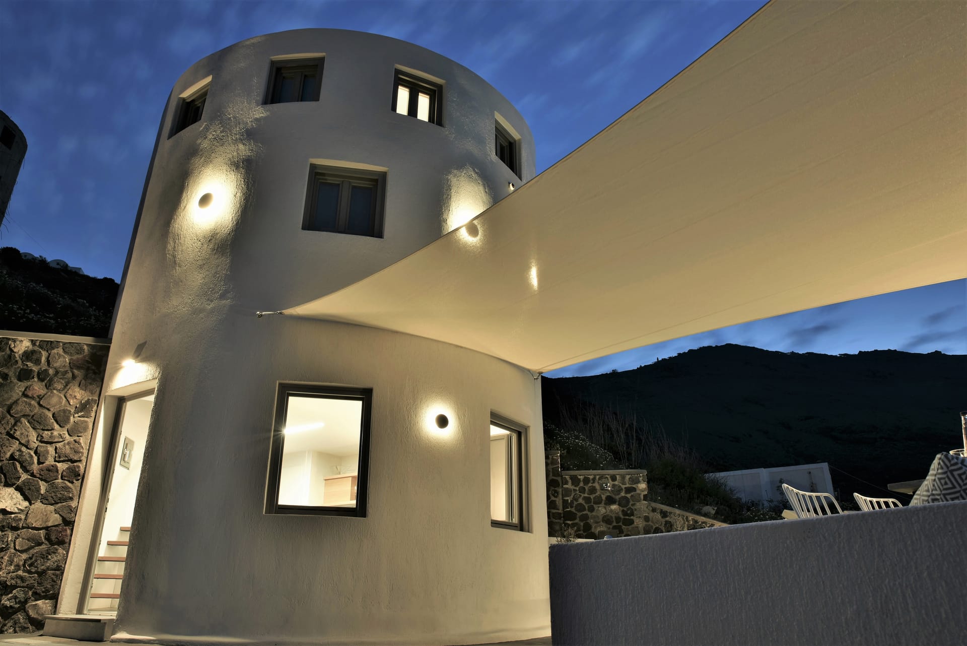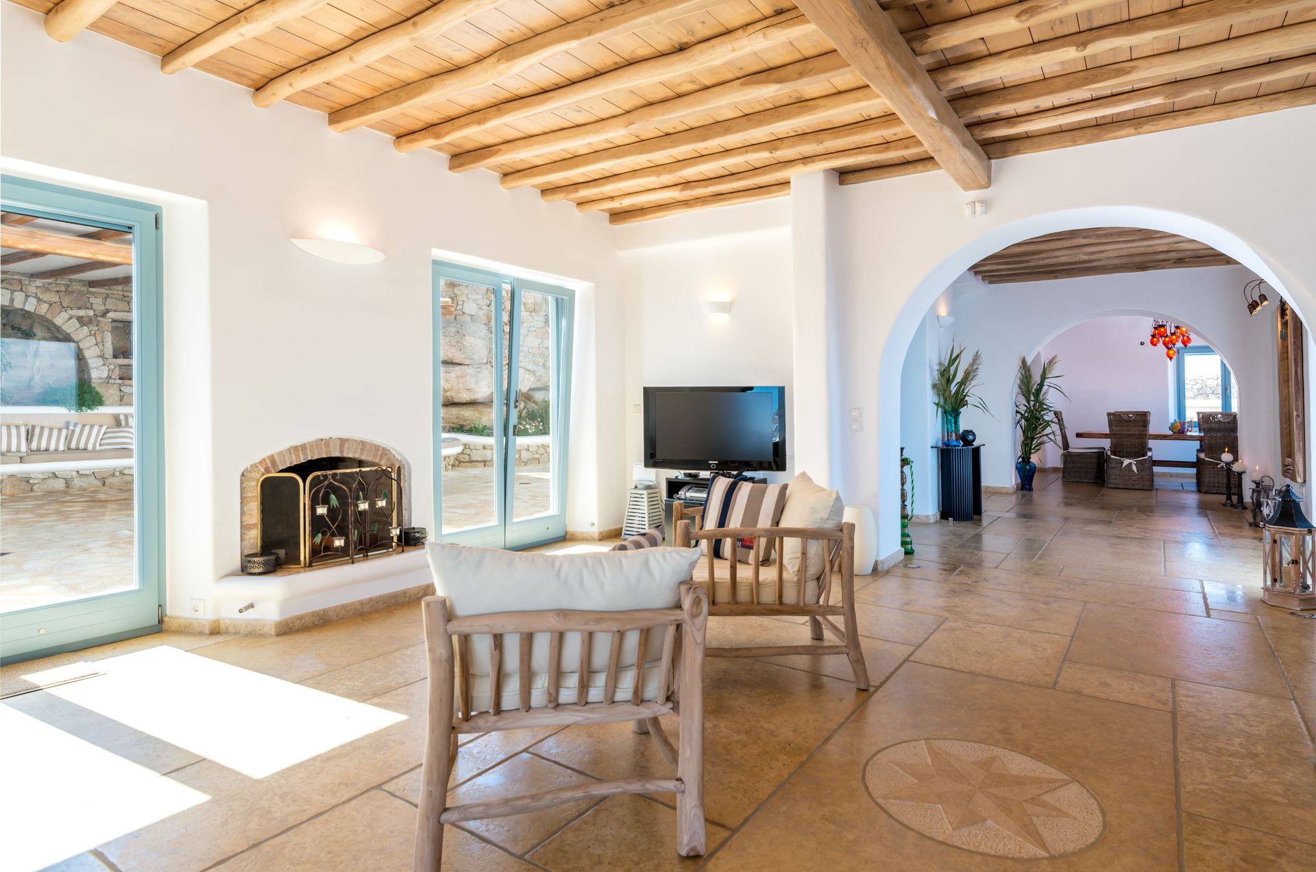 The main villa – a 5 bedroom en suite residence – combines traditional Cycladic design, luxury and absolute privacy. On the same estate there is also an independent Guest House (60sqm) that can accommodate a family of 2+2, and a fully equipped studio (25sqm) for the staff.