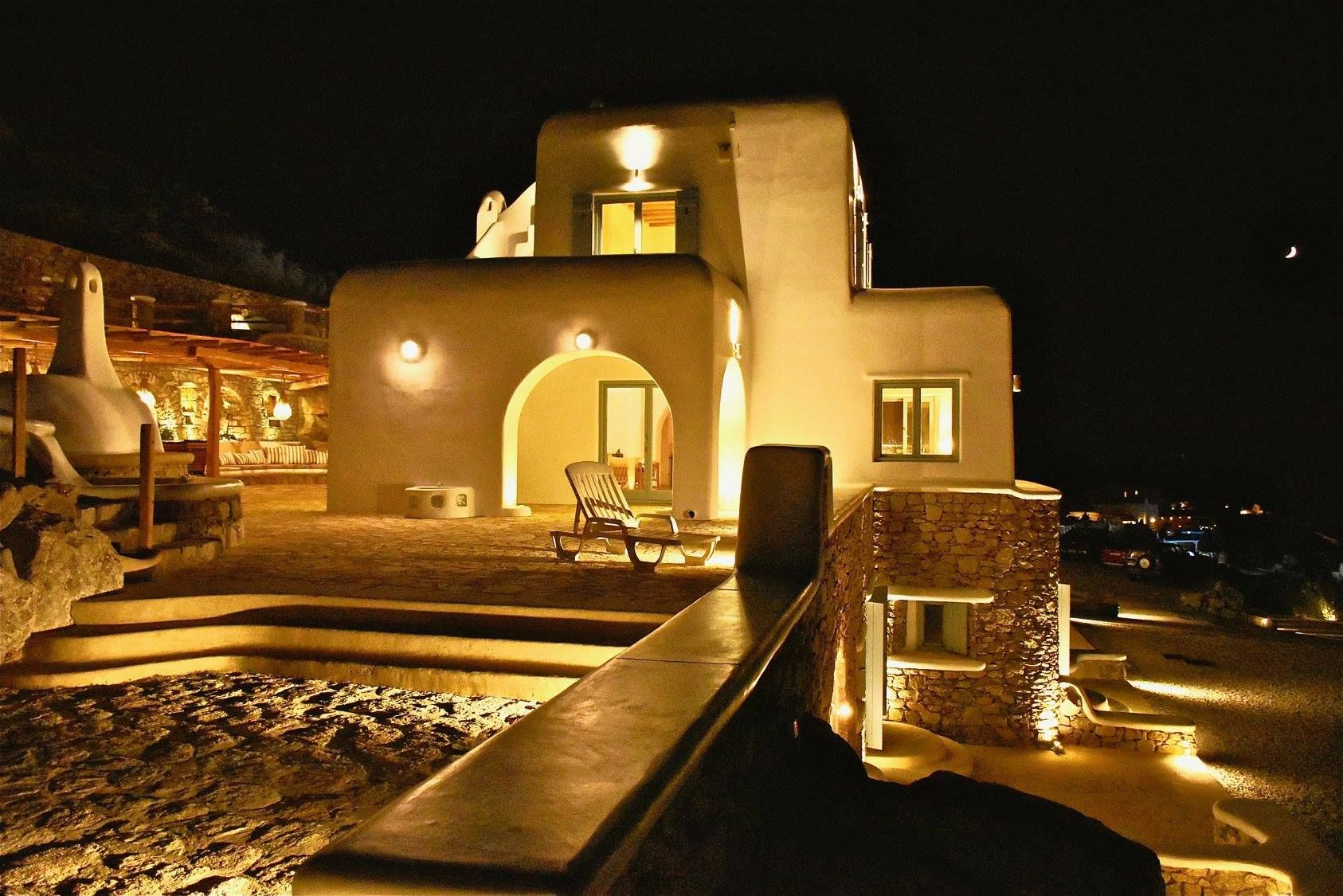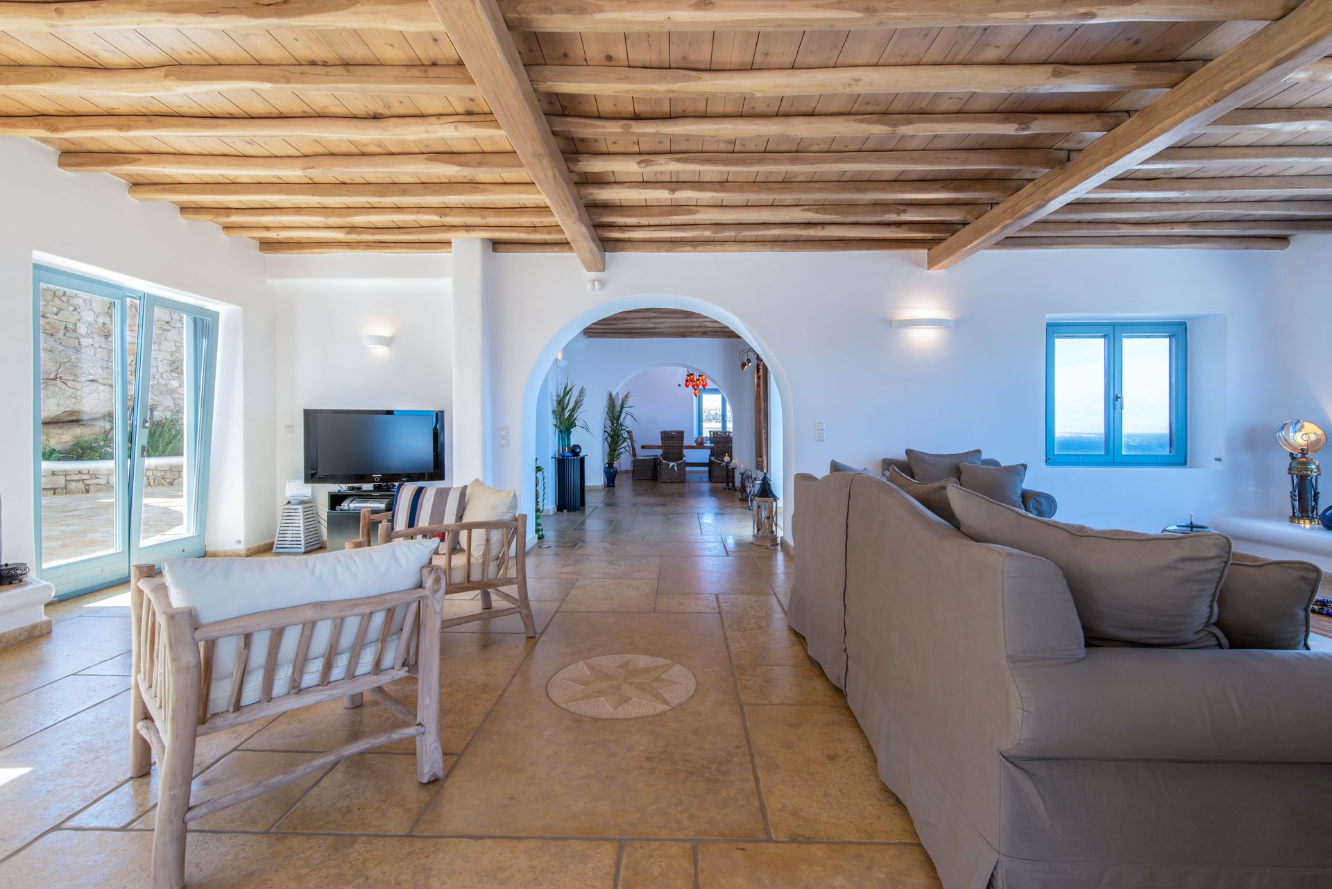 Bathed in the world famous Cycladic light and cooled by the Aegean breeze, it is one of the largest Villas in Mykonos (605sqm), with an adjacent Guest House (60sqm), built on a plot of over 4,000sqm, and offers the ideal holiday destination for large families or groups of friends (from 10 to 14).