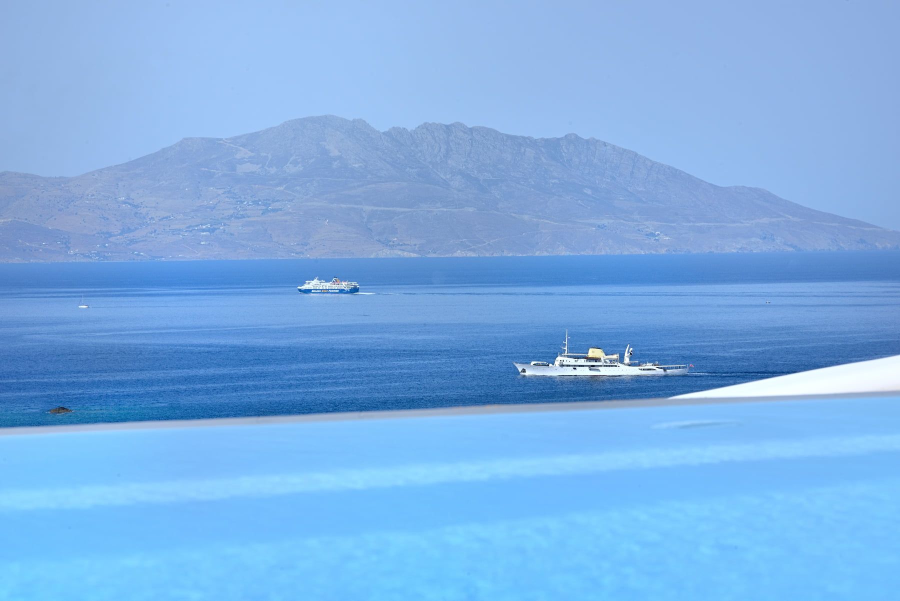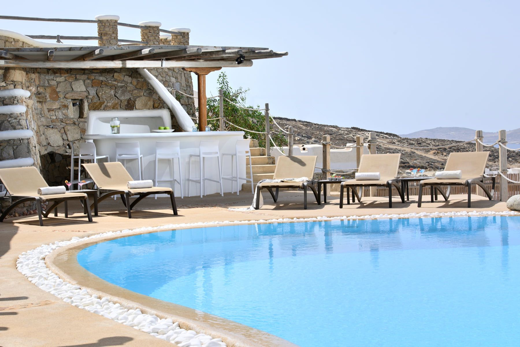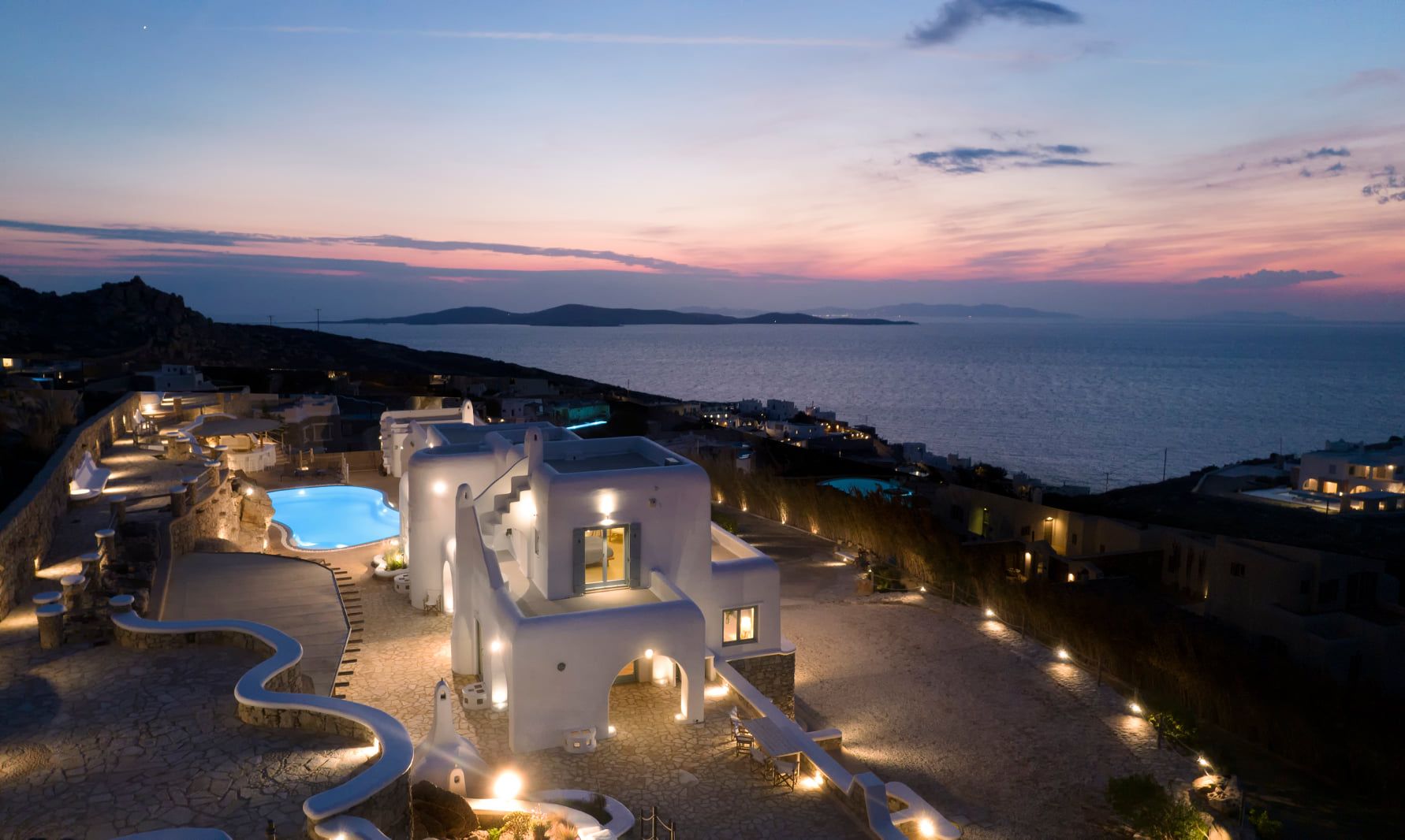It is just a 15-minute drive from Mykonos town and offers its guests the ultimate Mediterranean experience, with a superb panoramic view of the Aegean Sea, Mykonos Town, the Old and New harbor and breathtaking sunsets.