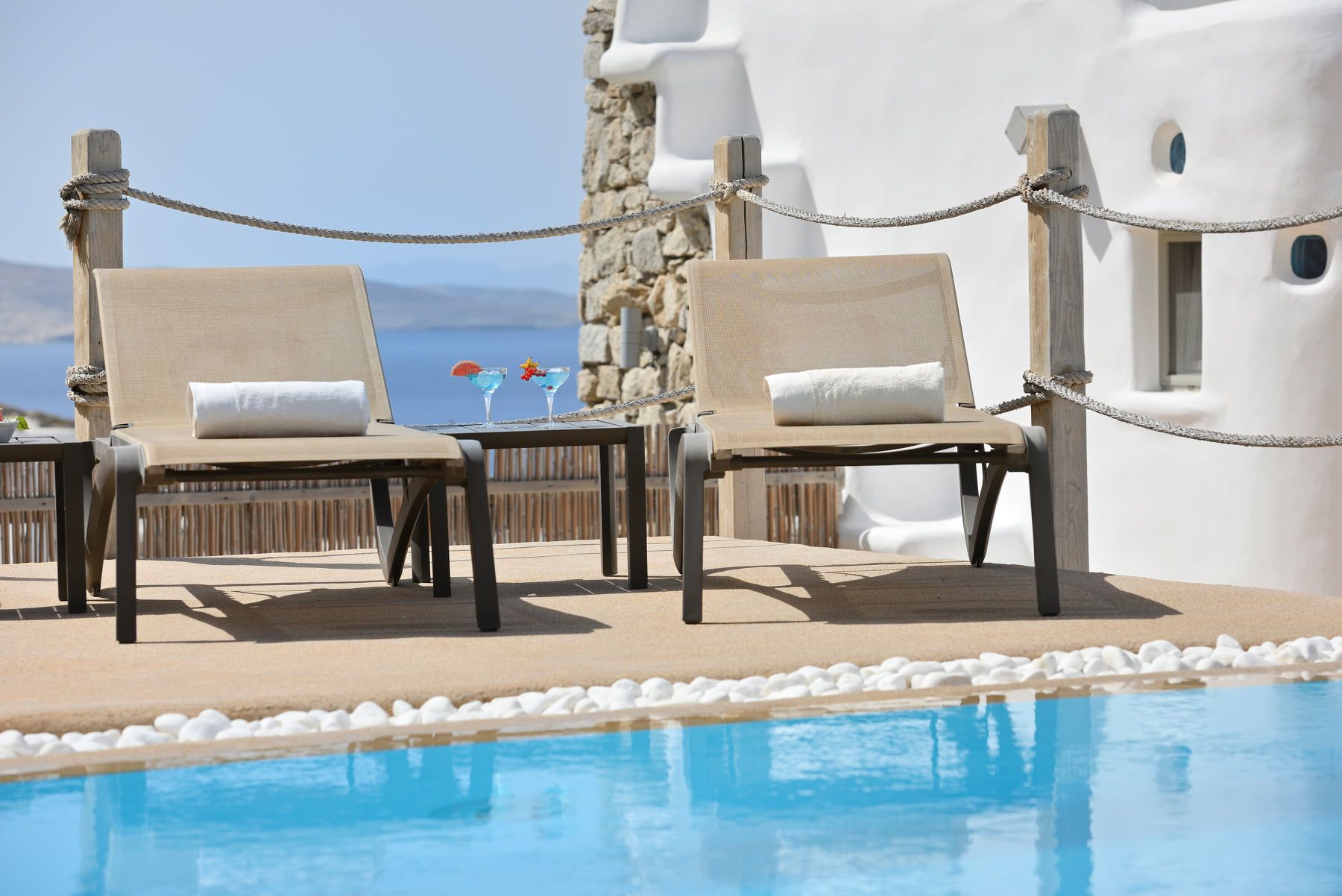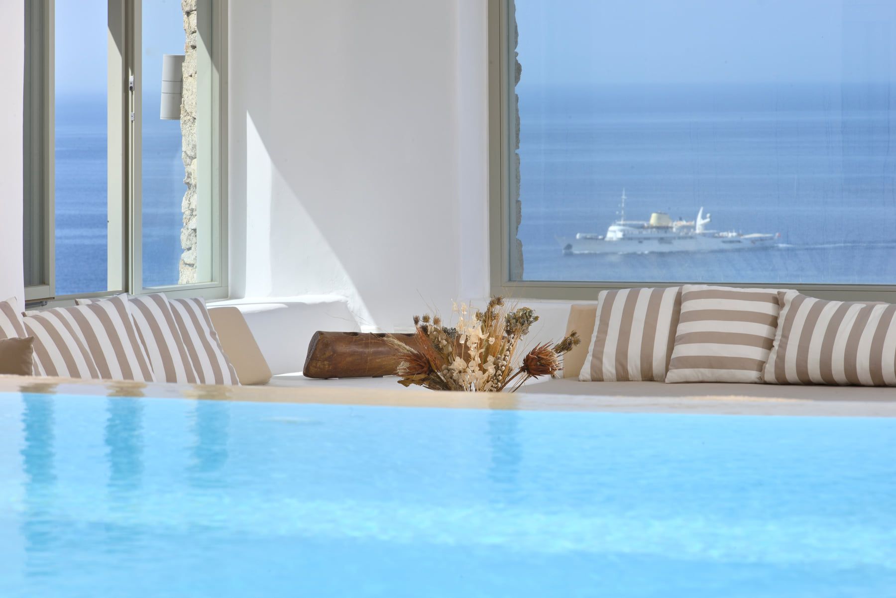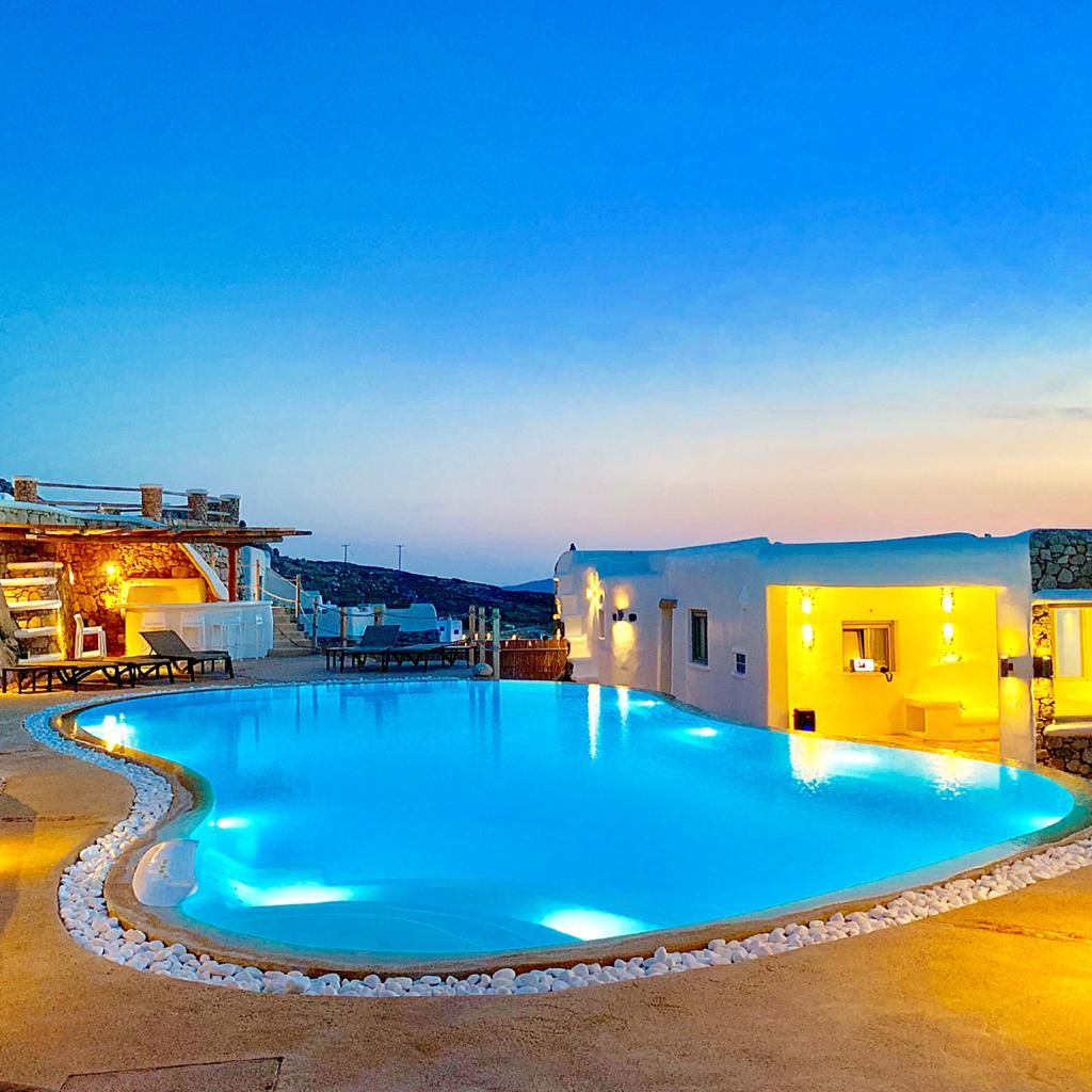 It is just a 15-minute drive from Mykonos town and offers its guests the ultimate Mediterranean experience, with a superb panoramic view of the Aegean Sea, Mykonos Town, the Old and New harbor and breathtaking sunsets.