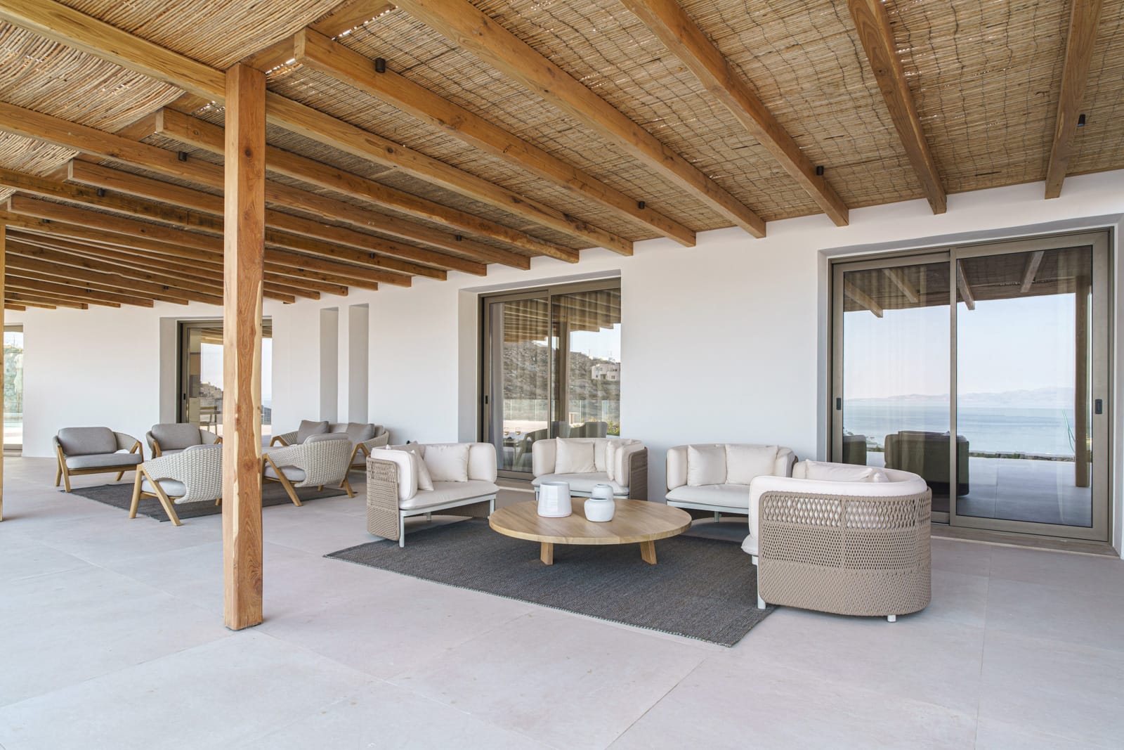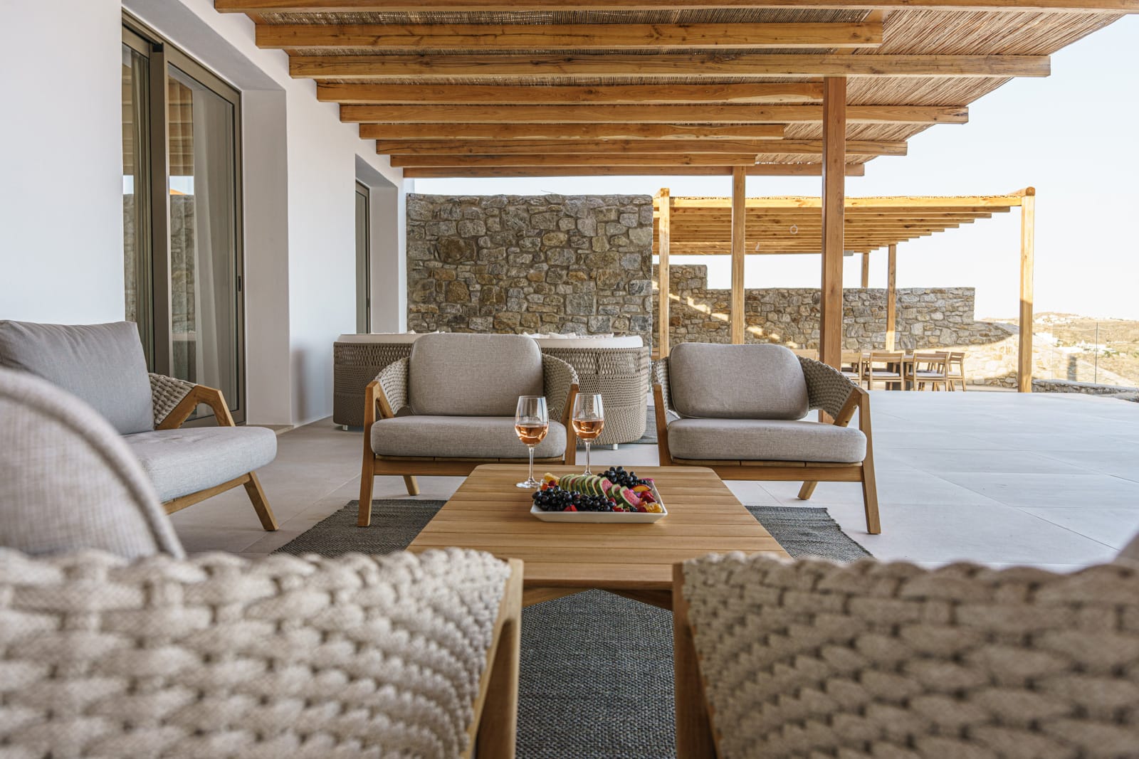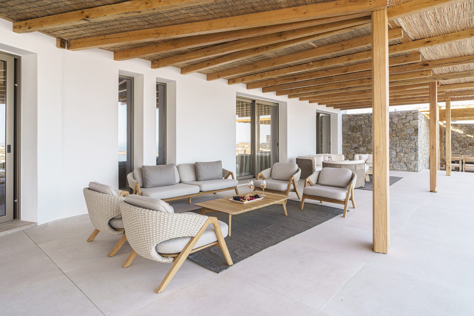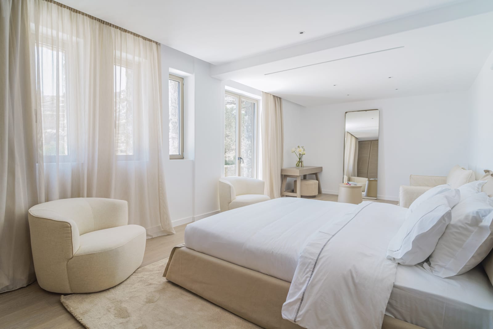 The brilliant white interiors match the exteriors while the subtle, tasteful minimal decorations both reflect and contrast the Mykonian elegance the island is known for.