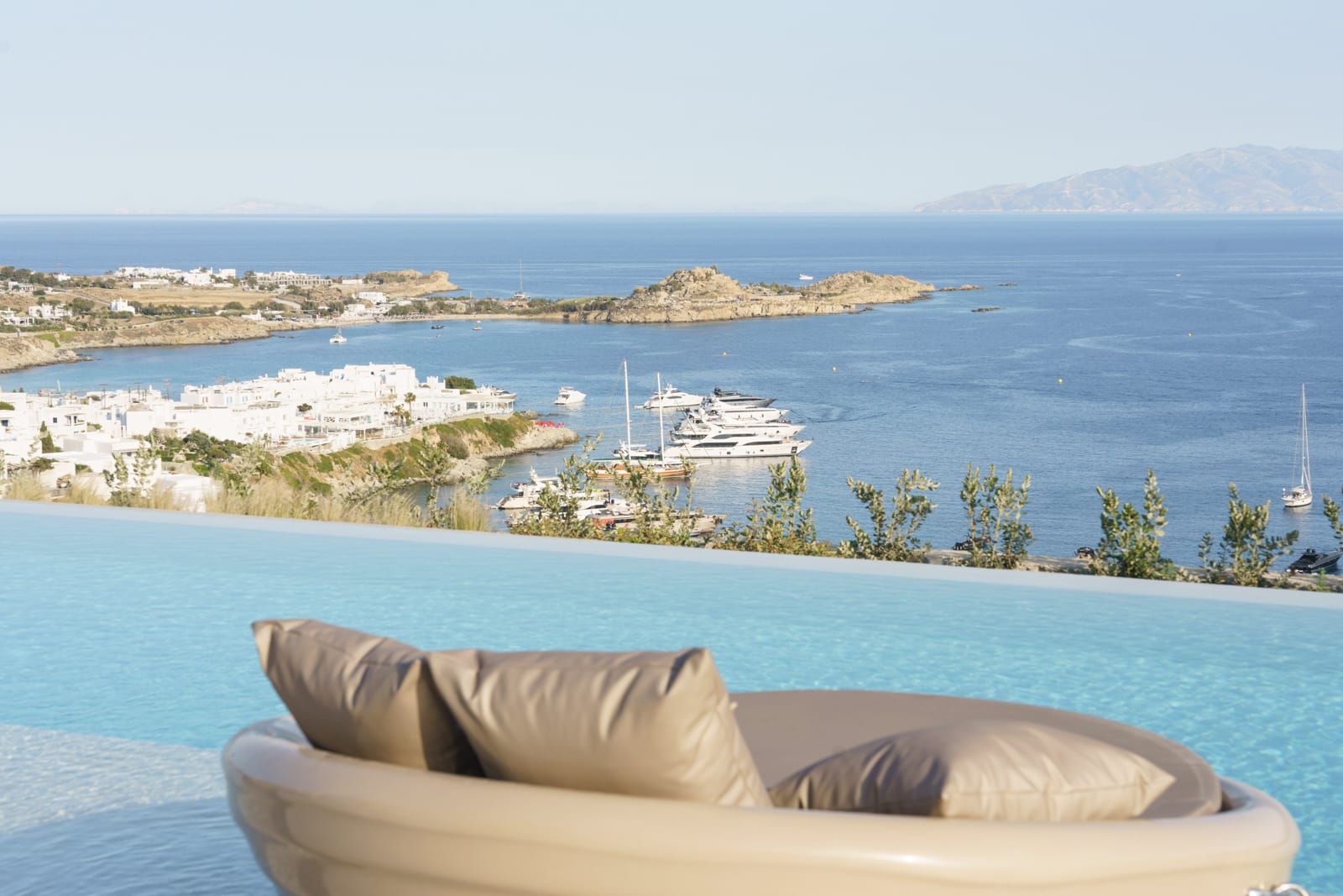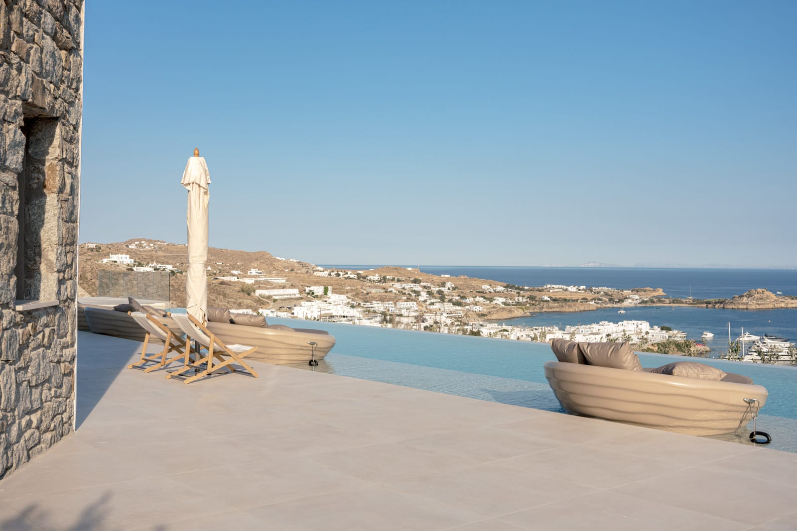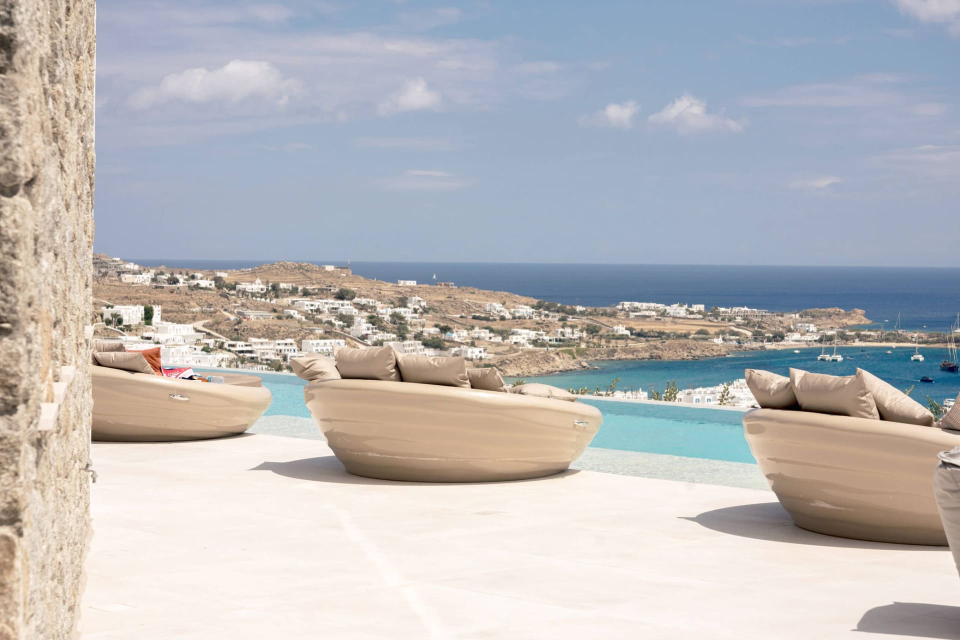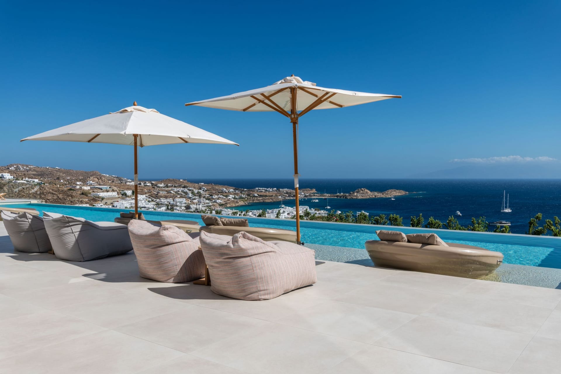 Located up in a hill overlooking of the most famous beaches in the world, Psarou, with walking distance from this cosmopolitan beach and its luxurious all-day & night destination Nammos Village, Serenity Villa is a every Mykonos-lover dream come true.
