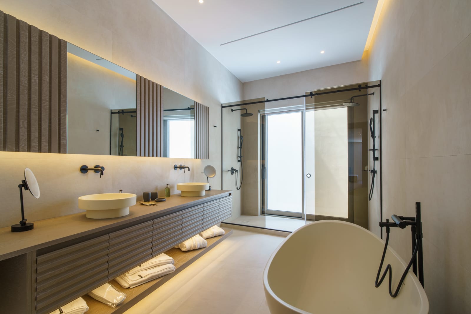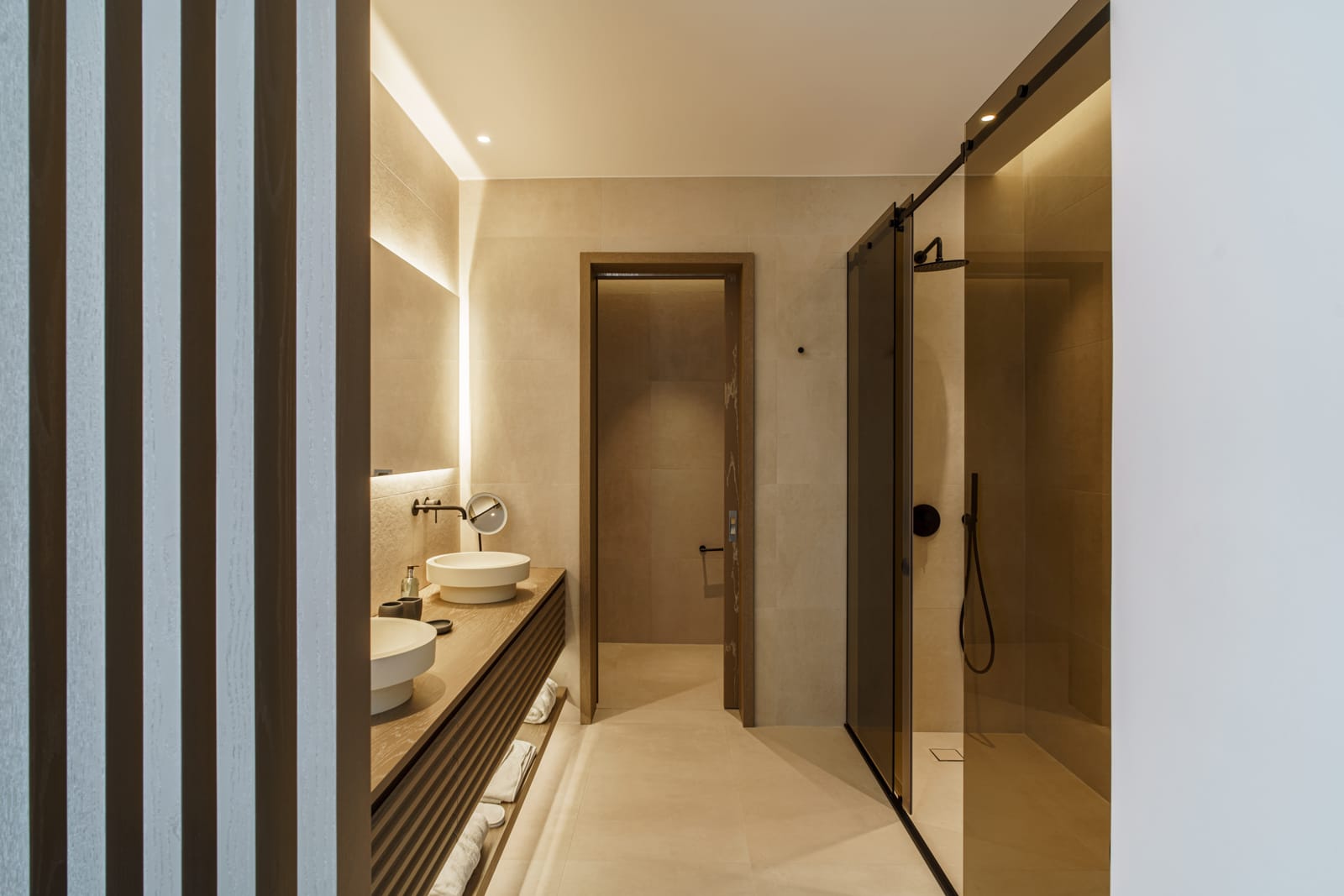 - 1 Double bedroom, ensuite bathroom with 2 showers, sea view & access to the main Pool area (48 sqm)