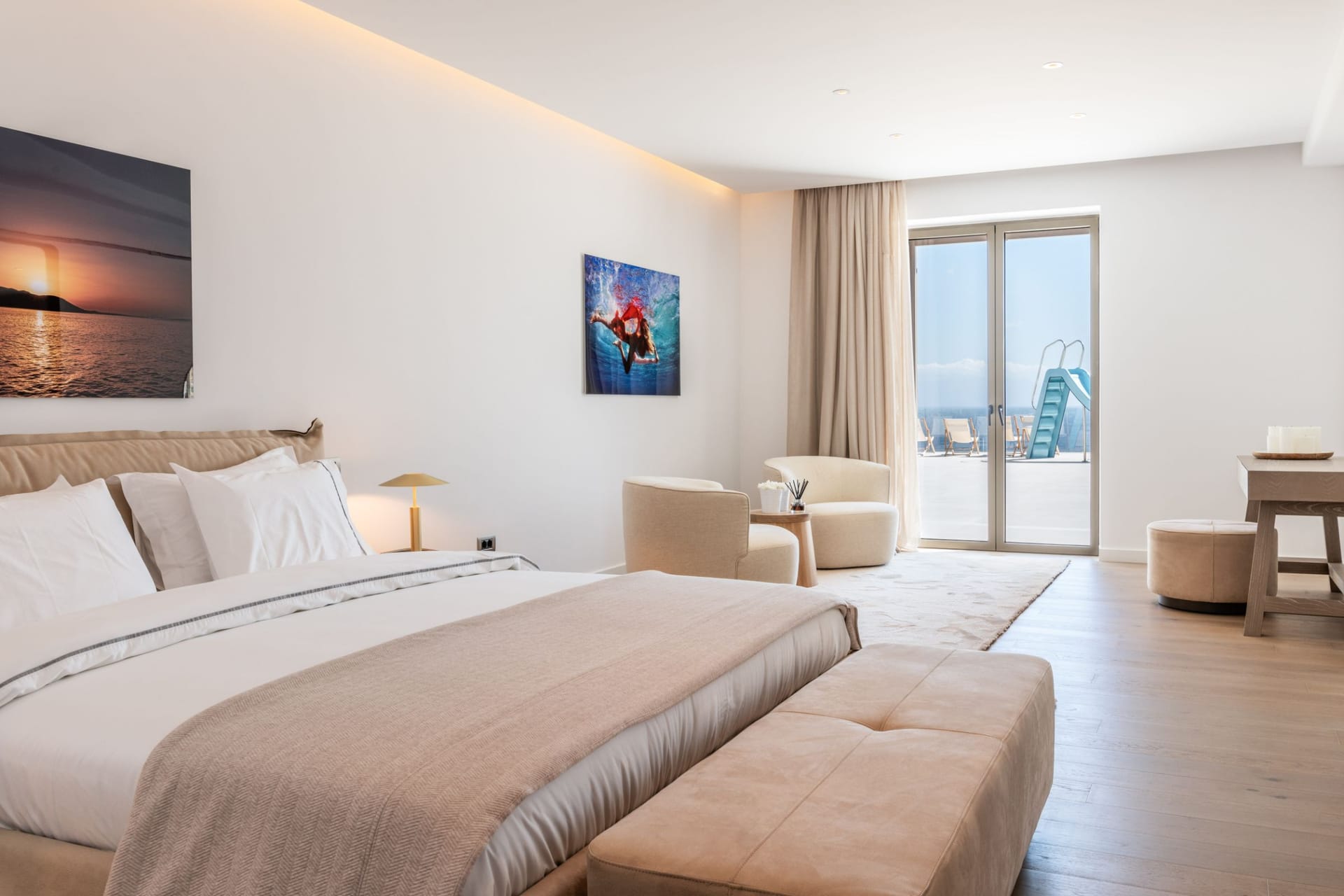 - 1 Double bedroom, ensuite bathroom with 2 showers, sea view & access to the main Pool area (42 sqm)