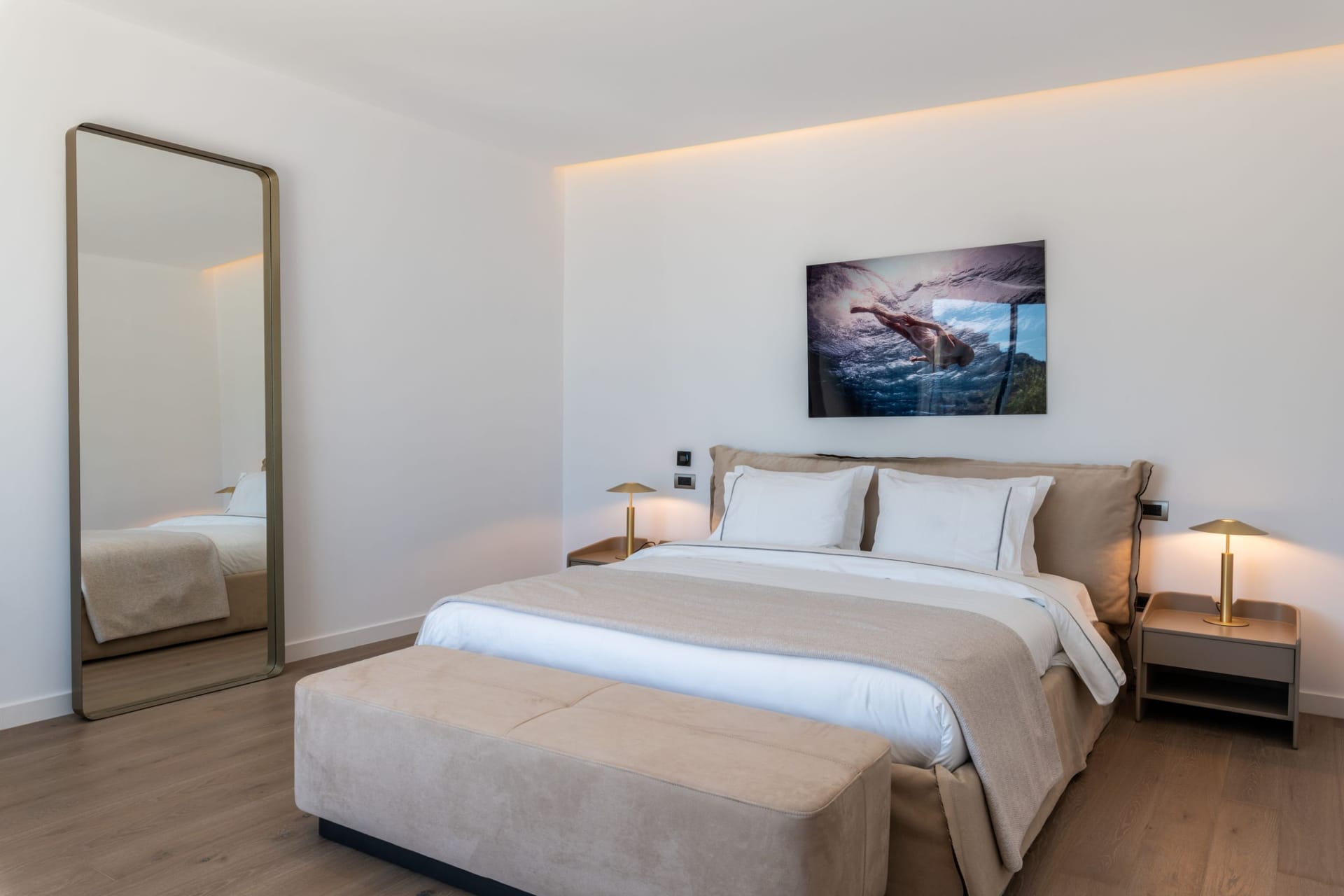 - 1 Double Bedroom, ensuite bathroom with 2 showers and direct access to the second swimming pool (45 sqm)