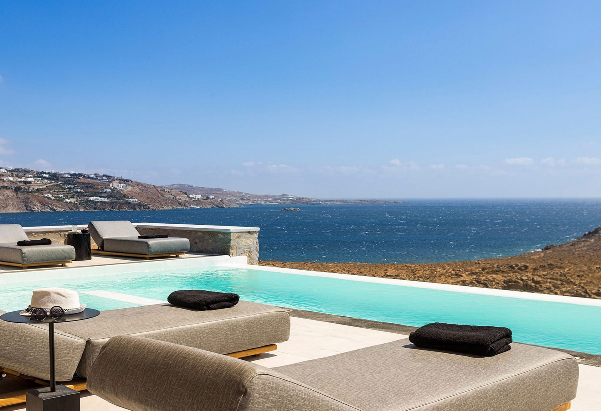 Both villas are ideally situated in Houlakia, offering serene privacy while being just a short drive from Mykonos Town. Guests can explore world-renowned beaches, vibrant nightlife, and cultural landmarks while retreating to the peace and luxury of their villa.