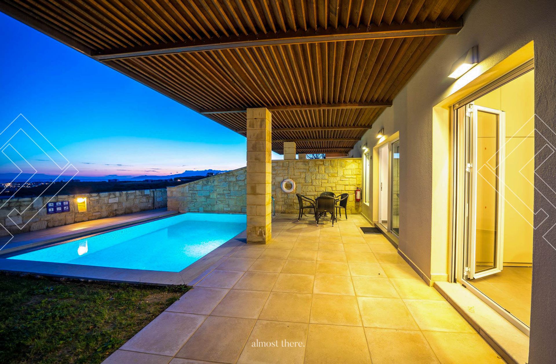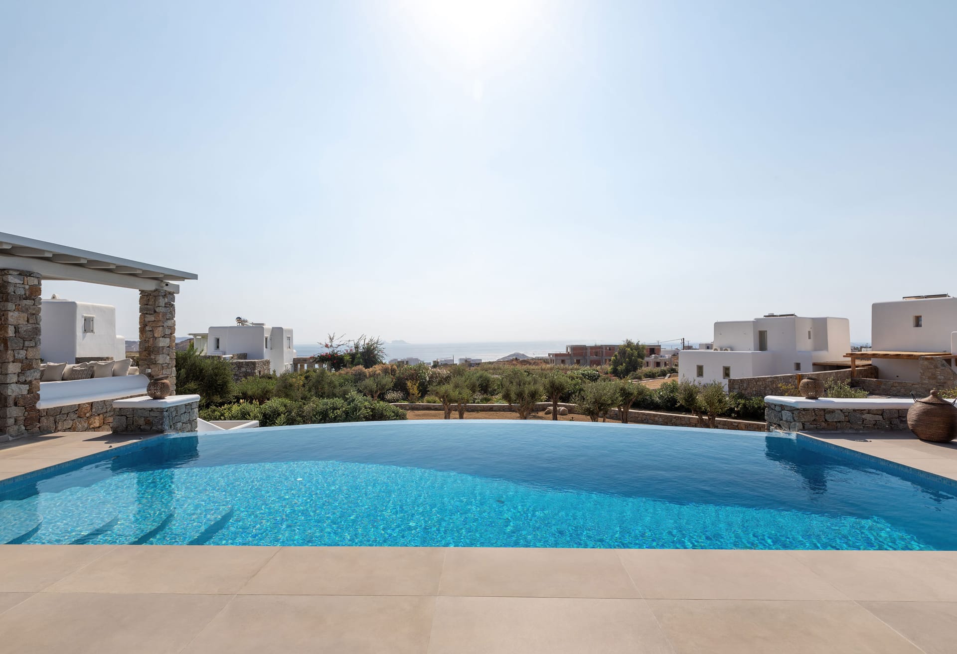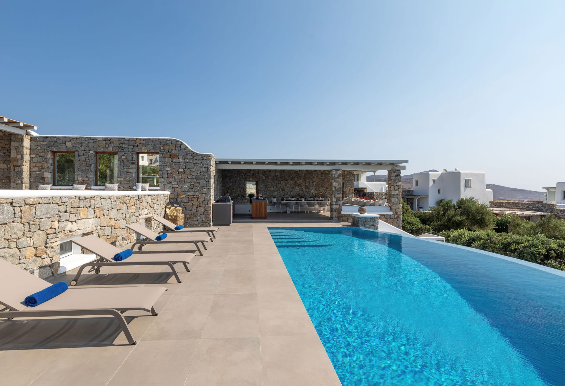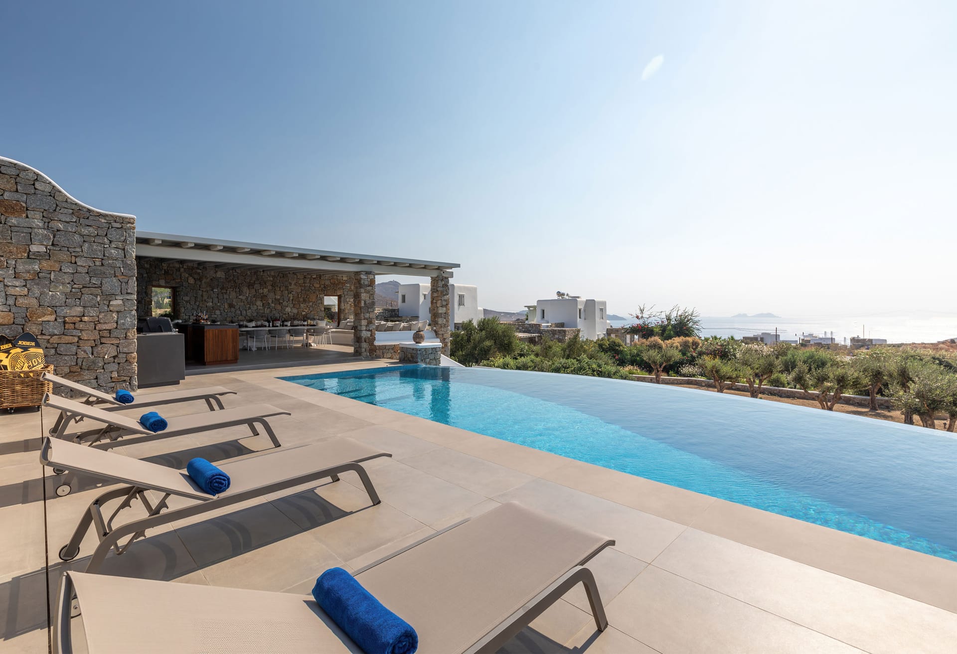 The outdoor experience at Breeze Two is equally captivating, with an expansive terrace, heated infinity pool and jacuzzi (heating upon request), shaded dining areas, and panoramic sea views. Whether enjoying a family meal under the stars or lounging by the pool, every moment here feels magical.