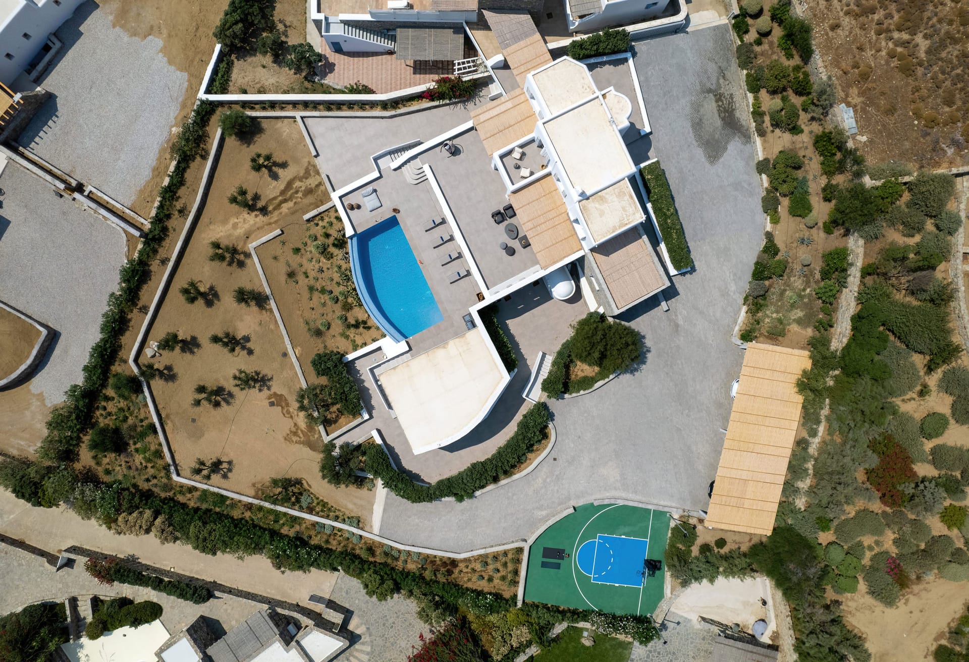 Amenities include a private, heated infinity pool with a six-person Jacuzzi (heating upon request), designer furnishings, an outdoor kitchen with a gas BBQ, luxurious sun loungers, a fully equipped indoor kitchen, a playroom, a dedicated professional staff kitchen, a bathroom with a shower near the pool, a private Techno Gym, high-quality sound systems, smart TVs, smart home technology, an elevator, a modern generator, laundry and storage facilities, gated security, air conditioning, high-speed Starlink Wi-Fi, and parking for up to seven cars and one electric power.
