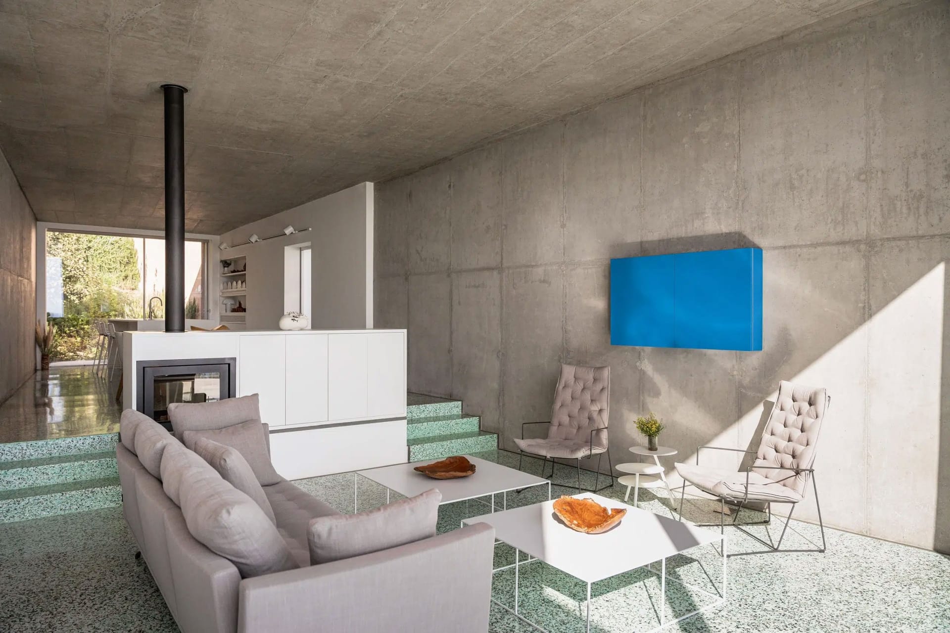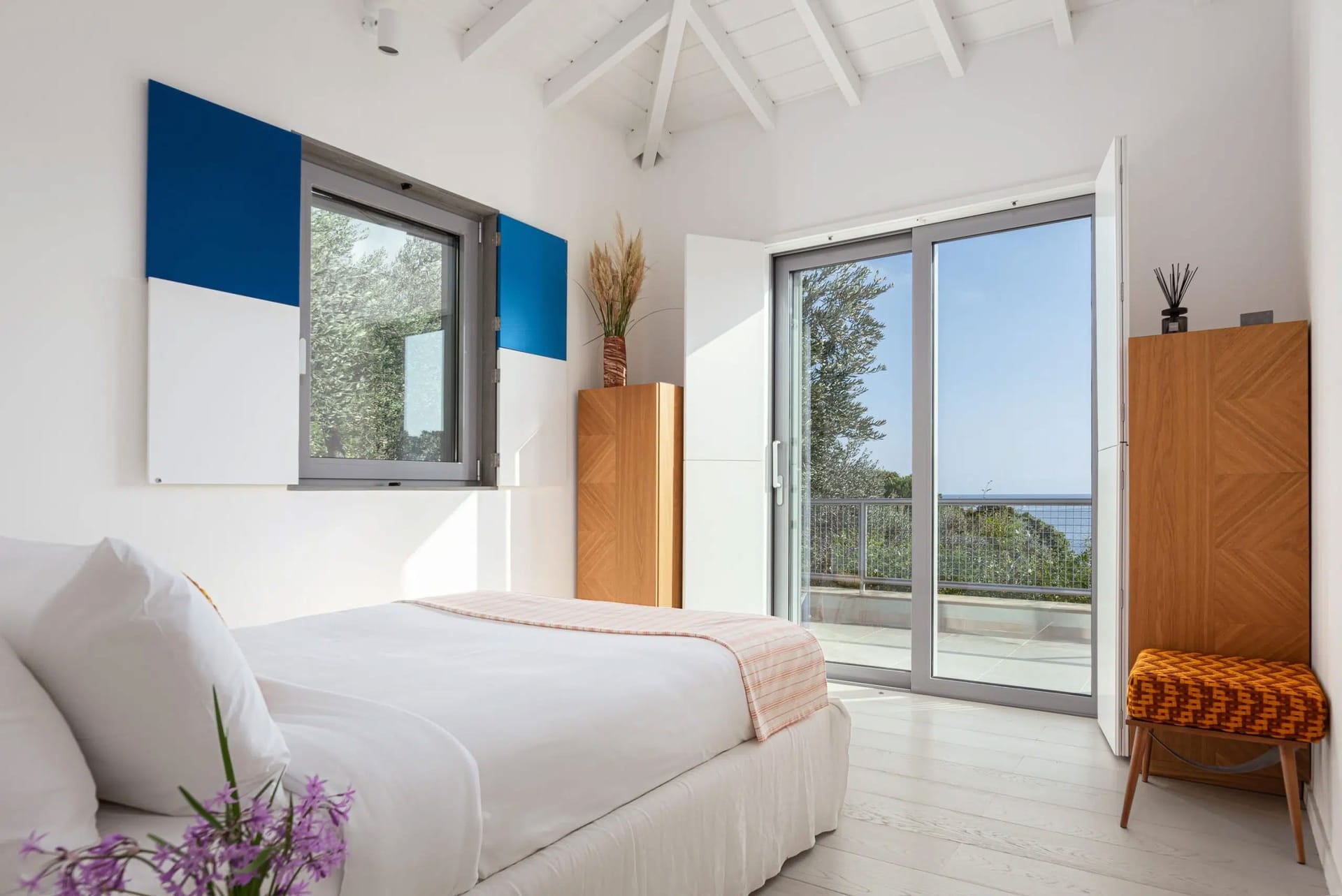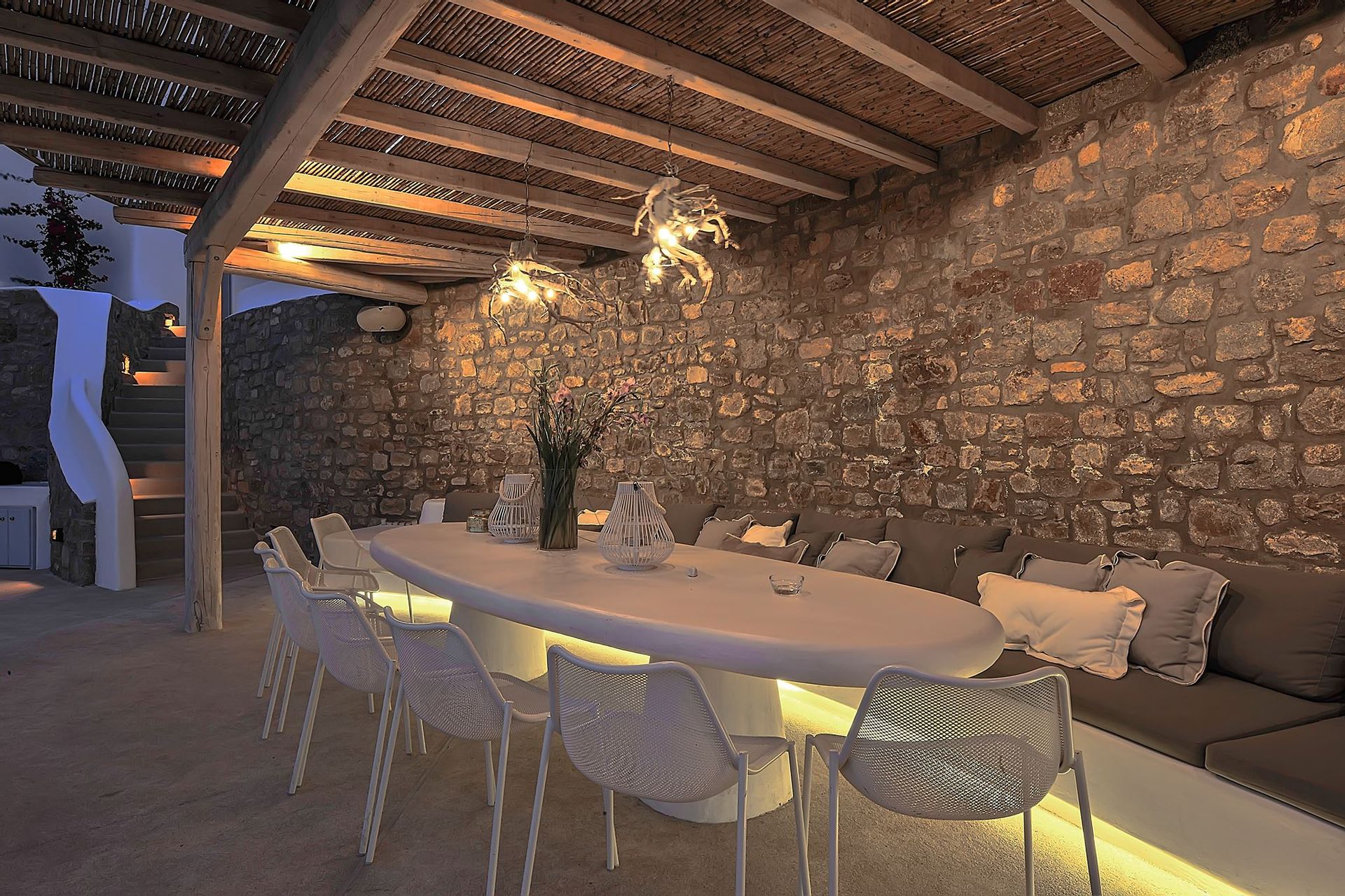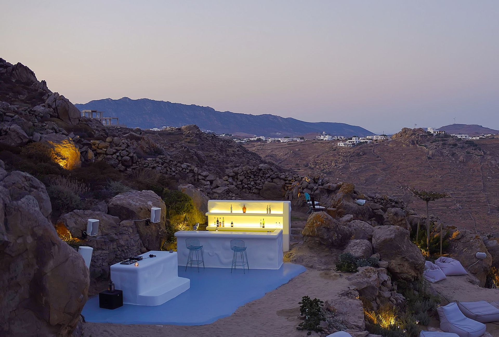 Mykonos is renowned for it’s party side as well as it’s natural beauty, so we have created a bar in the surrounding moutaniside for you to use before or after going out on the town. And to top things off, there is a small screening area, perfect for all movie enthusiasts who just want to unwind in front of a big screen. All of the furniture is part of a private collection, imported from Italy, Bali and many old Greek pieces that were recently restored, giving the villa an authentic yet edgy feel.