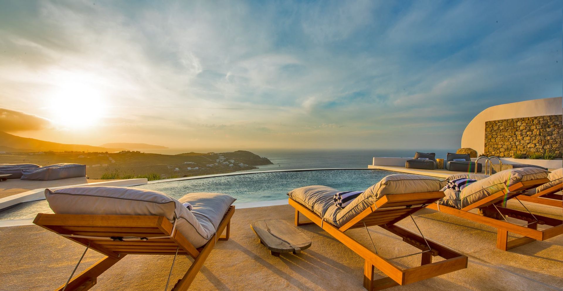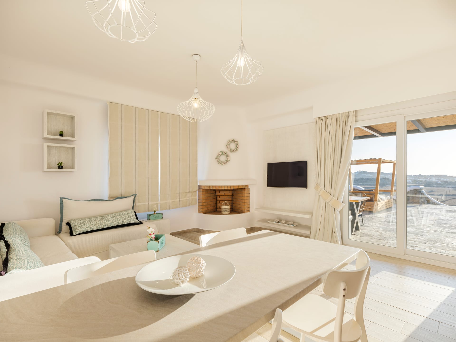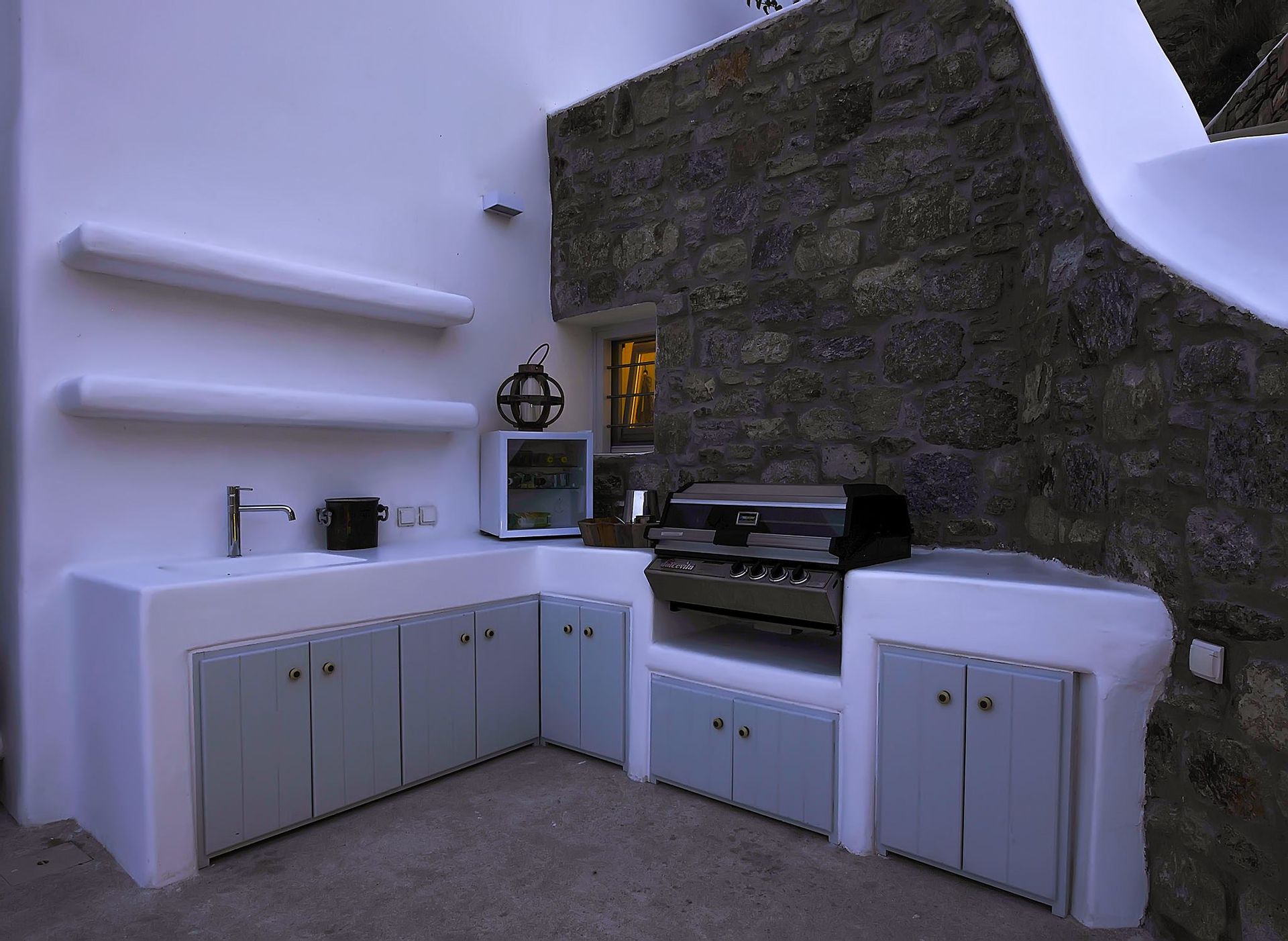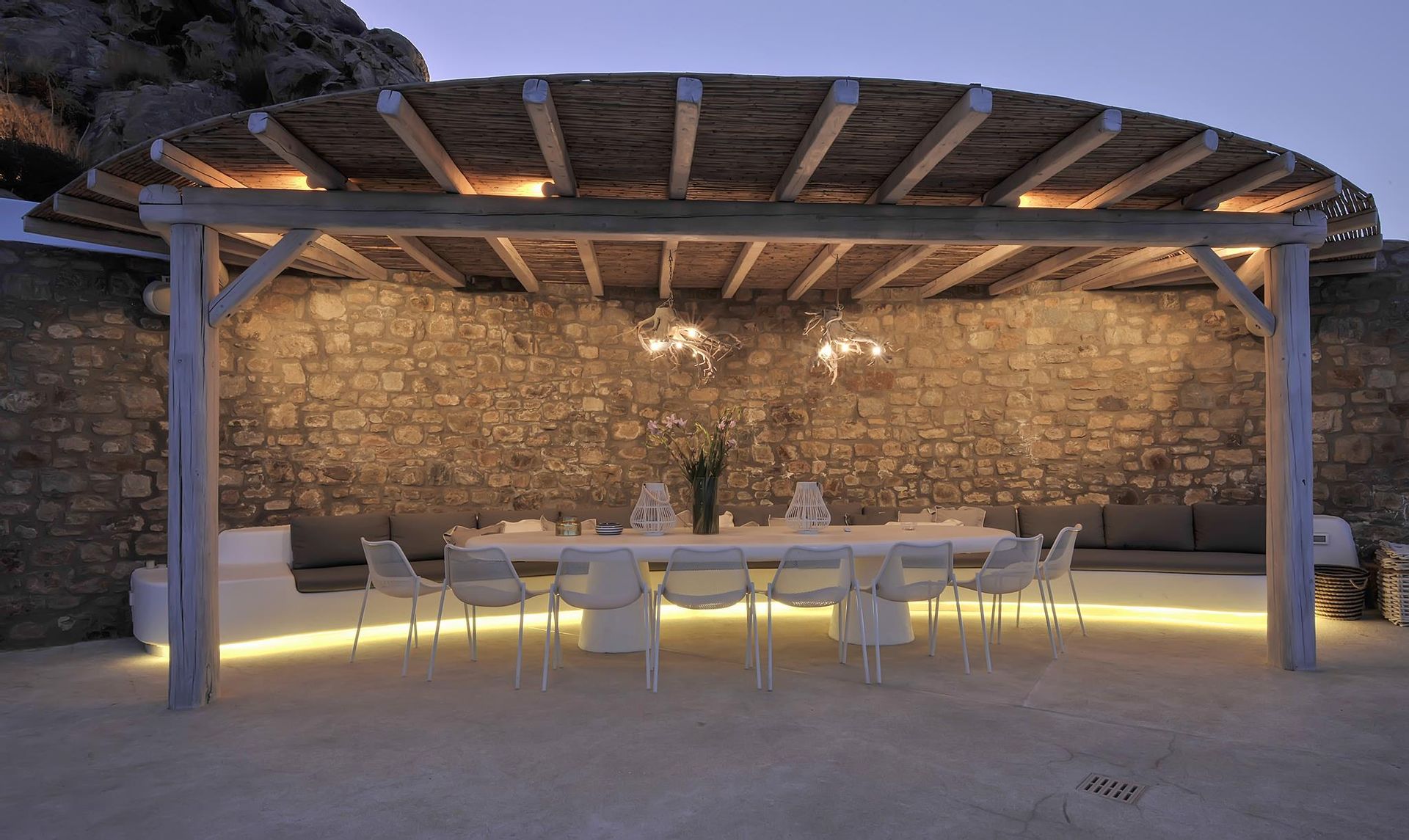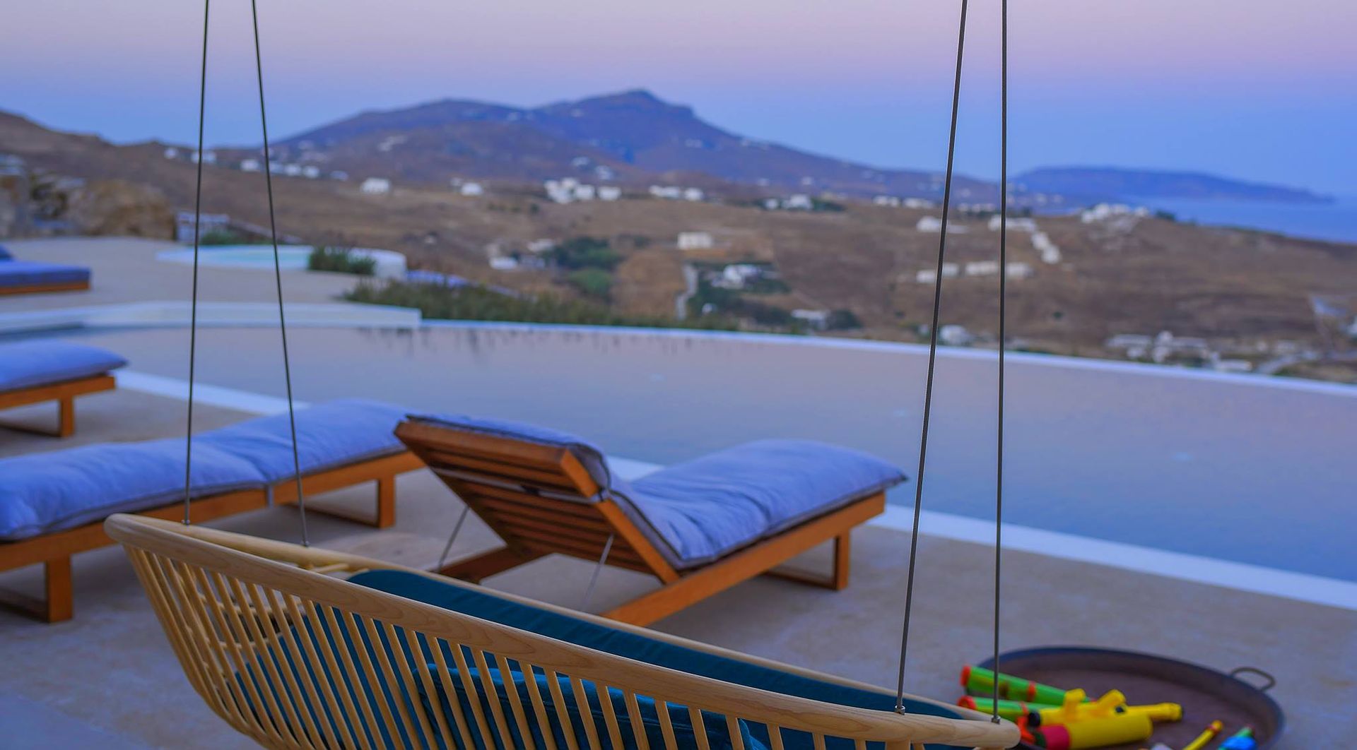The exterior is where the fun truly begins. At your disposal you will have the perfect space for entertaining, relaxing and just enjoying your stay. Whether you’re sitting in the hot-tub listening to the waves rolling in below, or having a full-on barbeque for 25 people, you will do it with an beautiful backdrop of the aegean sea and all of it’s colours. There are more than 6 different chill-out areas, ensuring you will never get bored of being in the same spot.