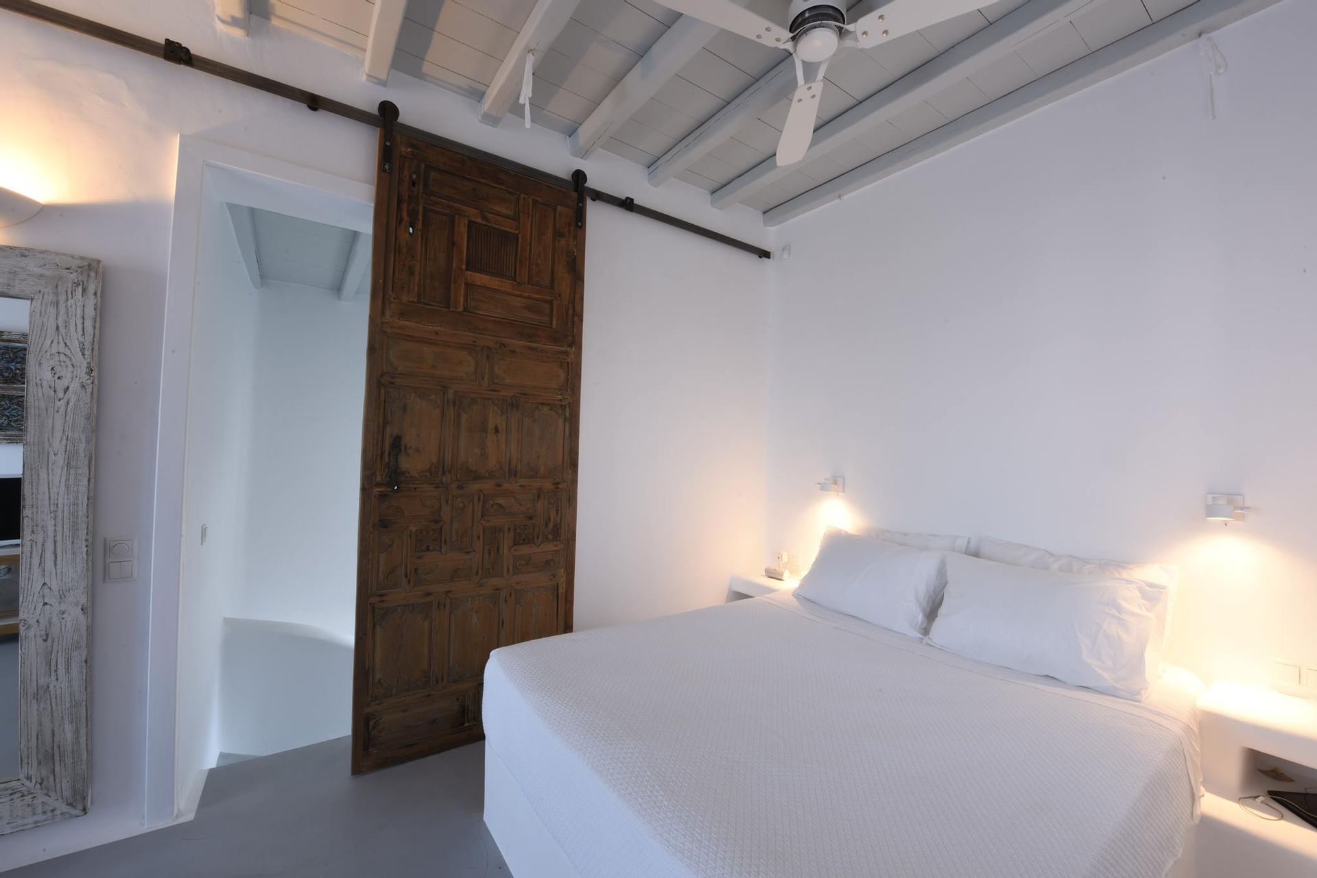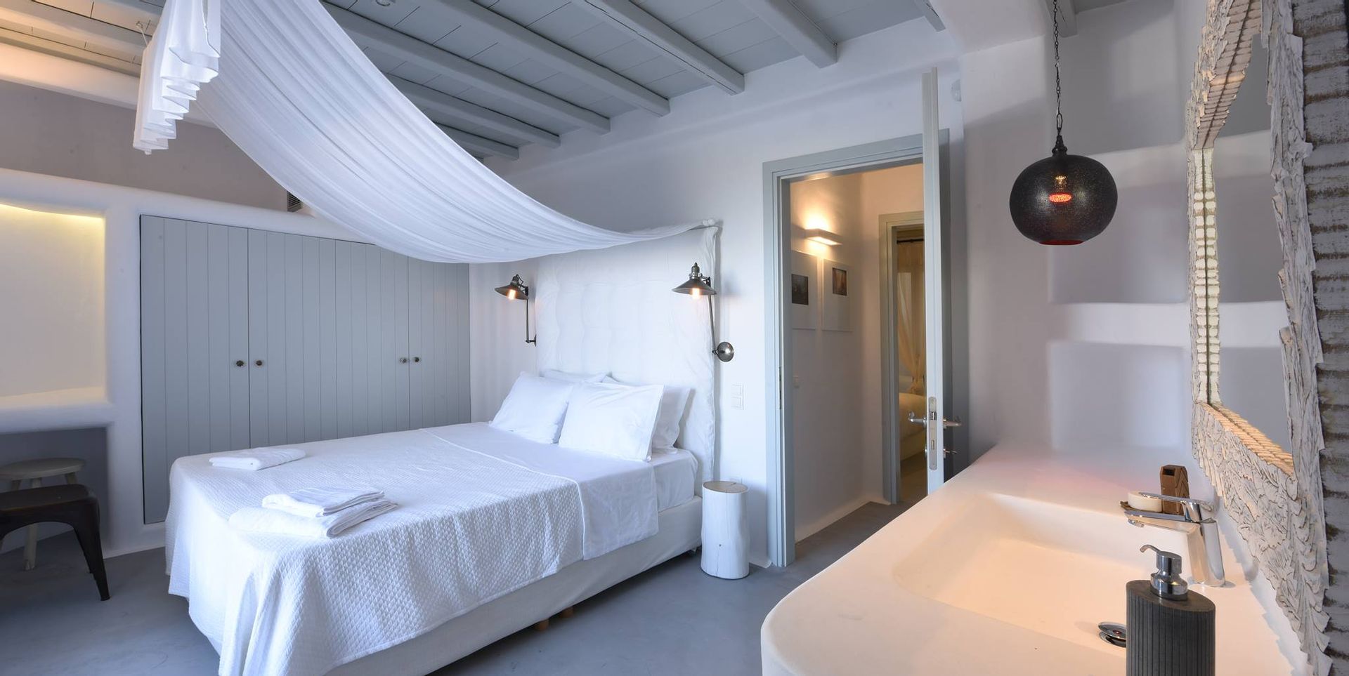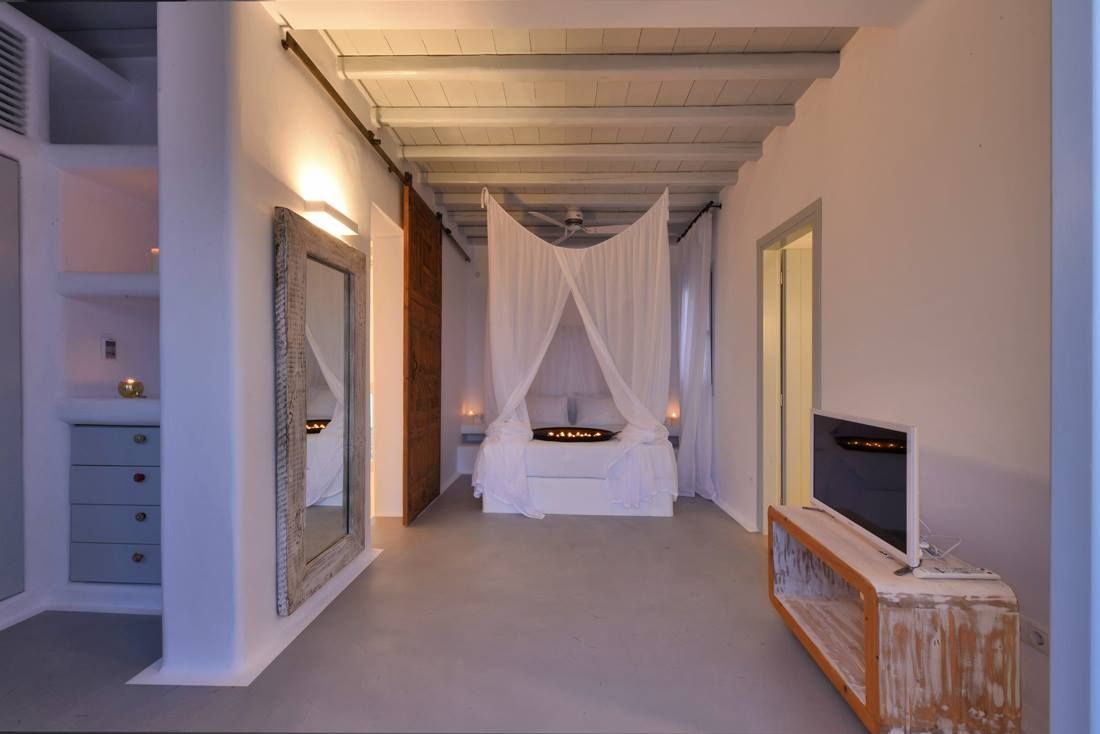 Comfort, style and special emphasis was placed on maintaining the classic myconian look, with its simplistically elegant aesthetic, while at the same time ensuring that all modern comforts were discreetly incorporated as well. Each bedroom has its own unique character, as well as its own en-suite shower room. In true Myconian fashion, a lot of the fixtures and fittings are built-in, exactly the way authentic houses from yesteryear were made for the locals.